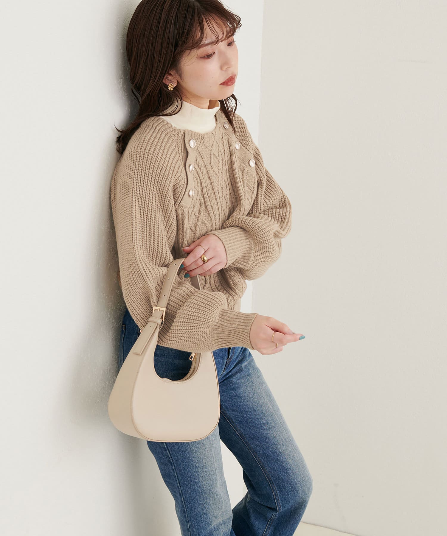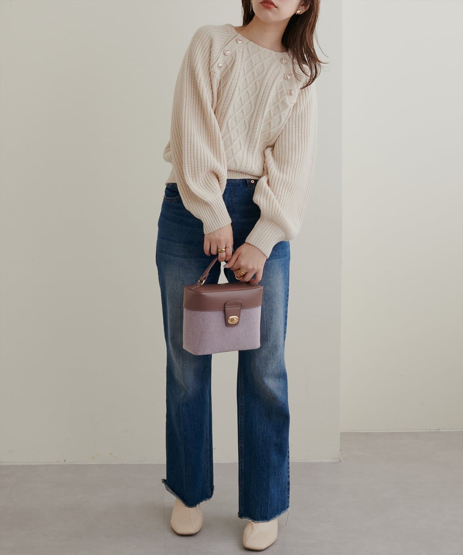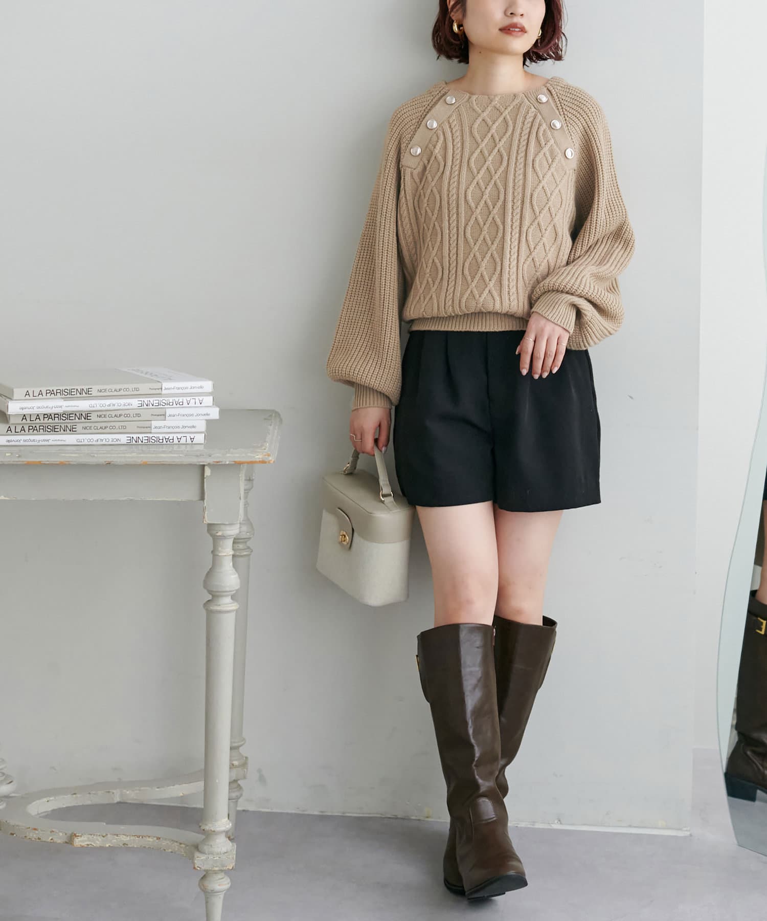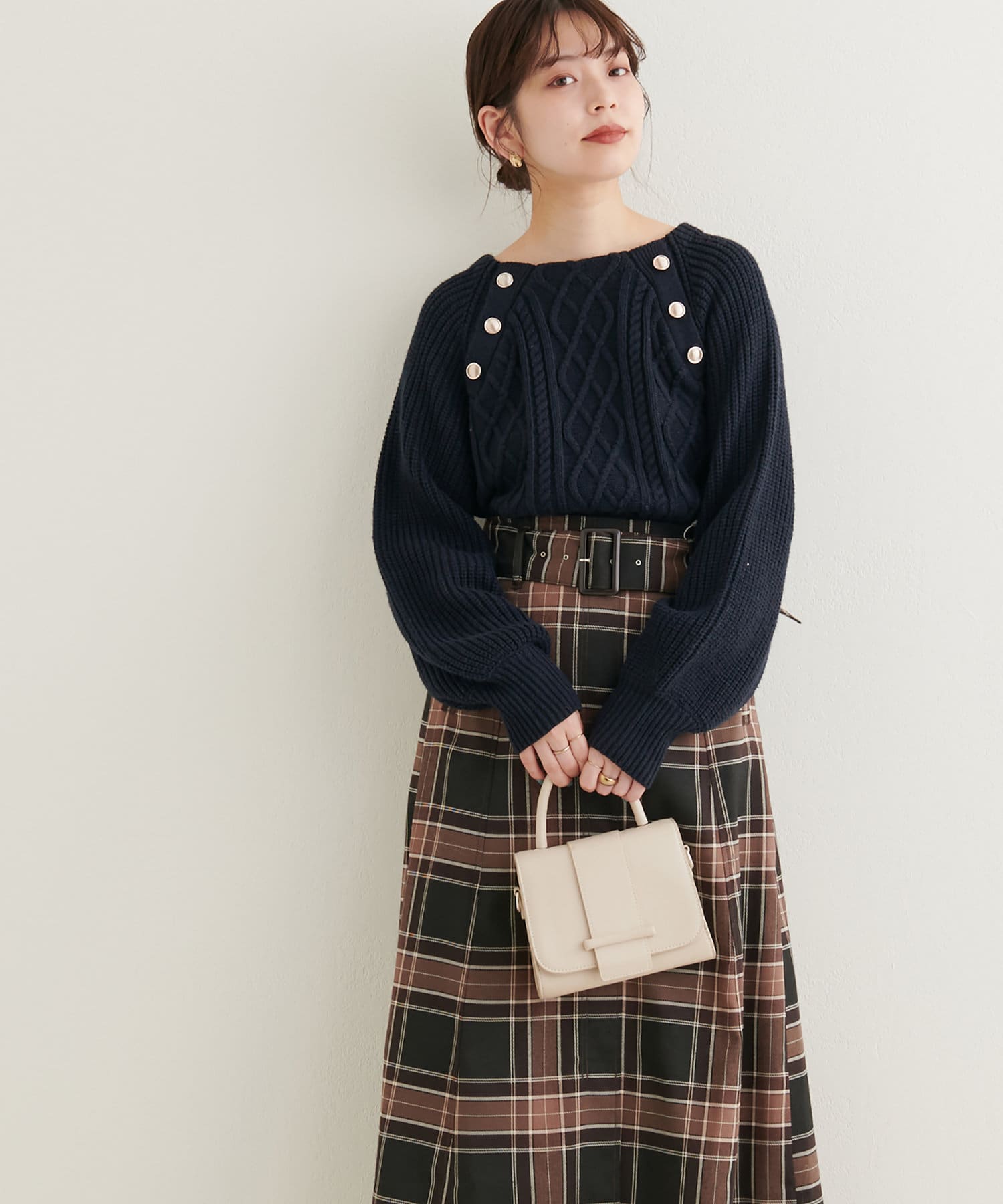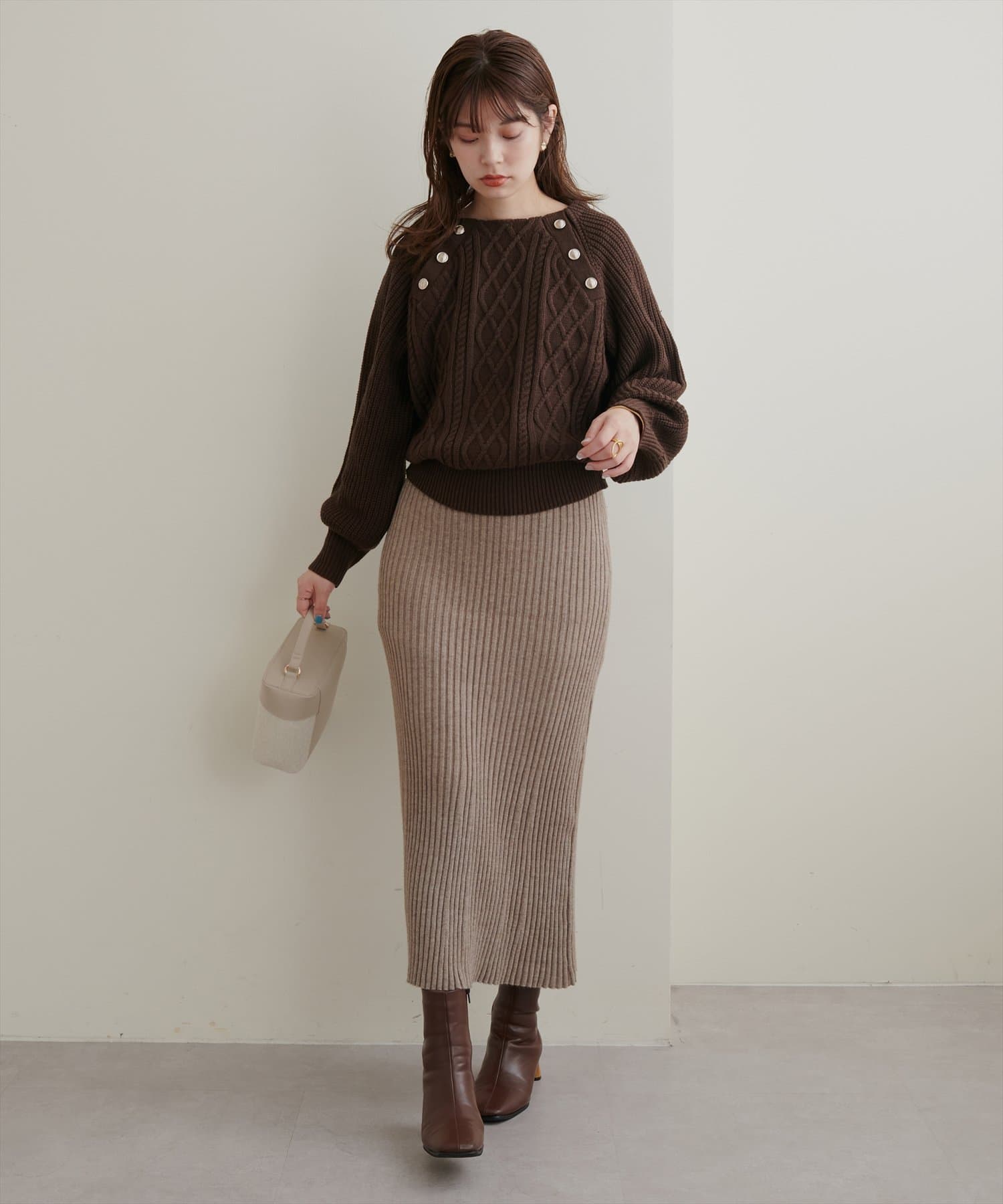 WEB限定/2022AWアイテム/釦デザインケーブルニット
