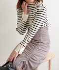 ハイネック過ぎずやや緩めのネックデザインは、ハイネックが苦手な方でも挑戦しやすくなっております。