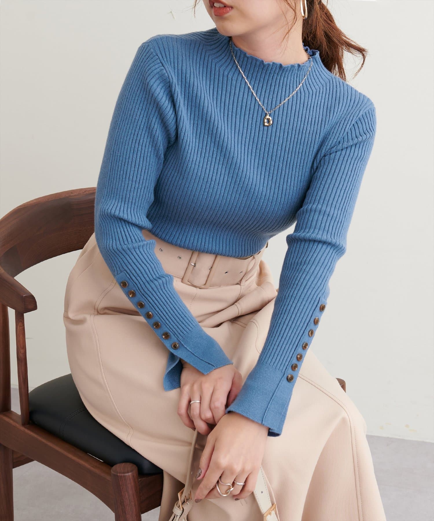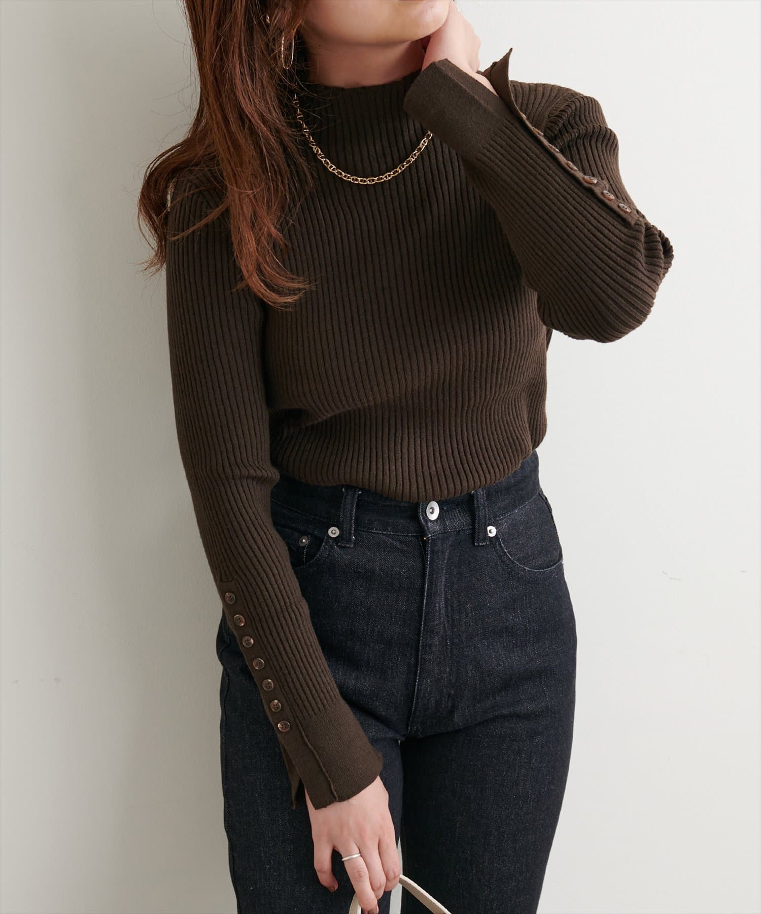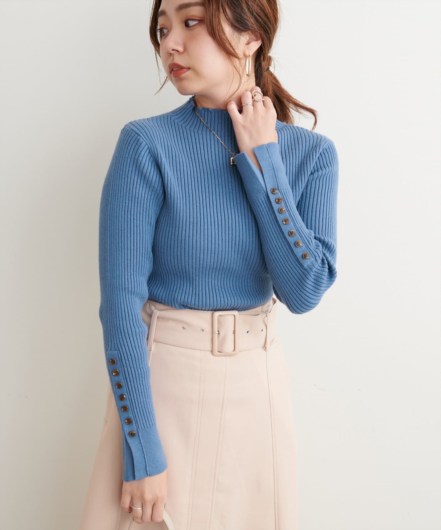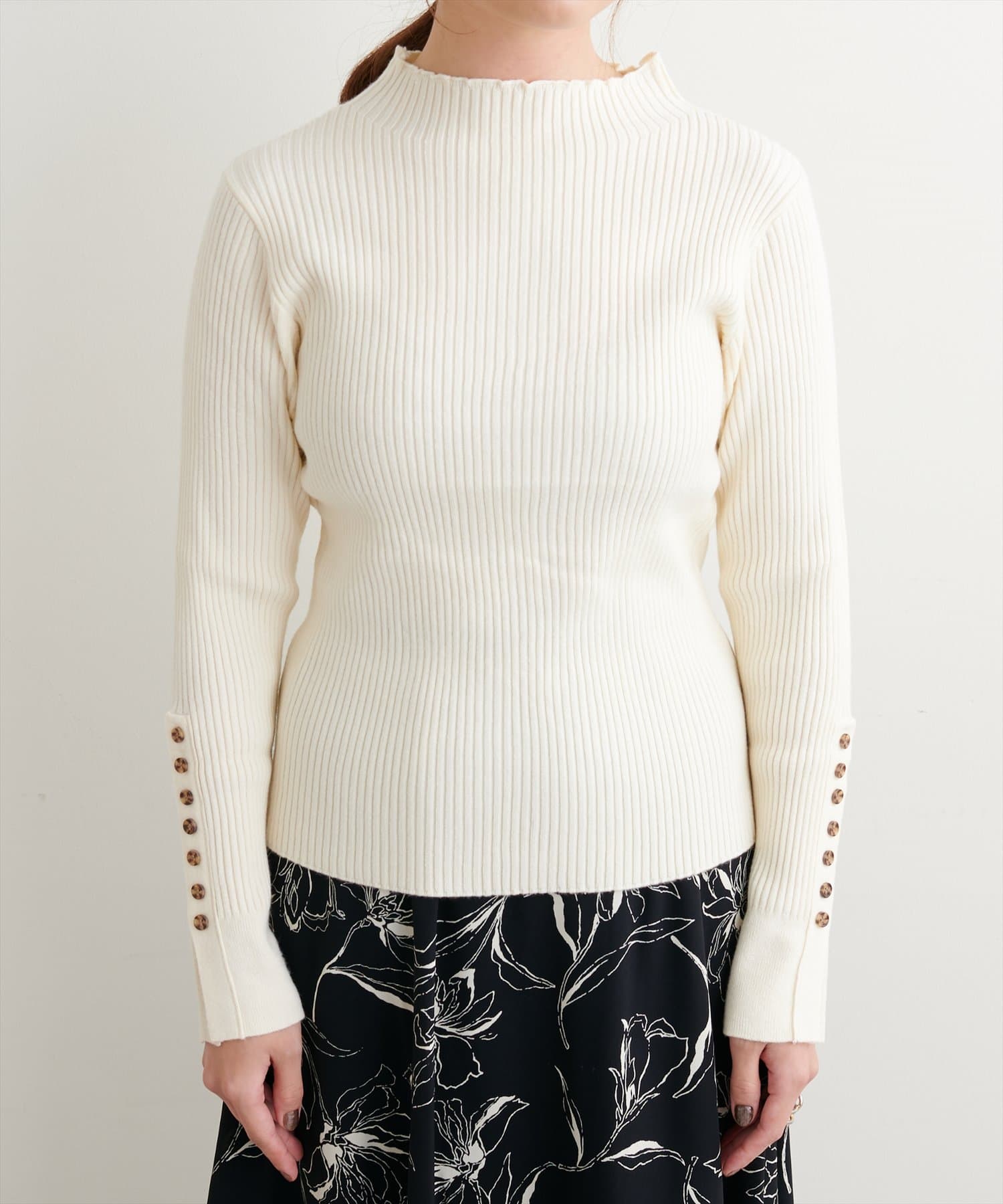 袖口ちび釦プチハイリブニット