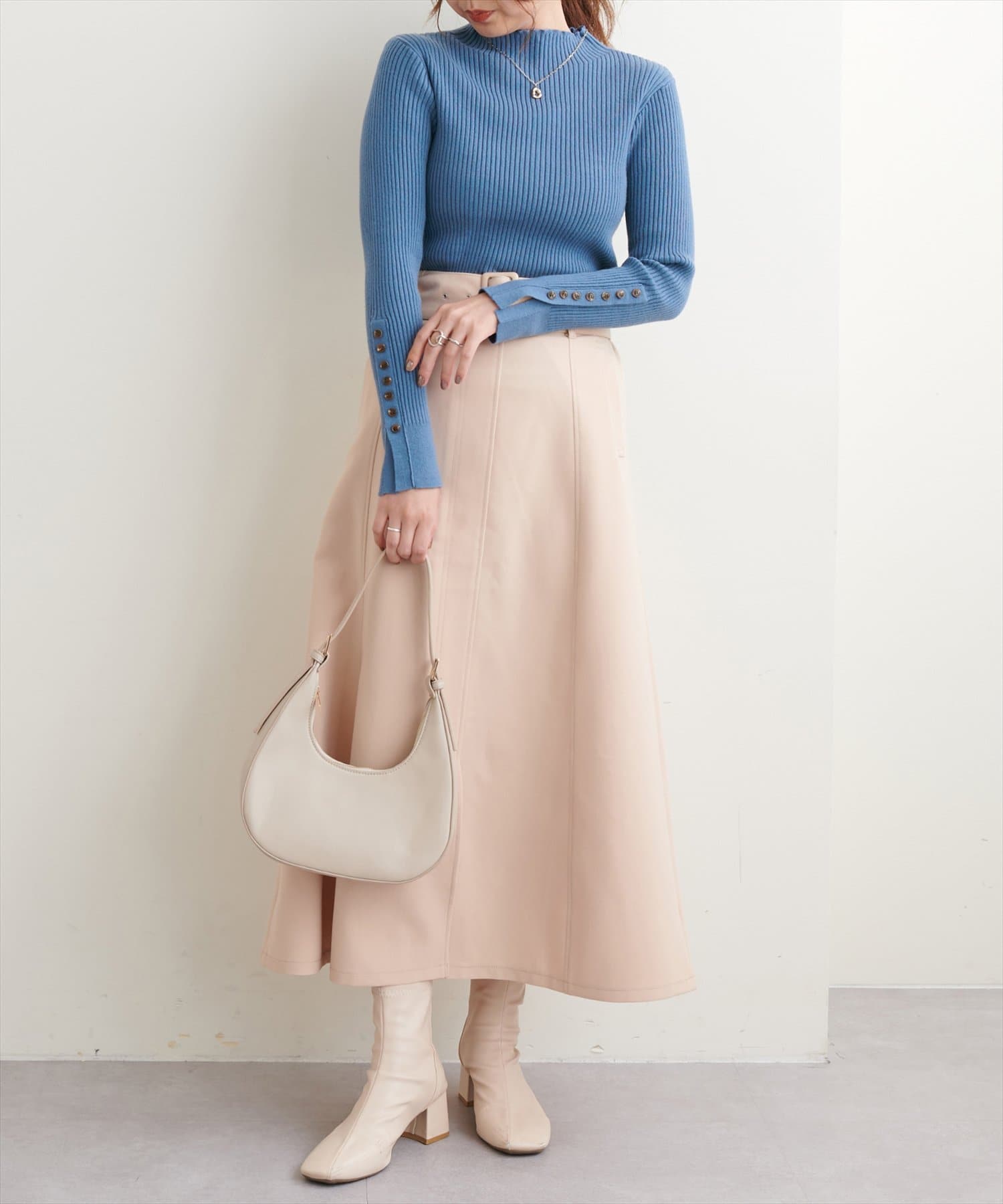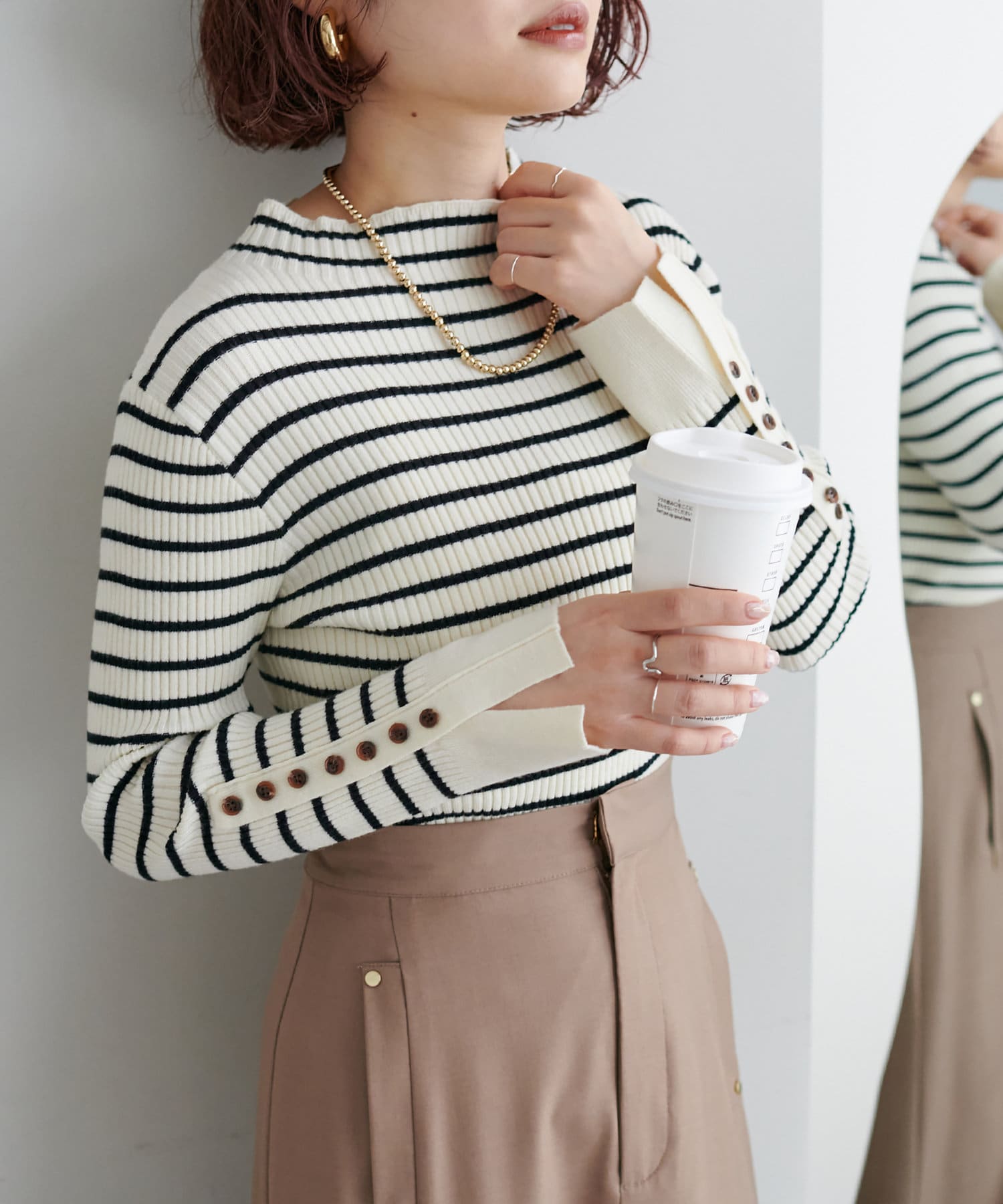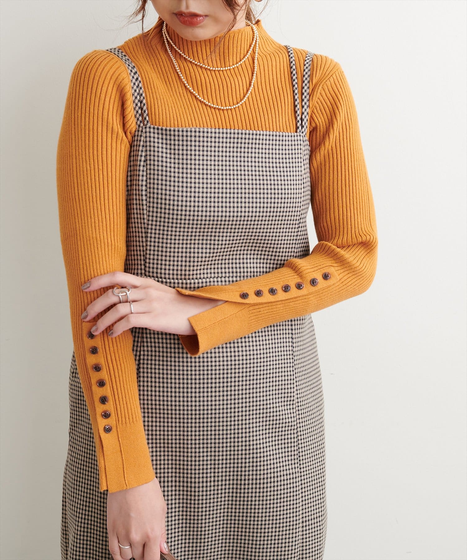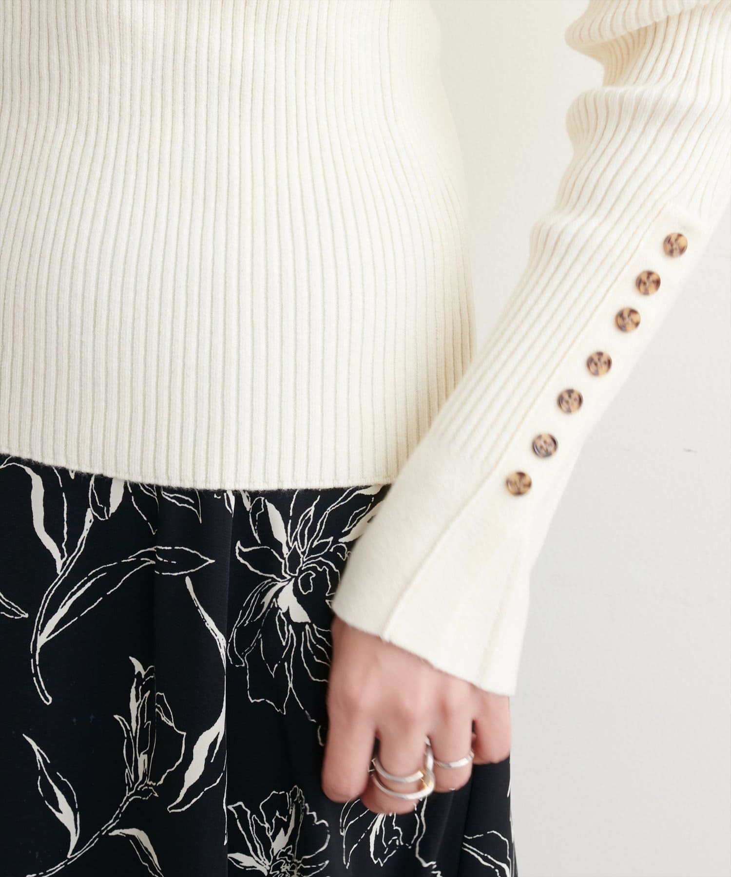 袖口ちび釦プチハイリブニット