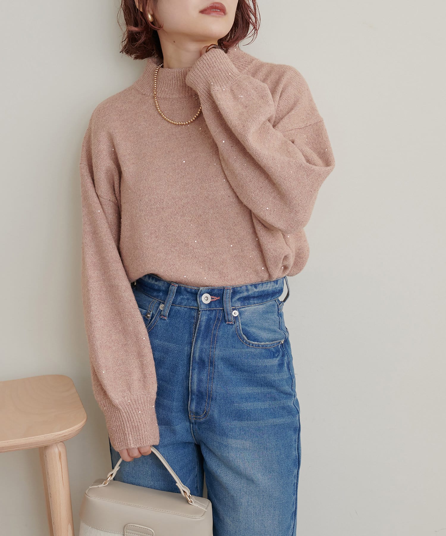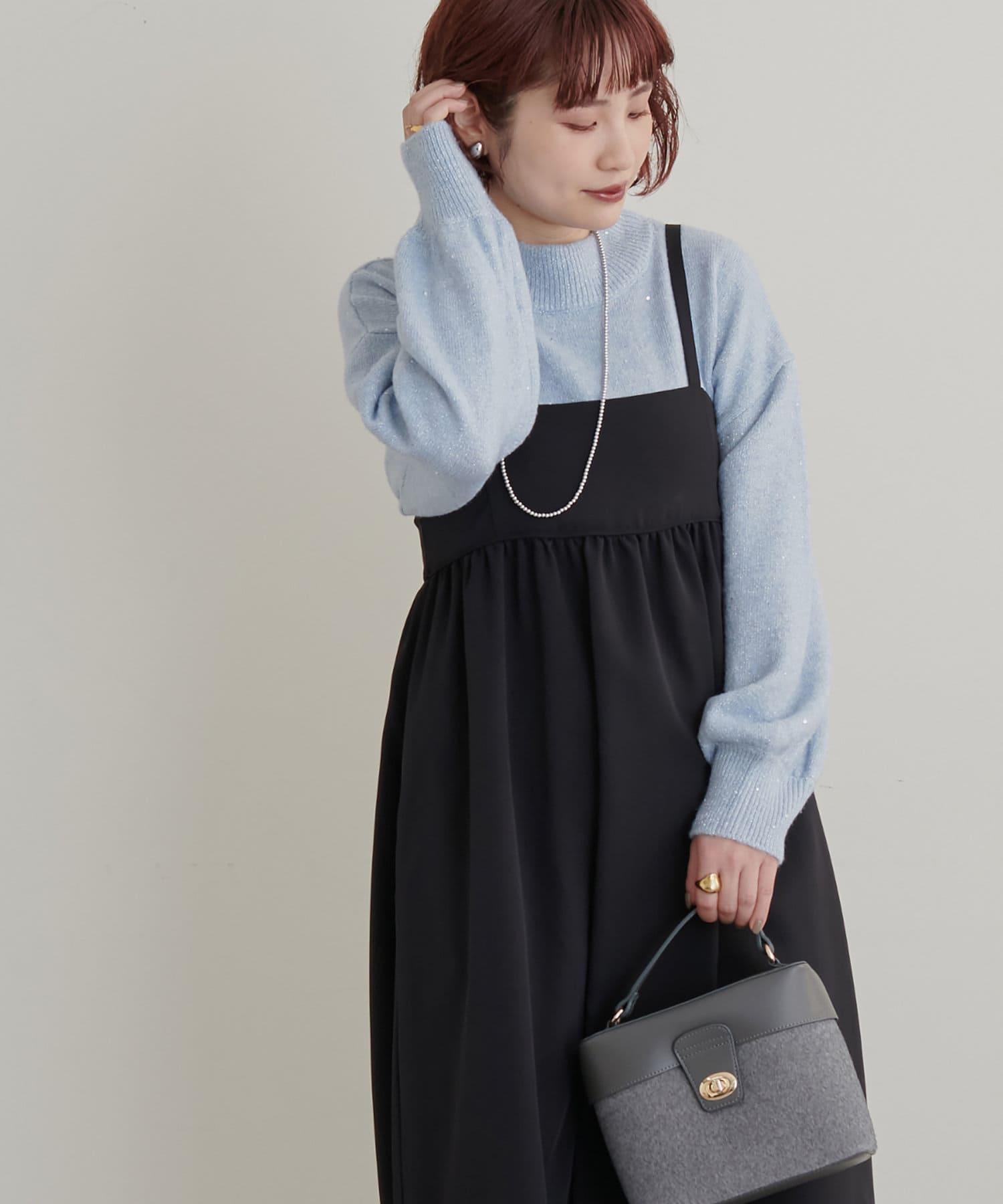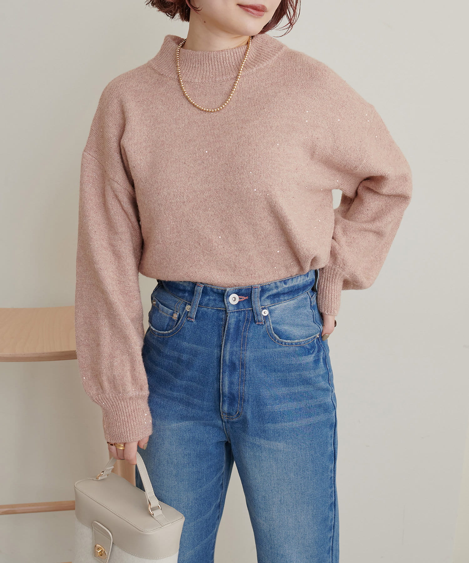 ニットですがボトムにインしてもかさばりづらい薄めの厚さなので、着太りして見えないのも嬉しいポイント。