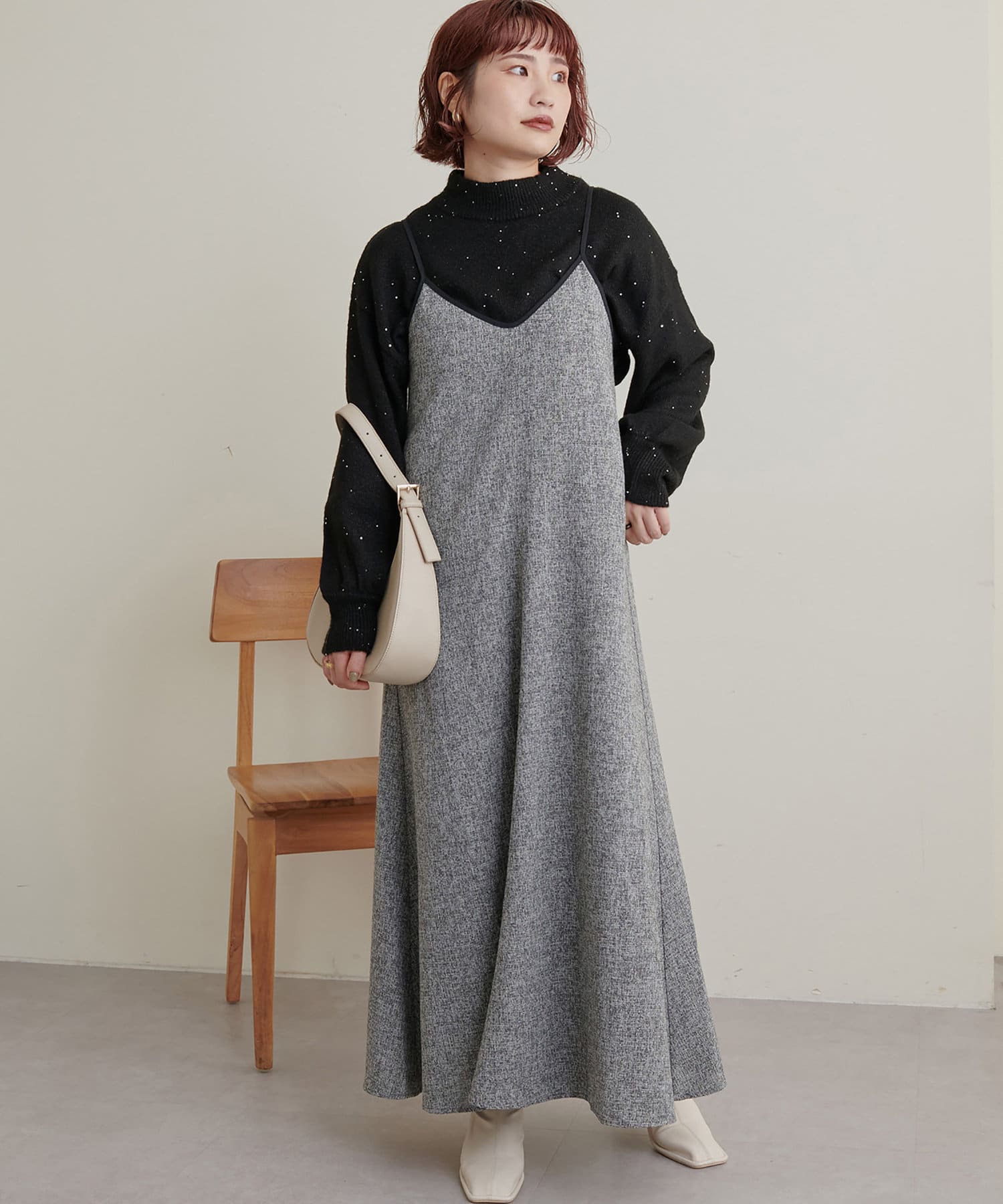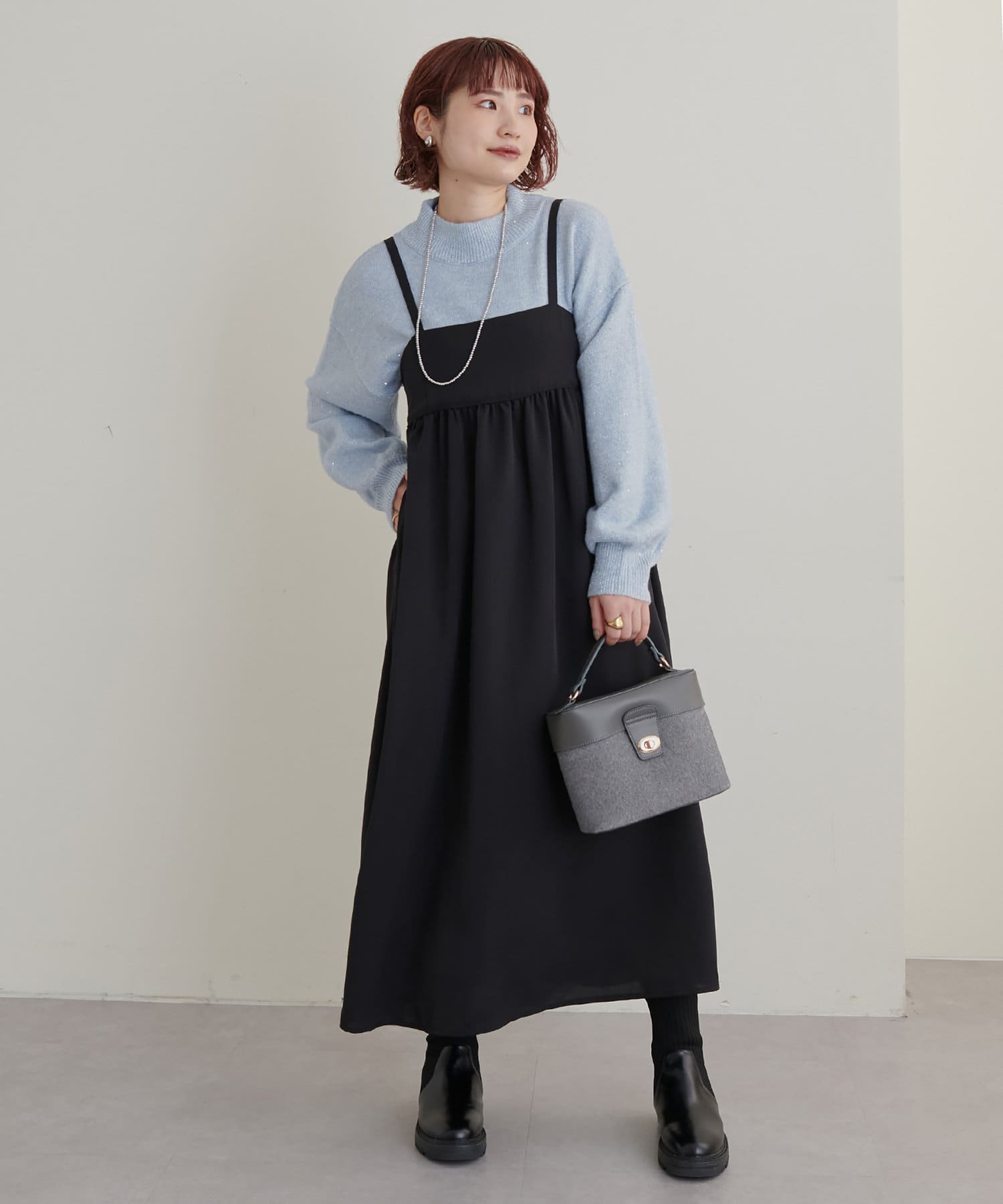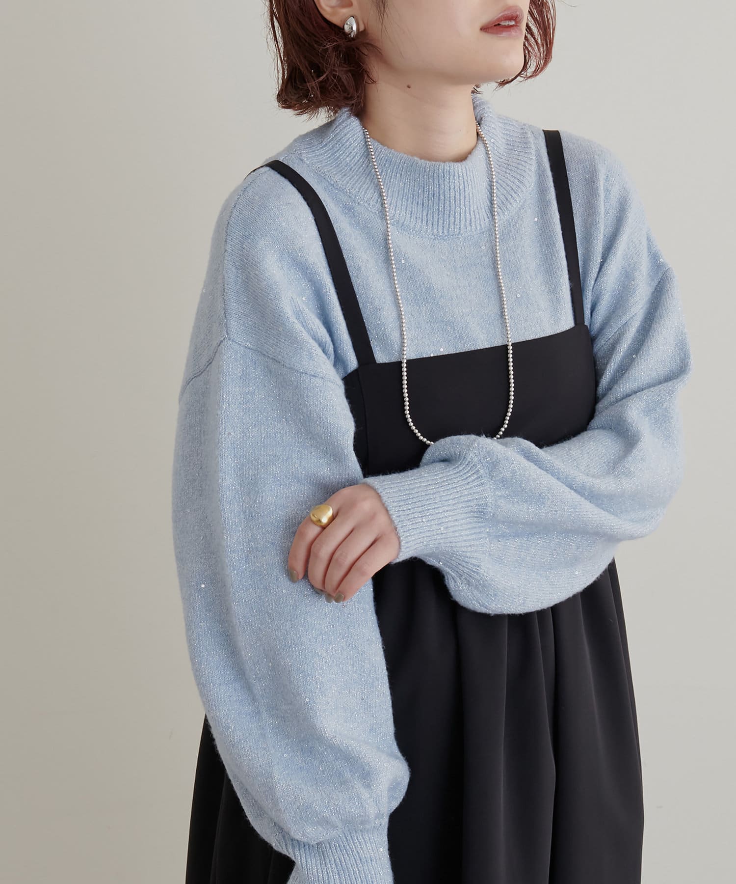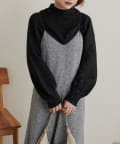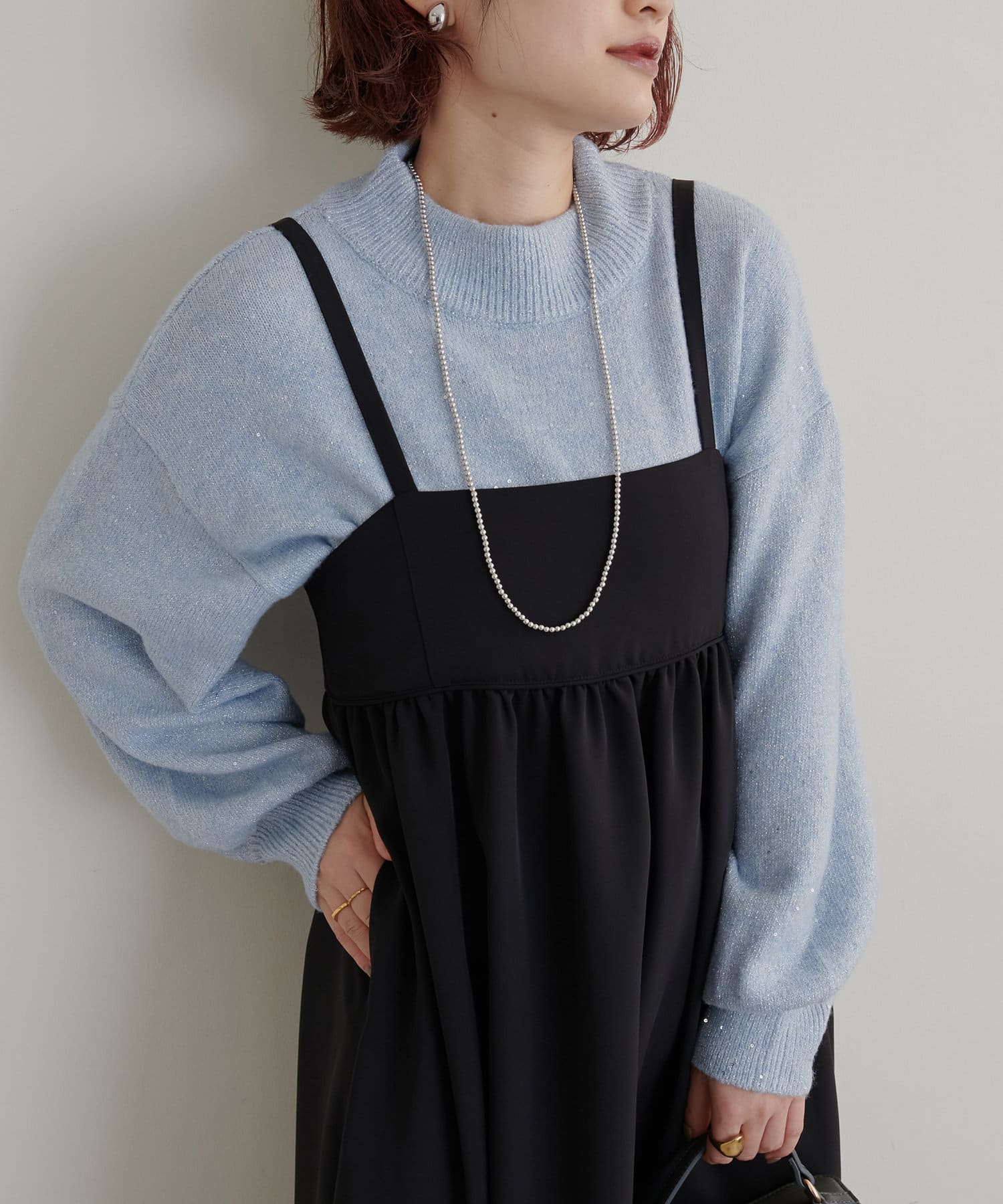 ニットですがボトムにインしてもかさばりづらい薄めの厚さなので、着太りして見えないのも嬉しいポイント。