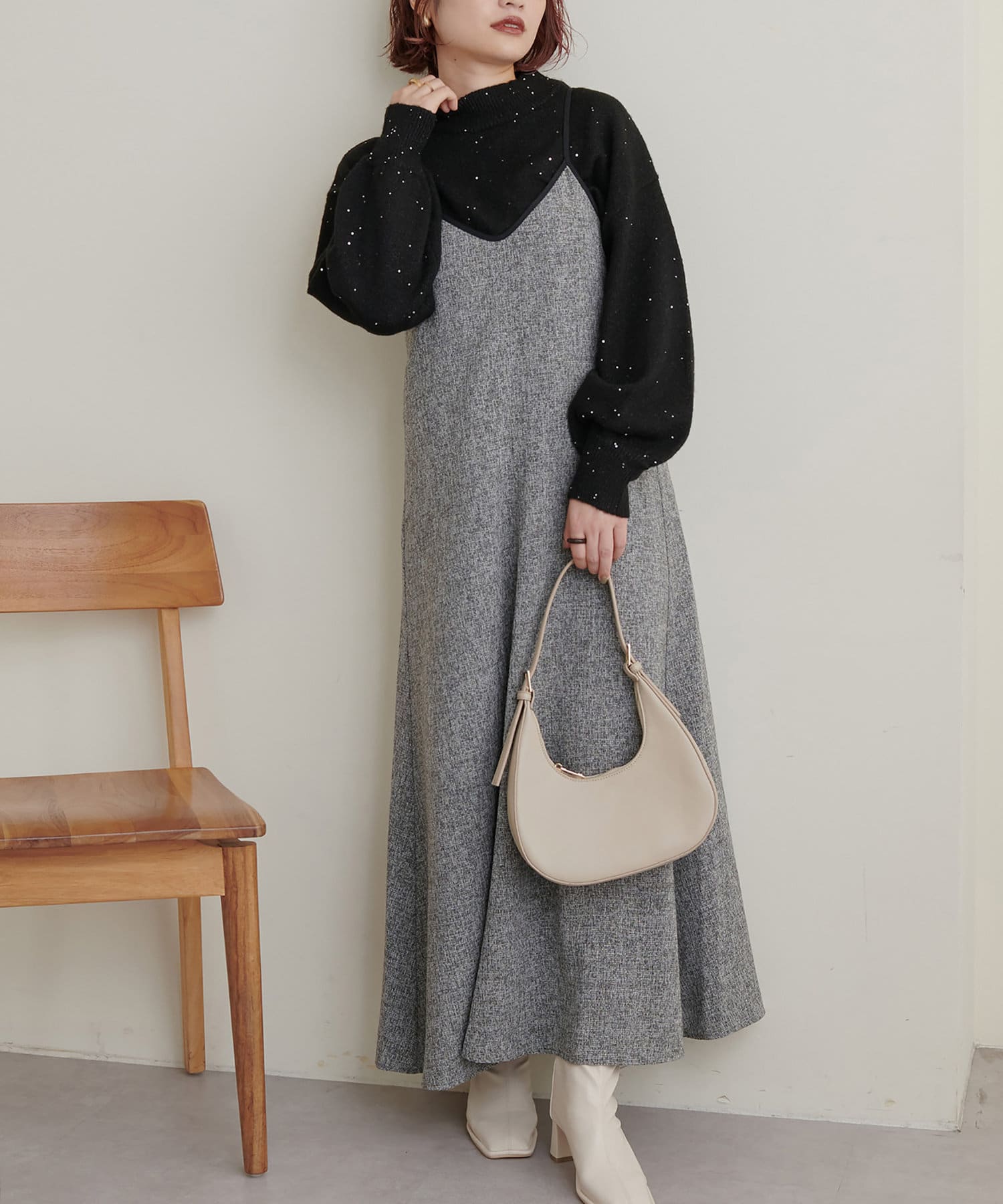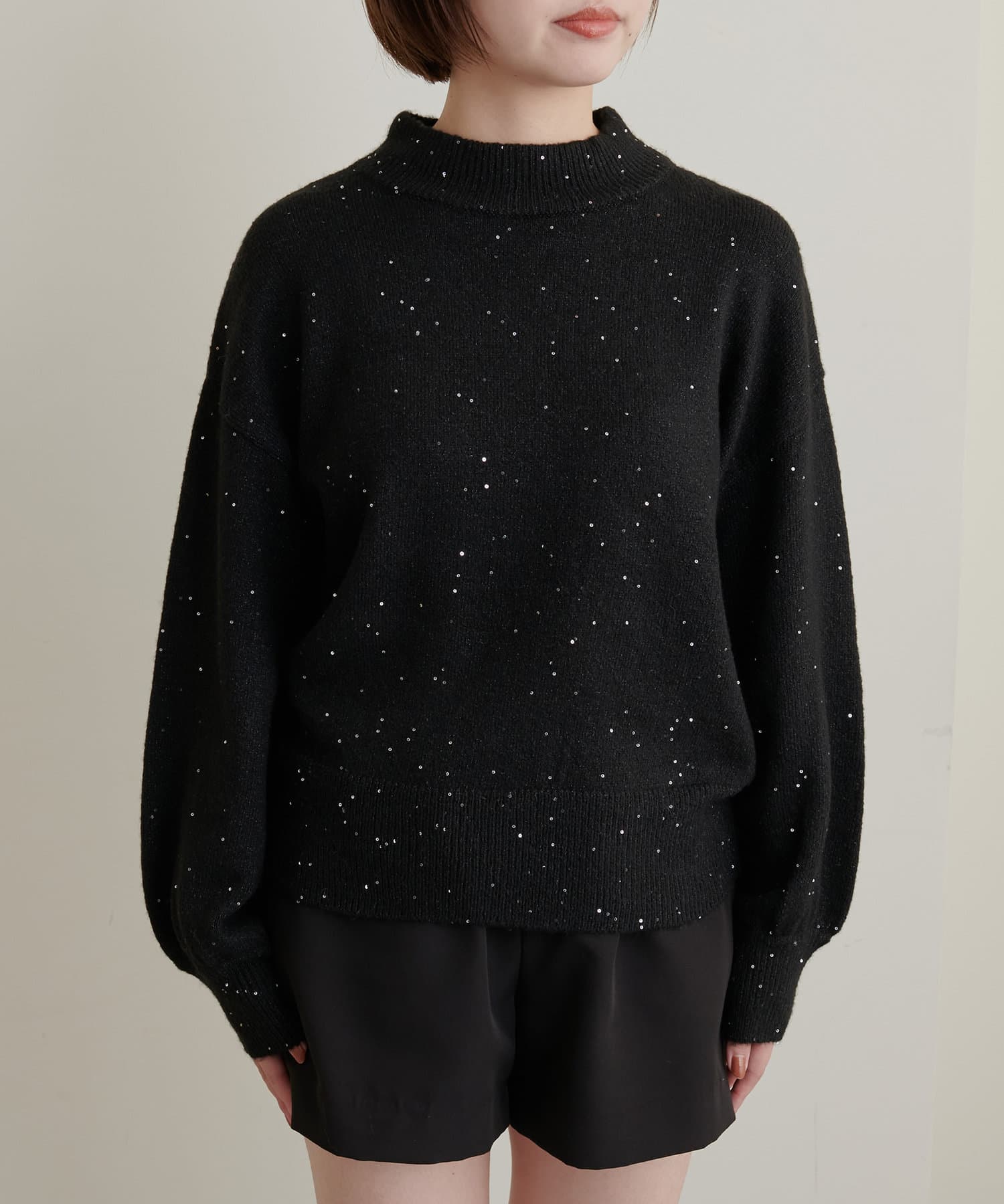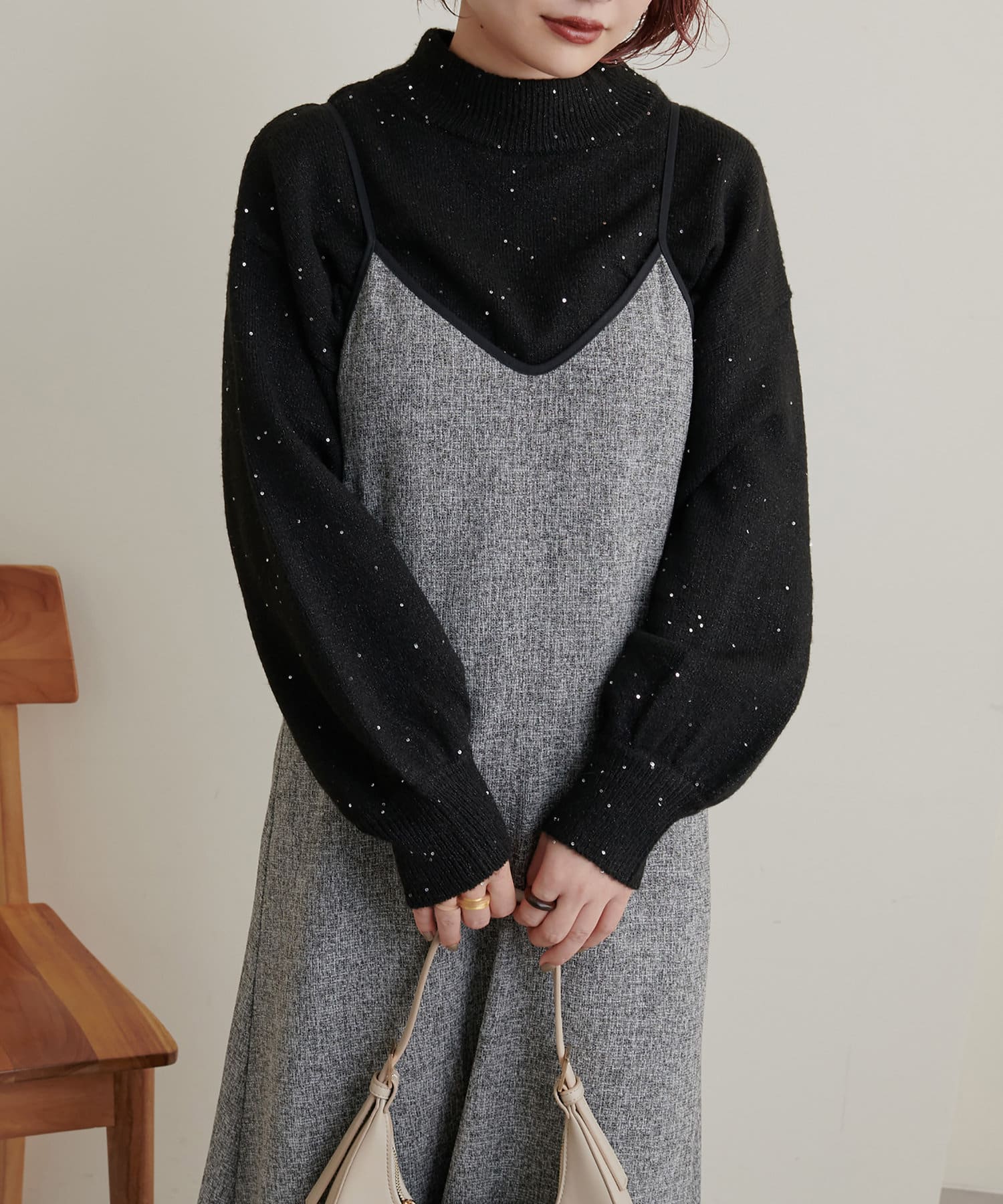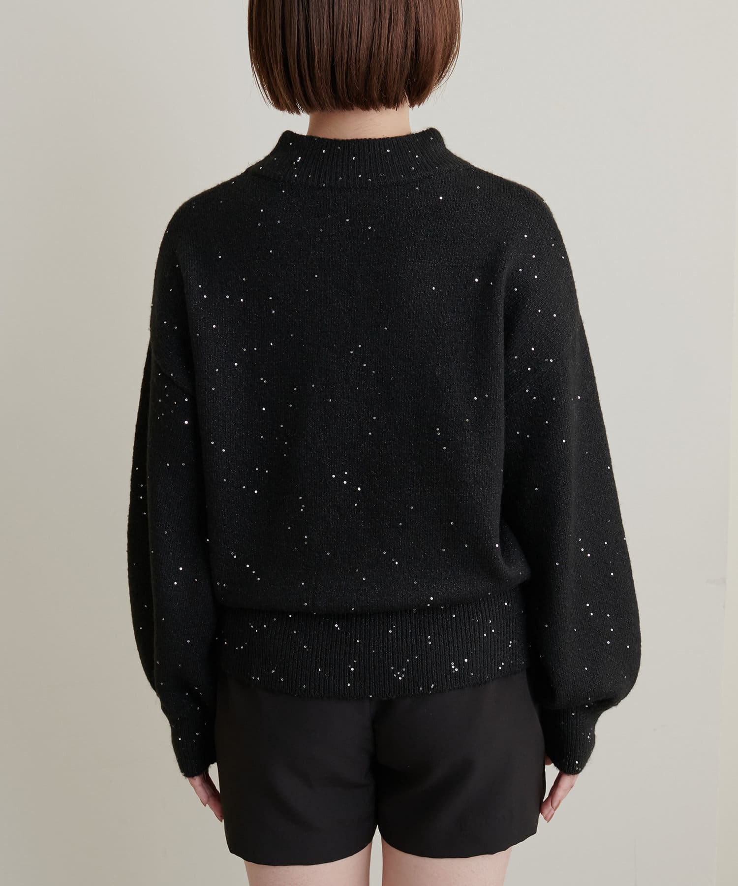 生地全体に細かなスパンコールがあしらわれた贅沢な素材を採用。