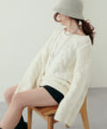 古着屋にありそうなザックリ感が愛らしいケーブルニット。