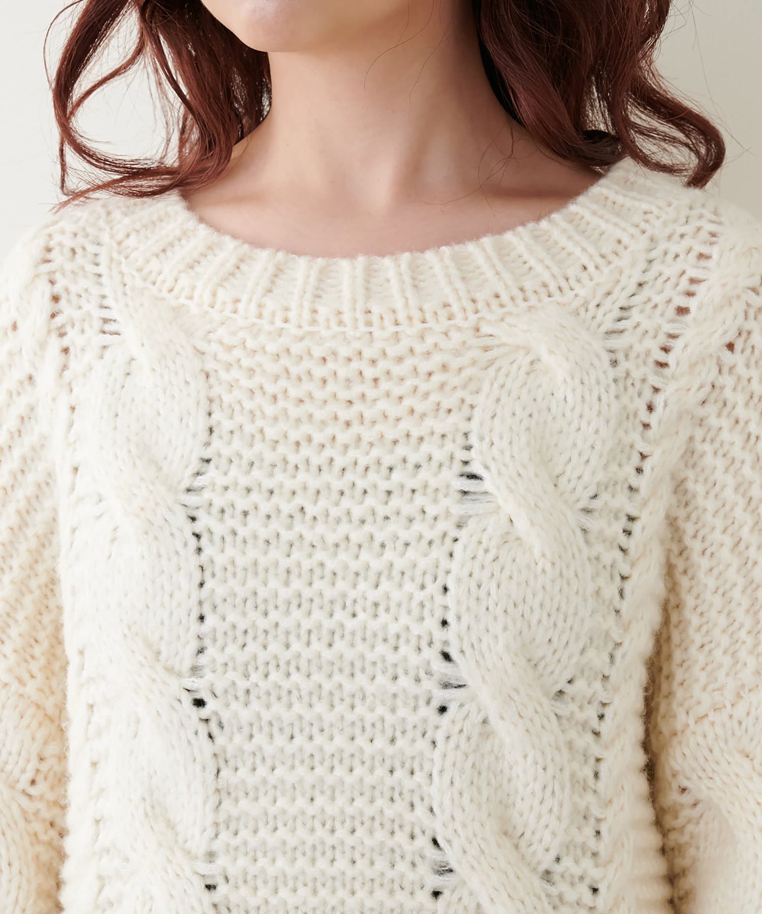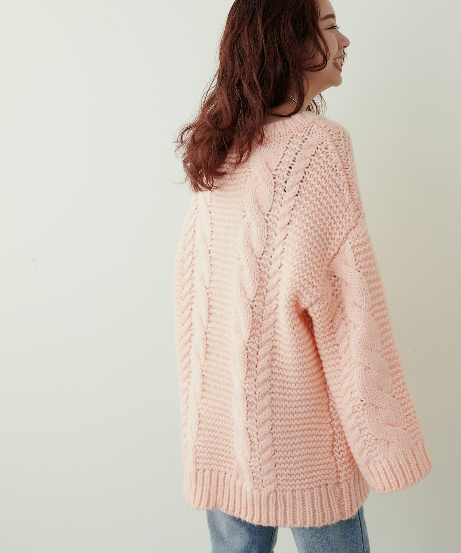 古着屋にありそうなザックリ感が愛らしいケーブルニット。