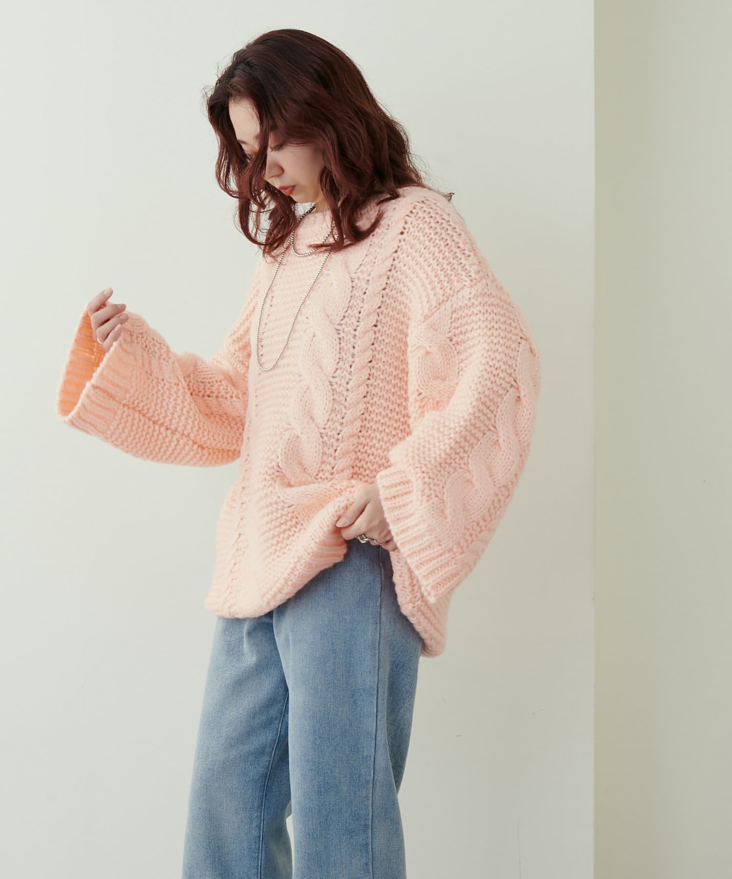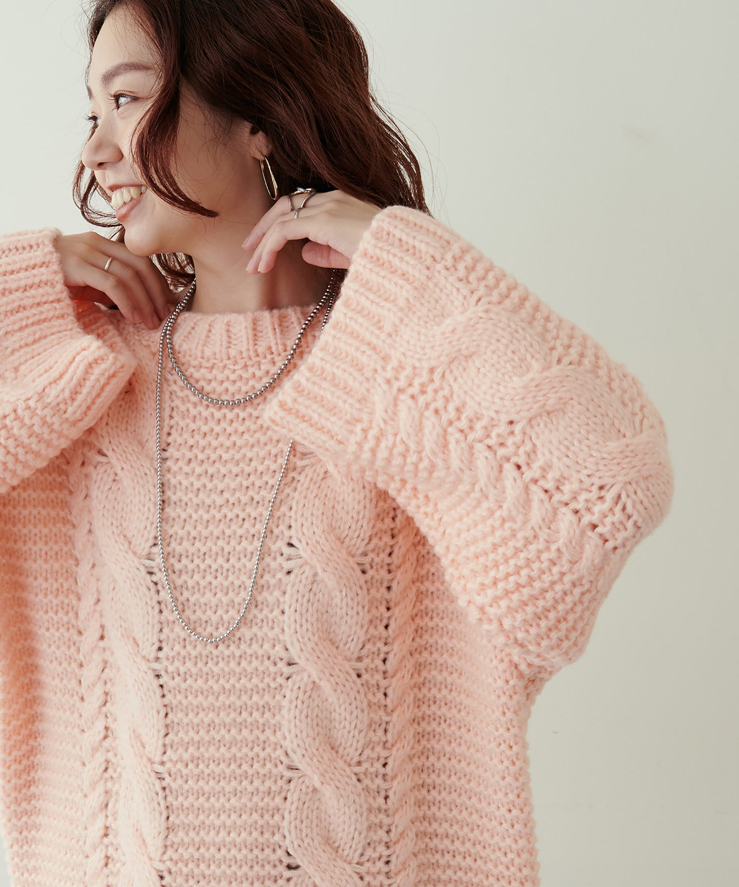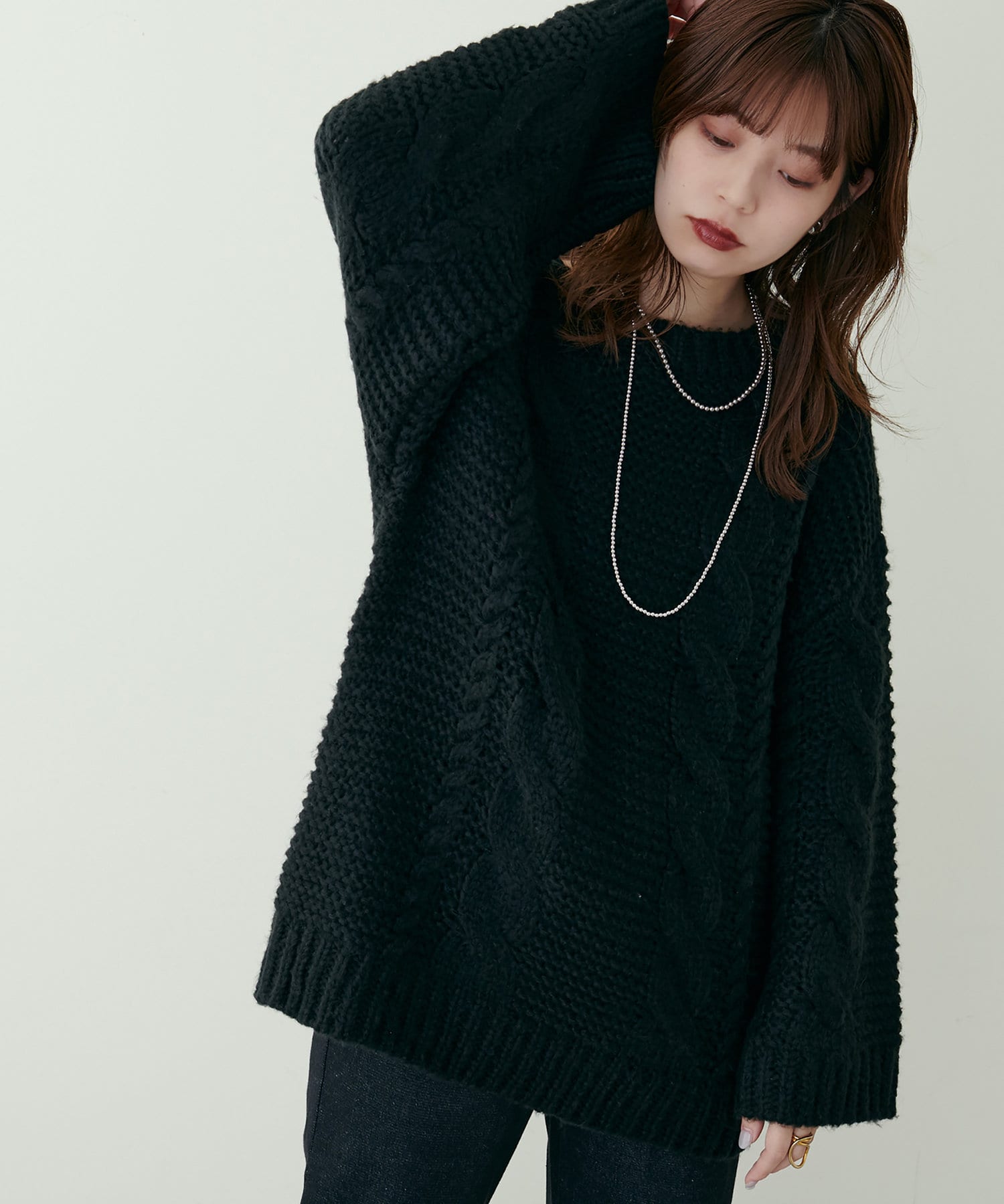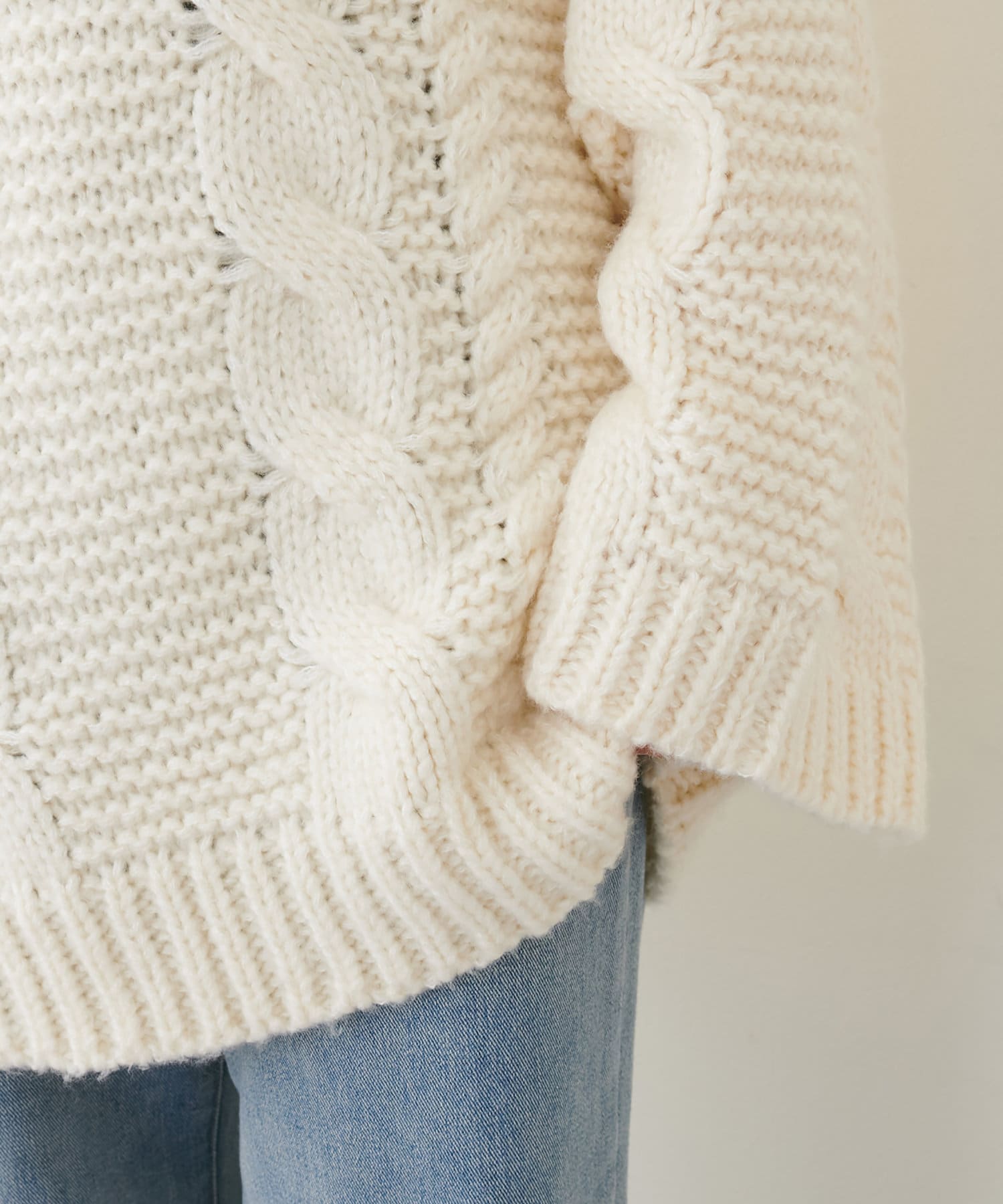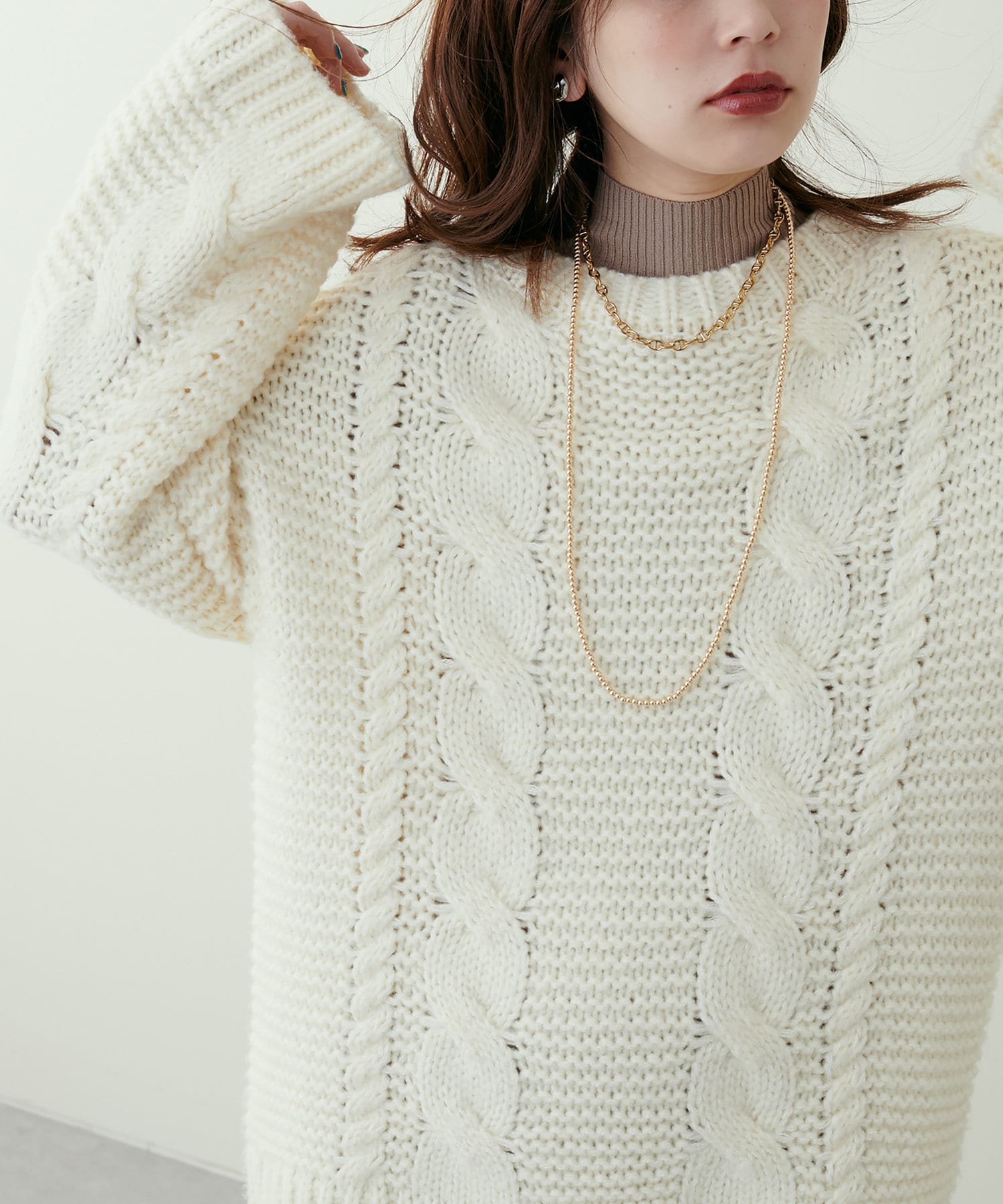 立体感のあるケーブル編みが高見えする1枚です。