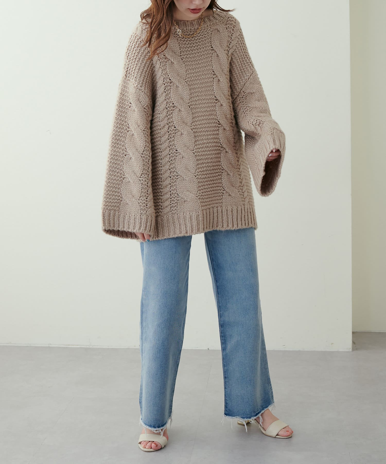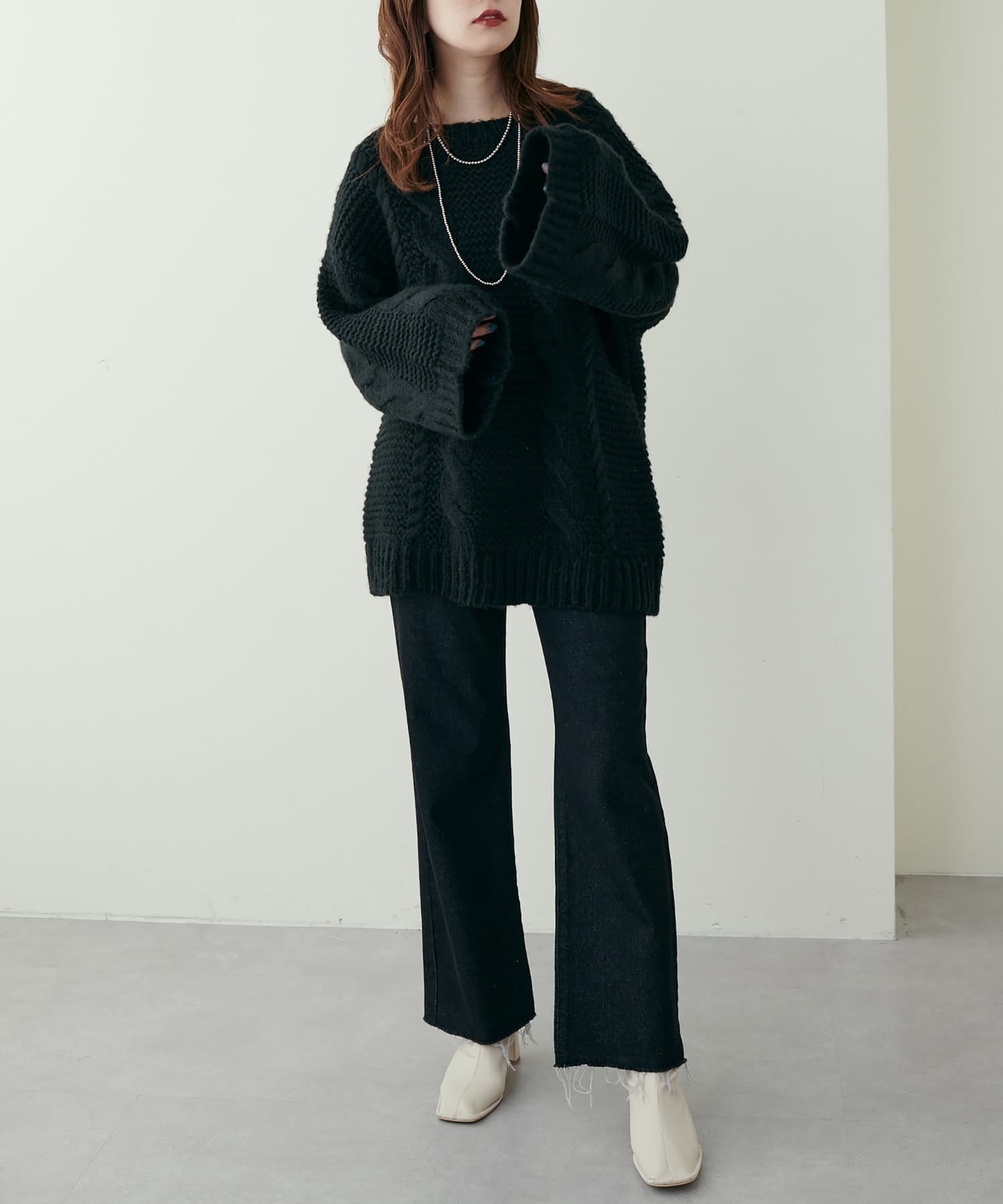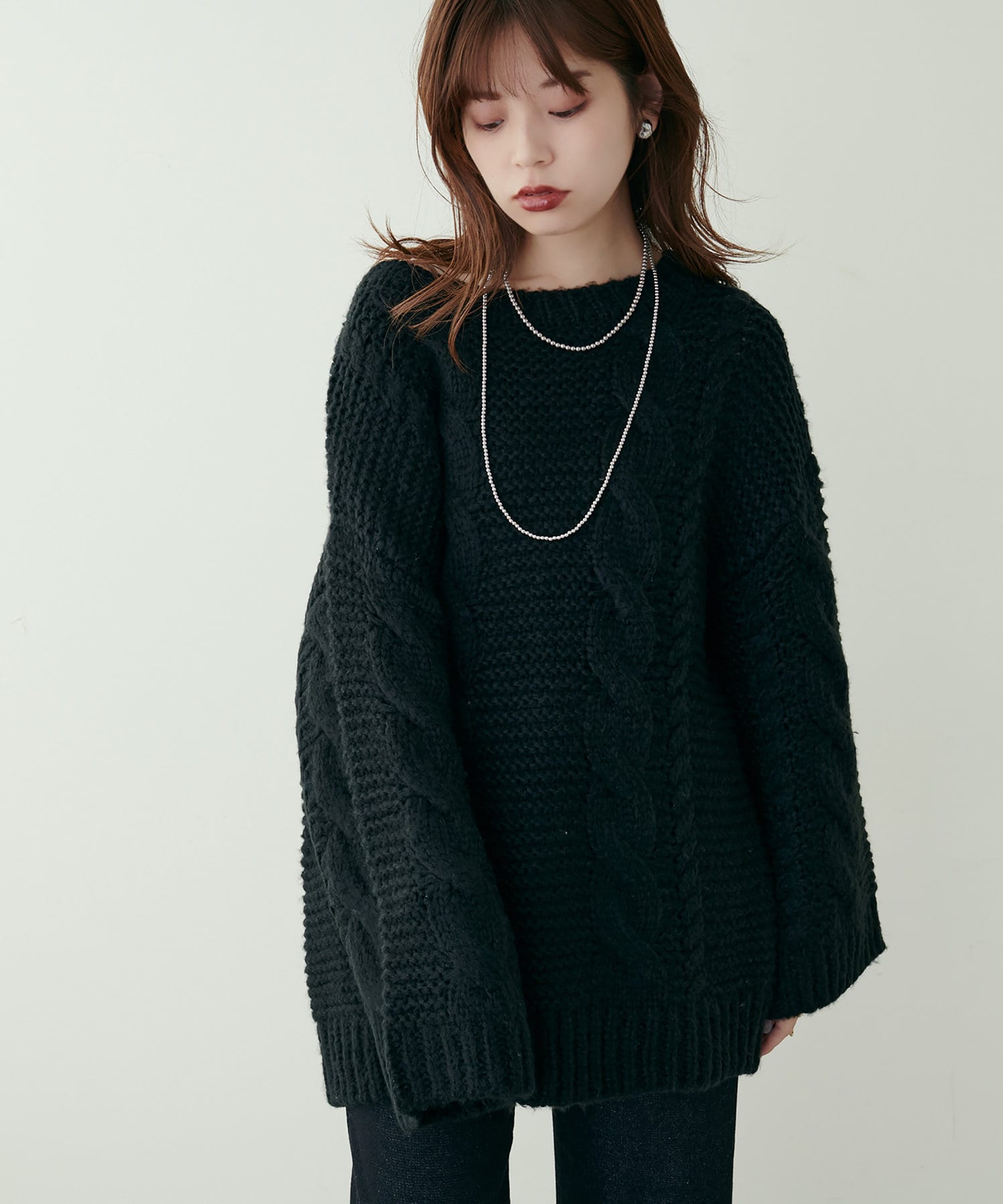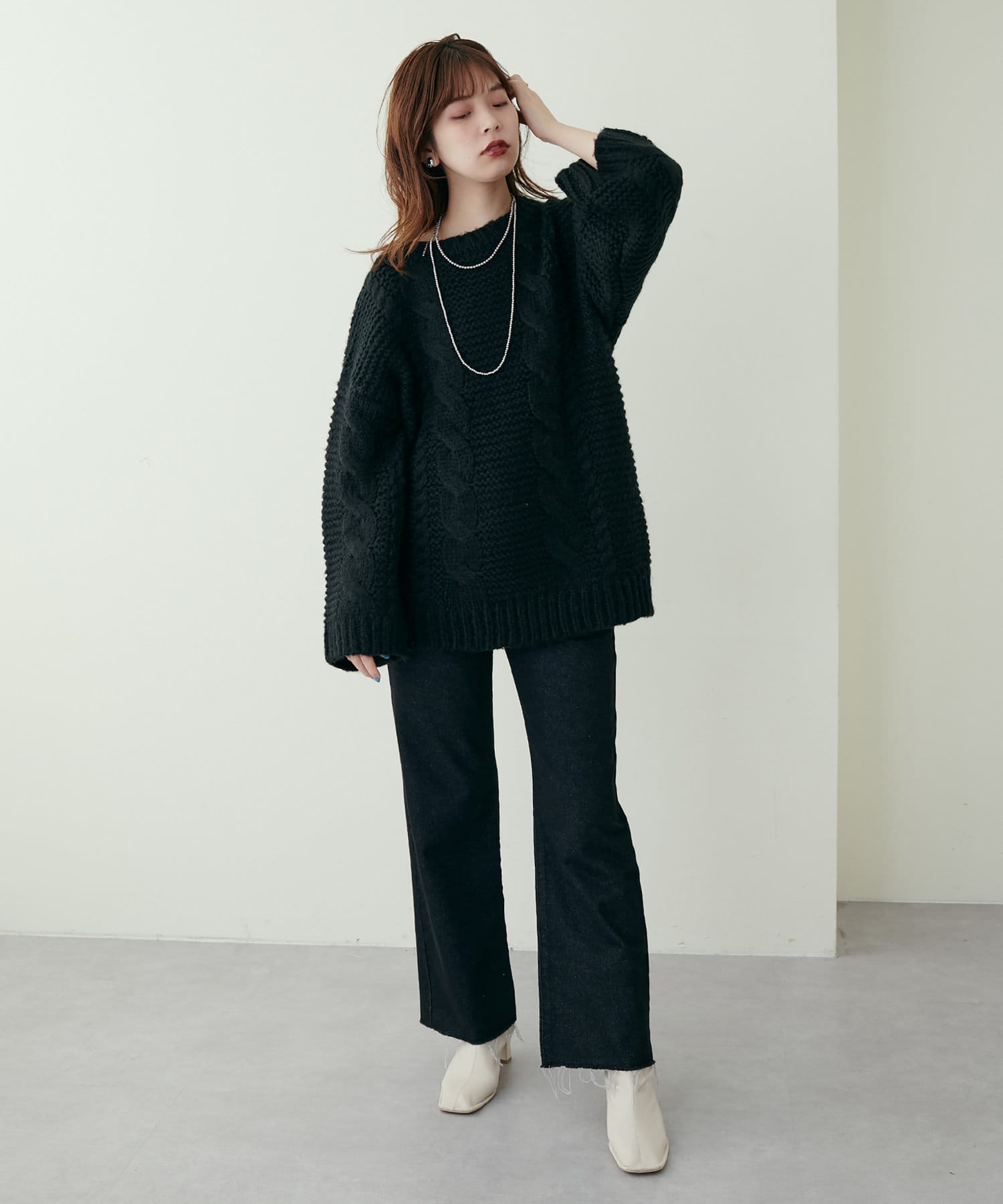 立体感のあるケーブル編みが高見えする1枚です。