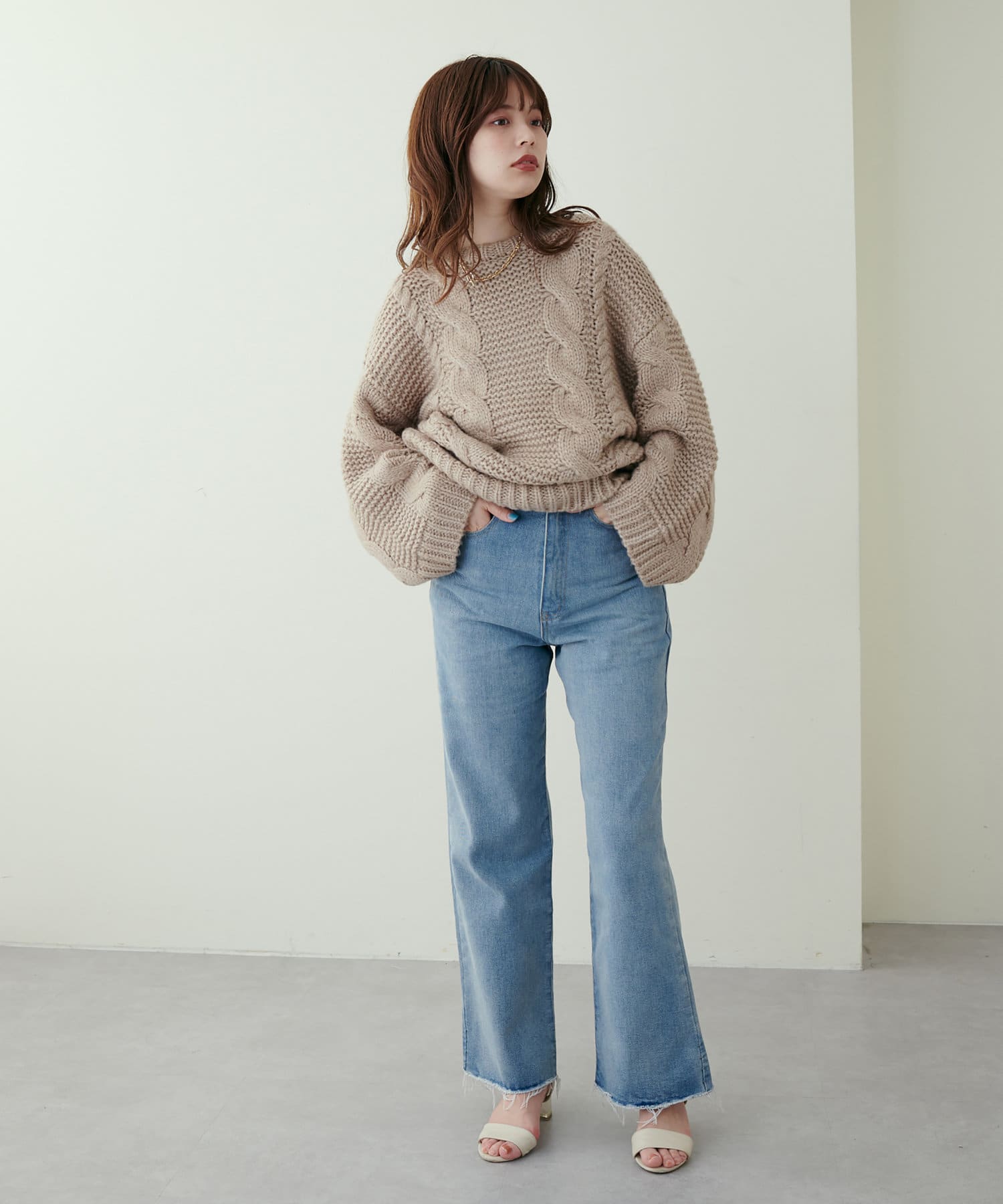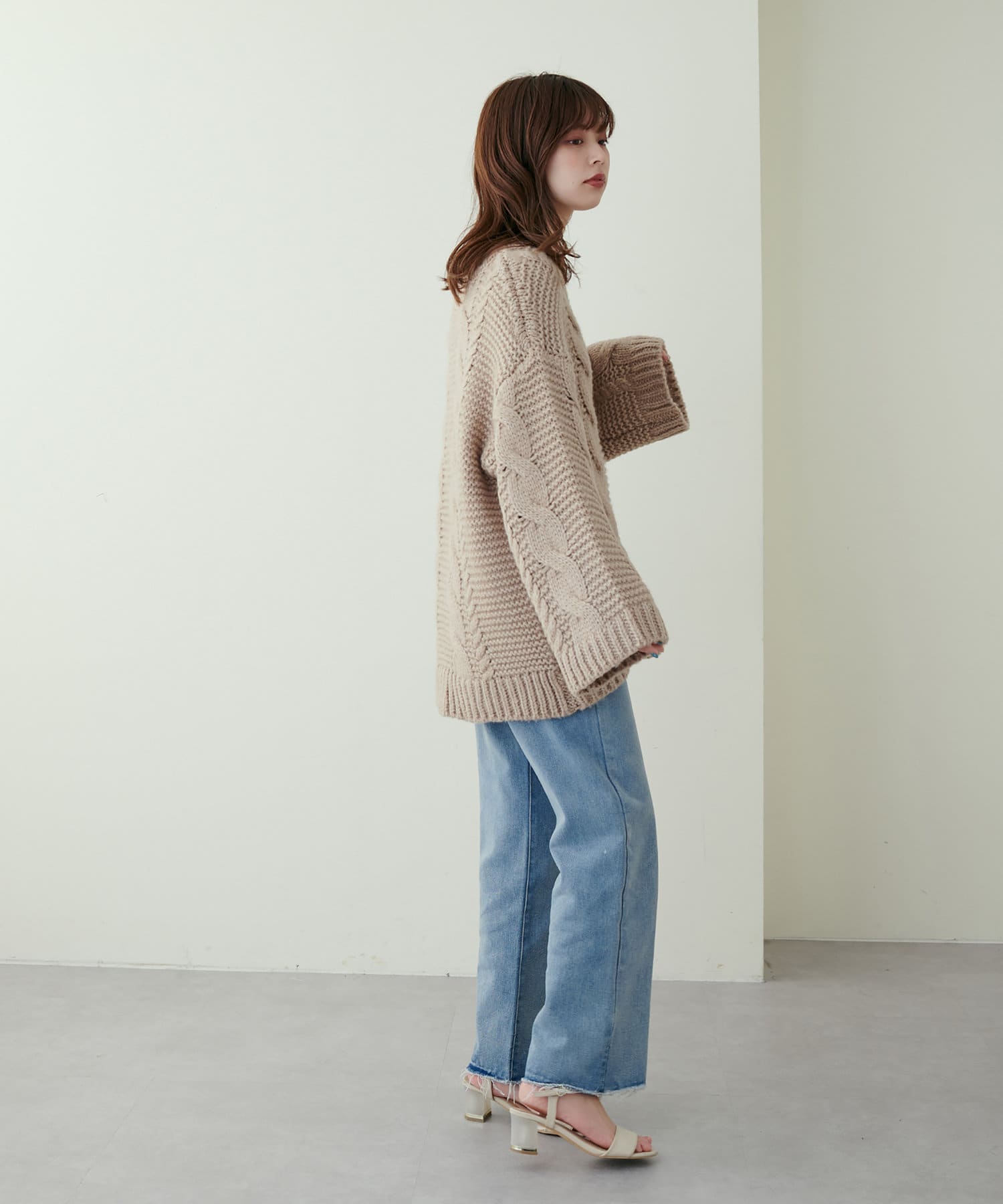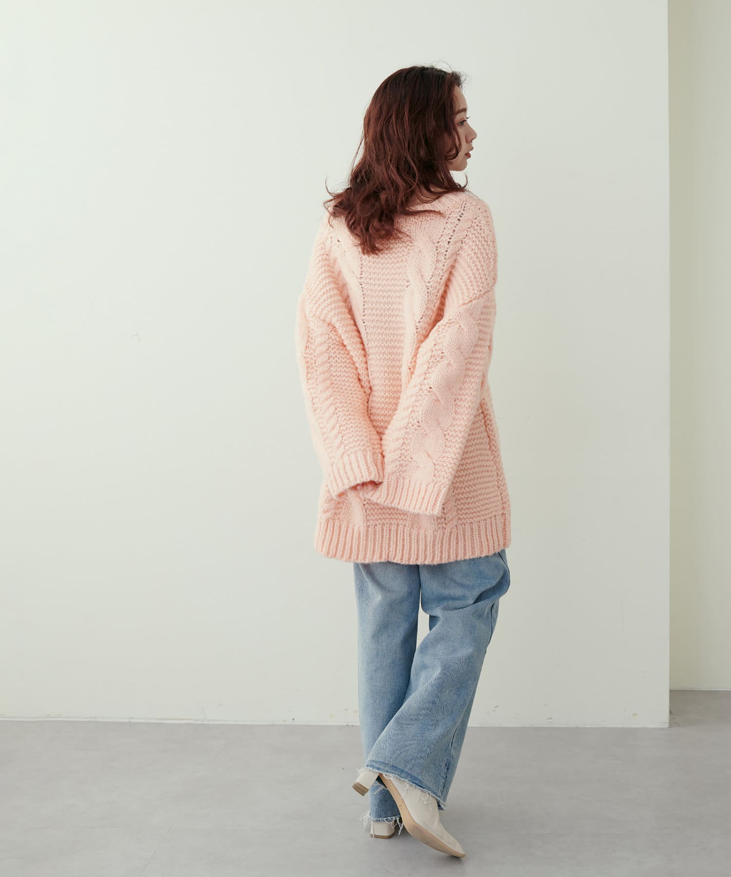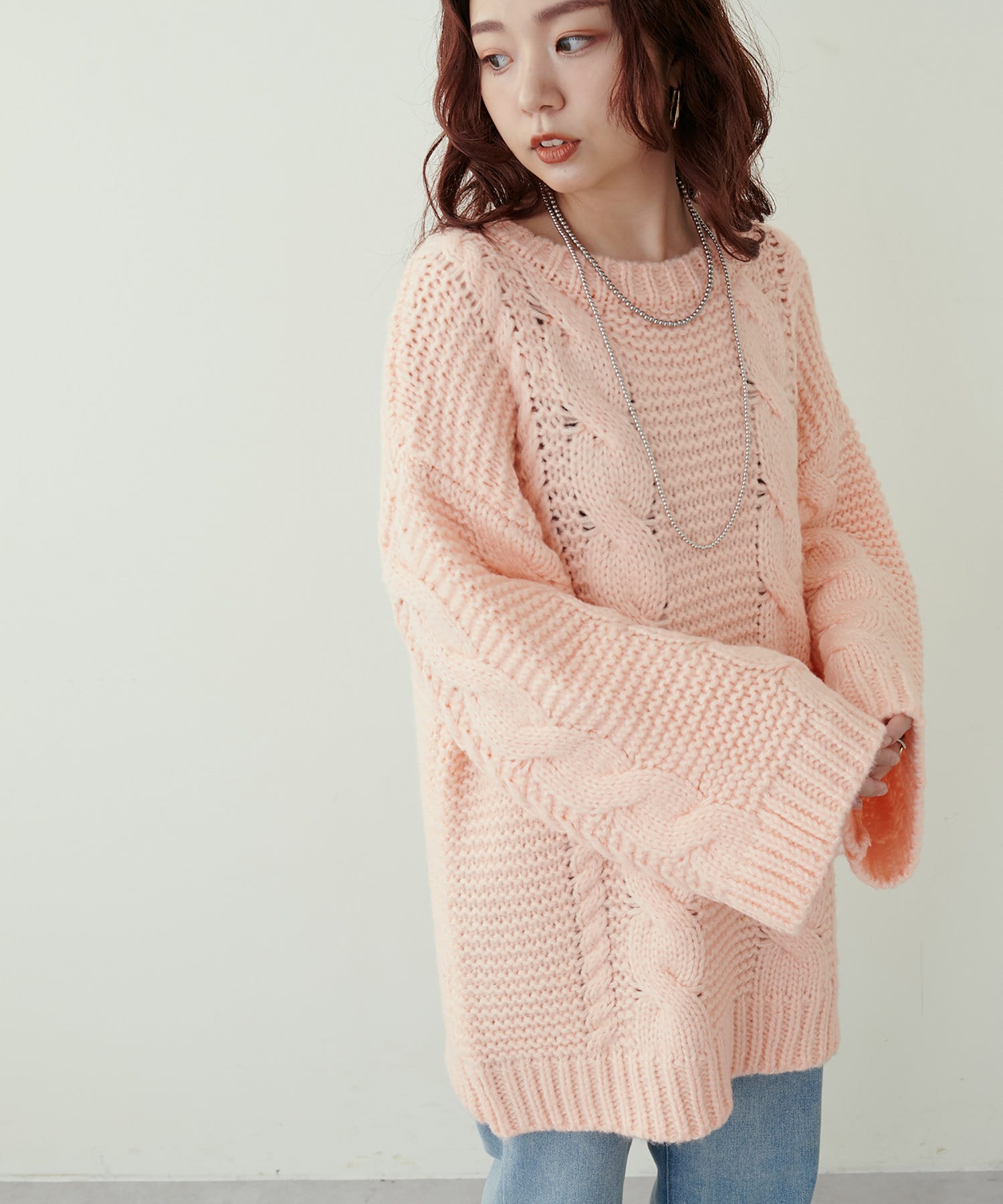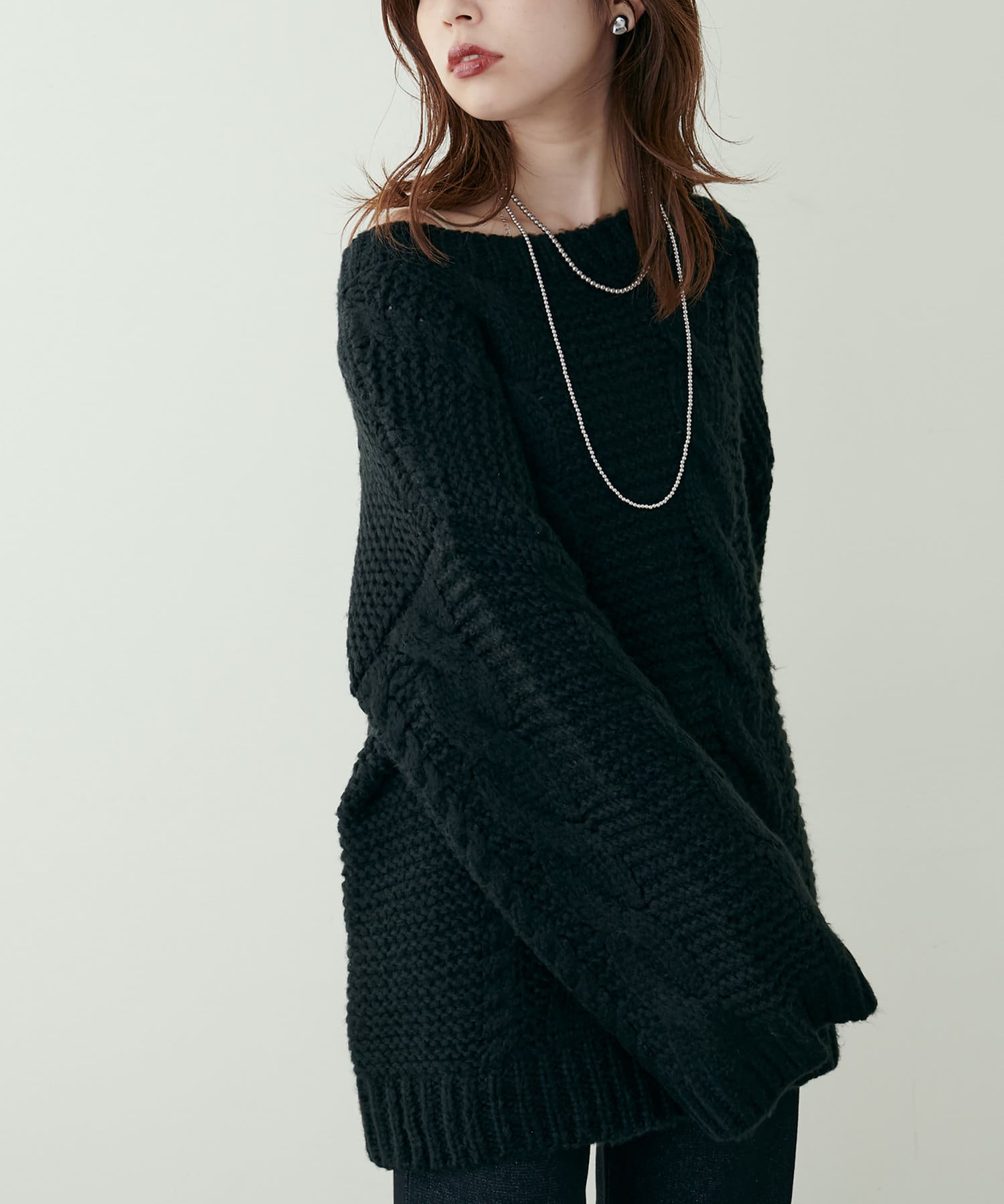 立体感のあるケーブル編みが高見えする1枚です。