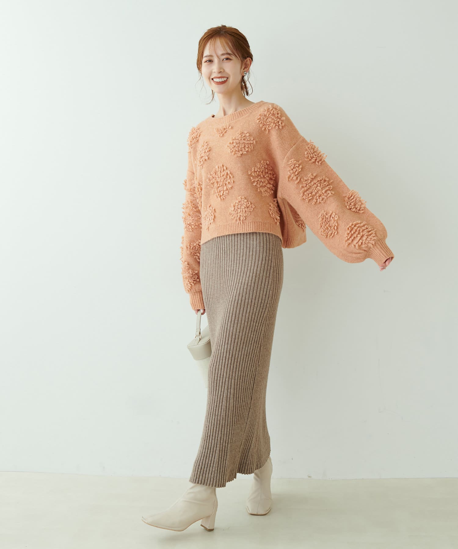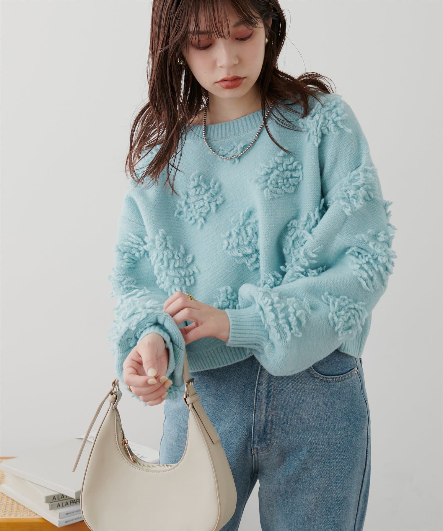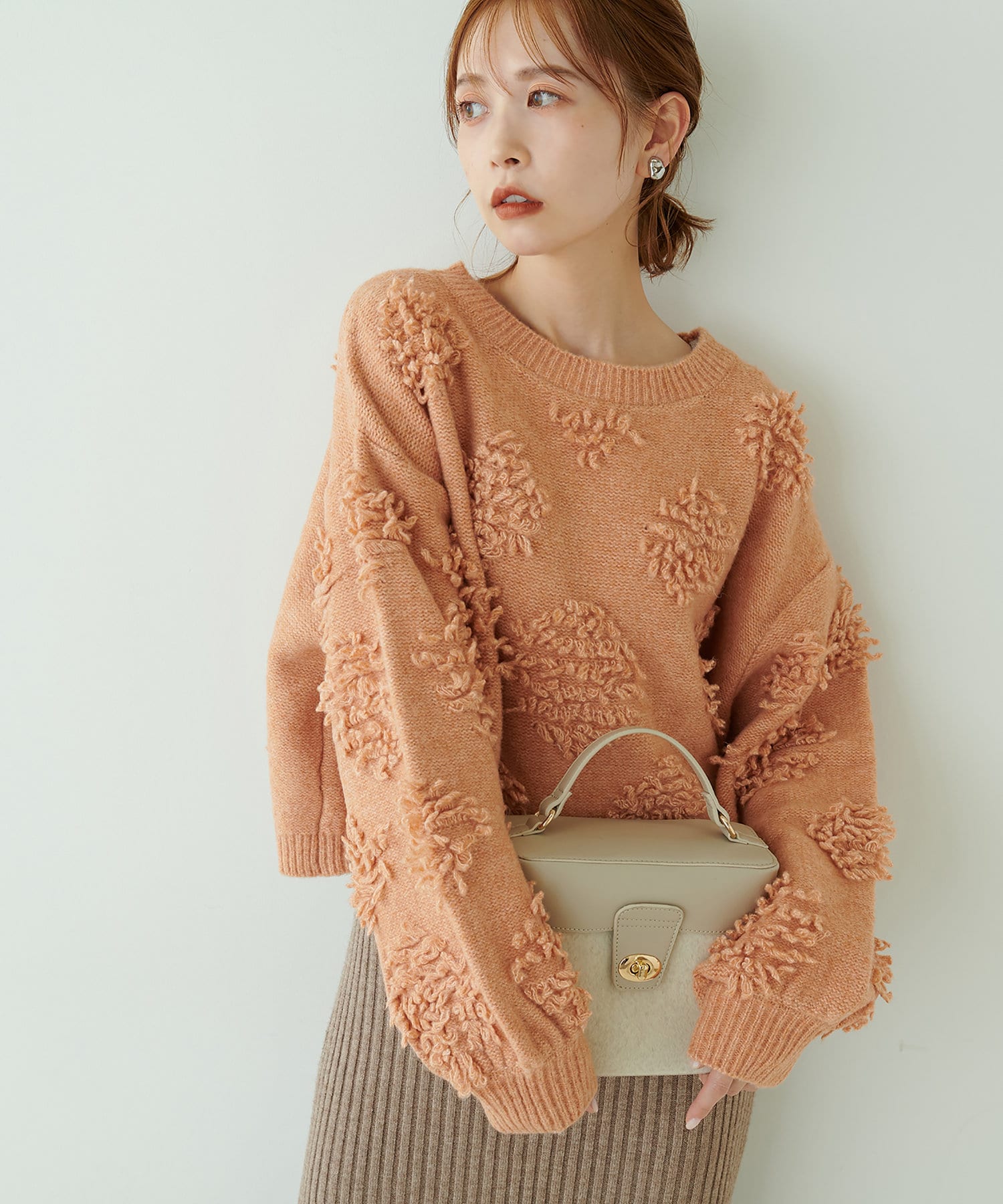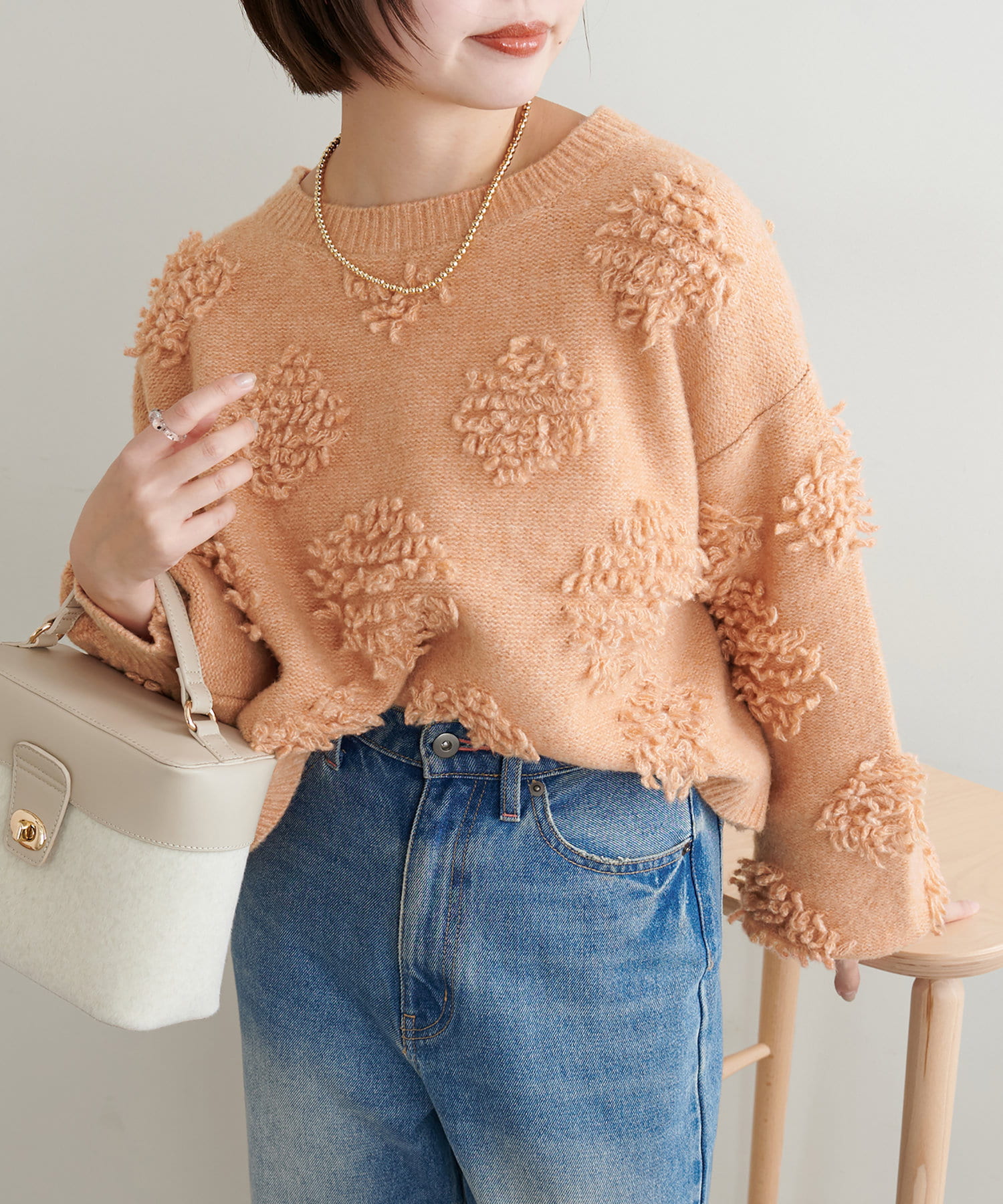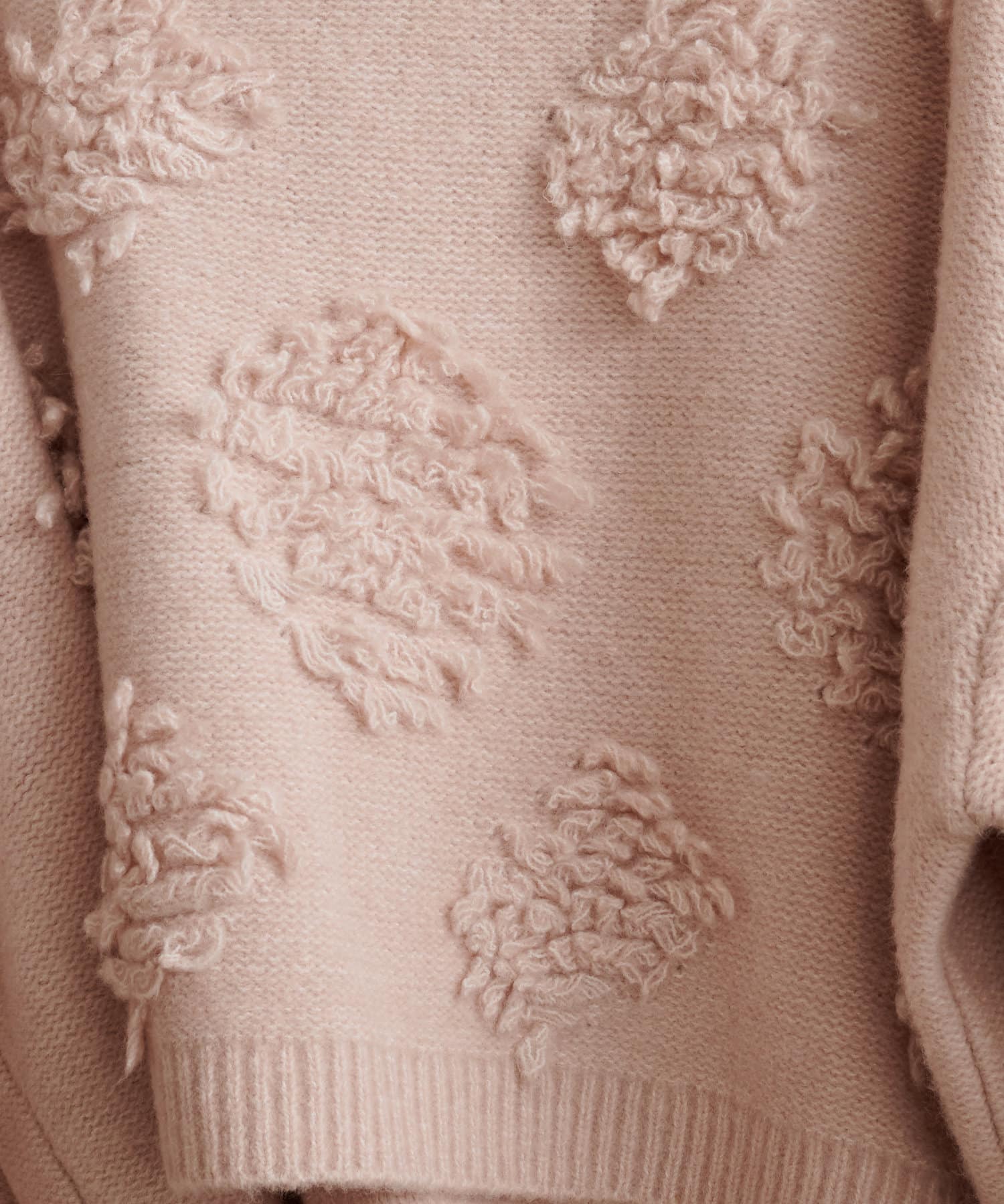 ふんわりと柔らかく安心のある包まれていつようなニット素材。
