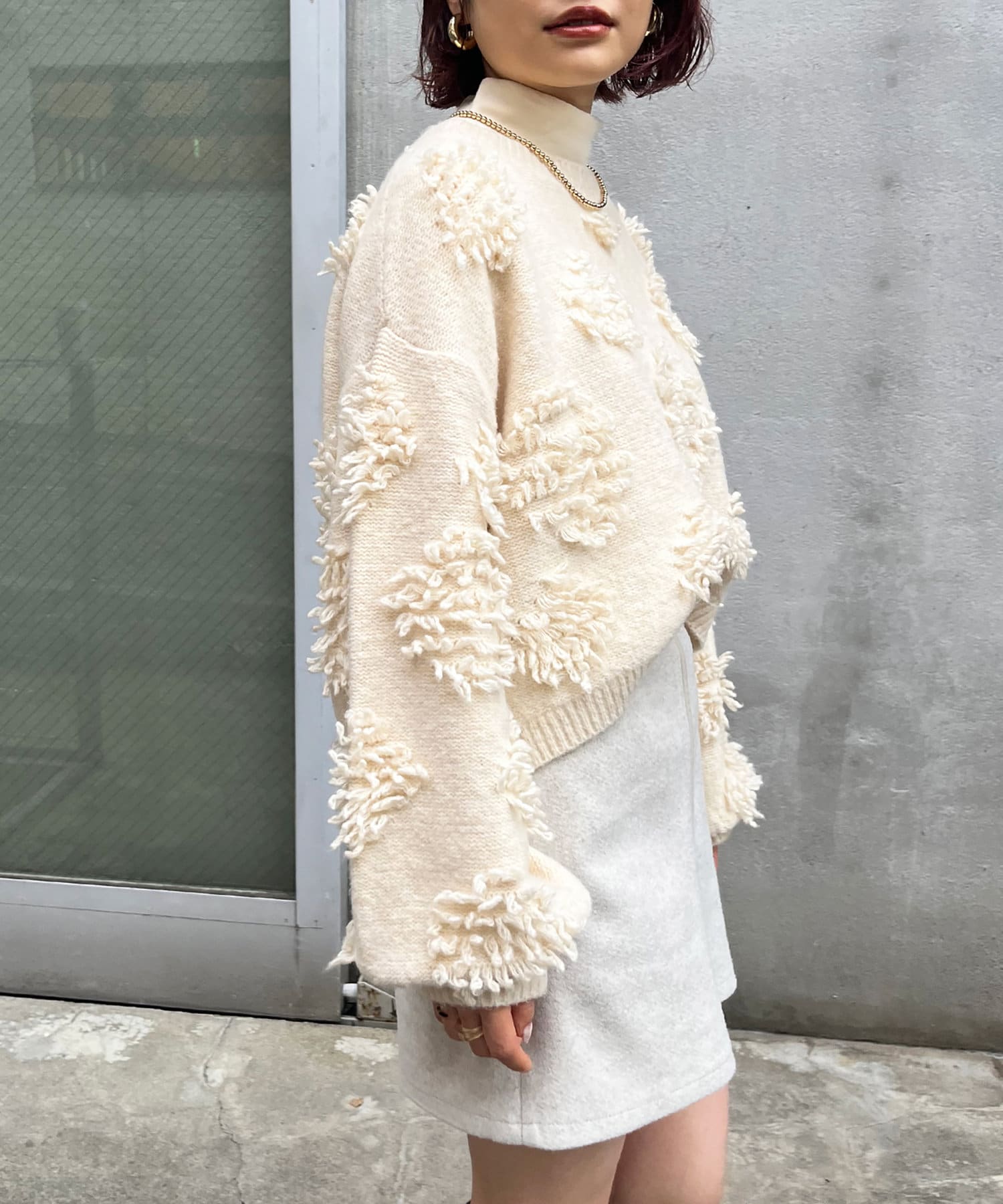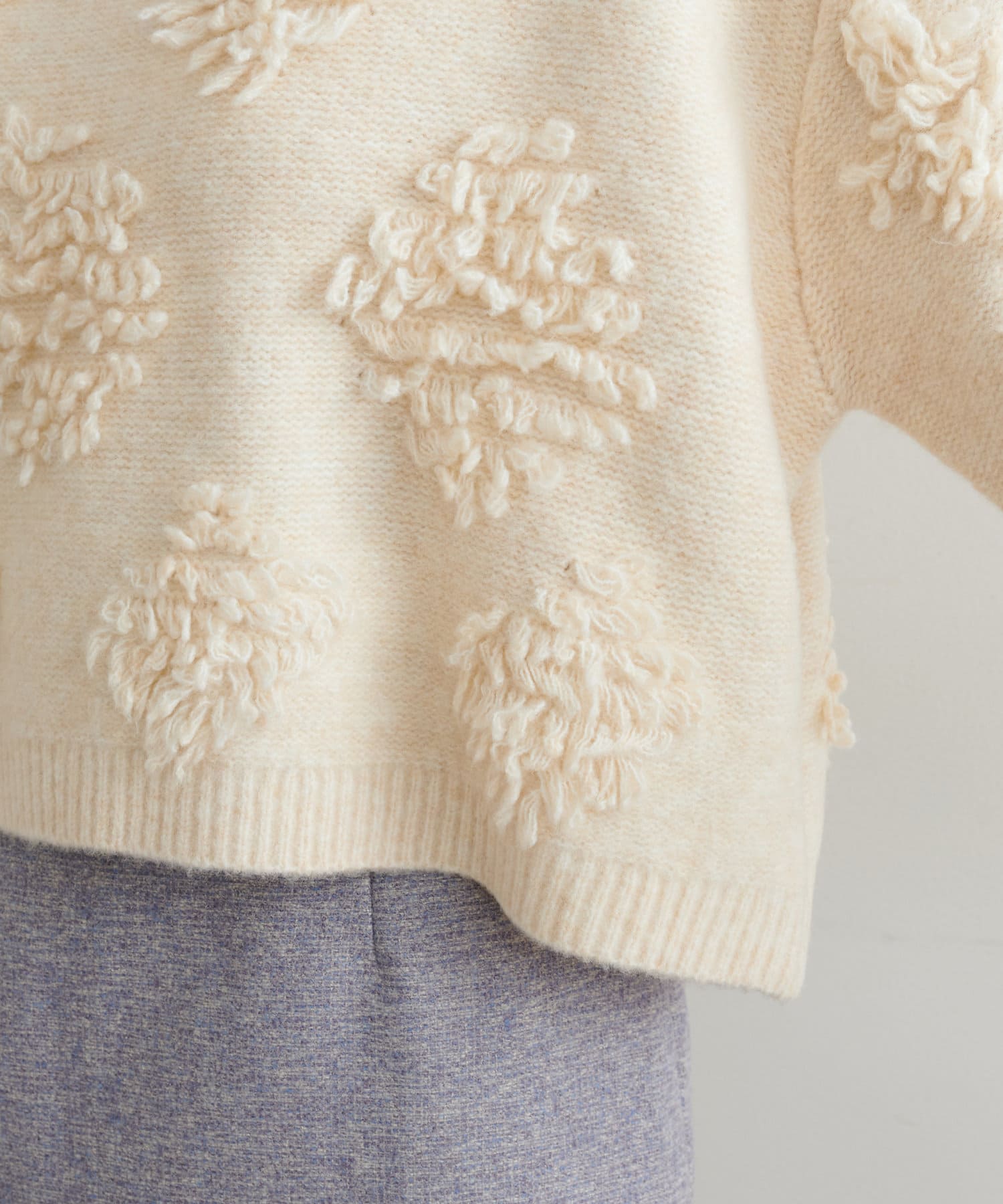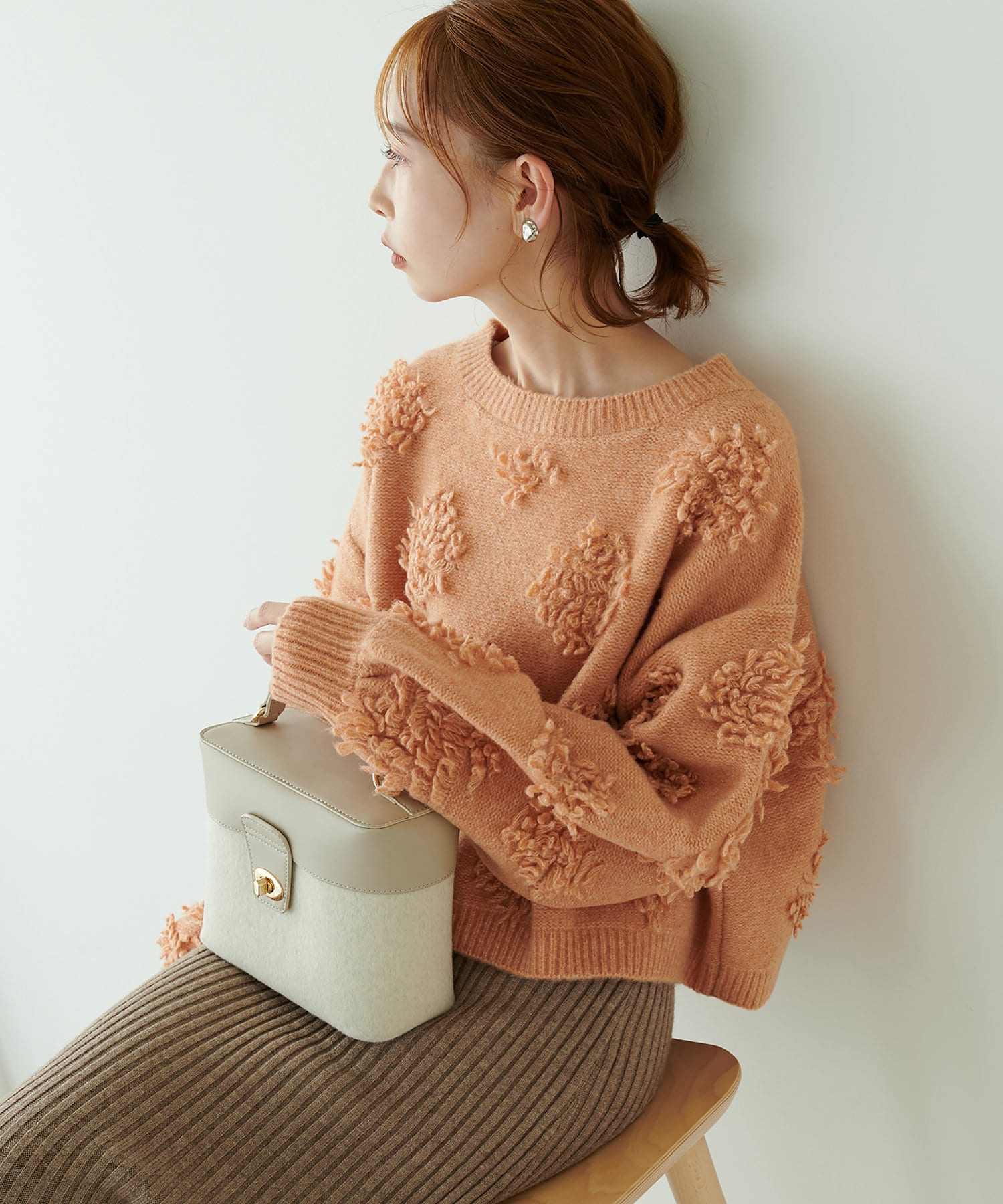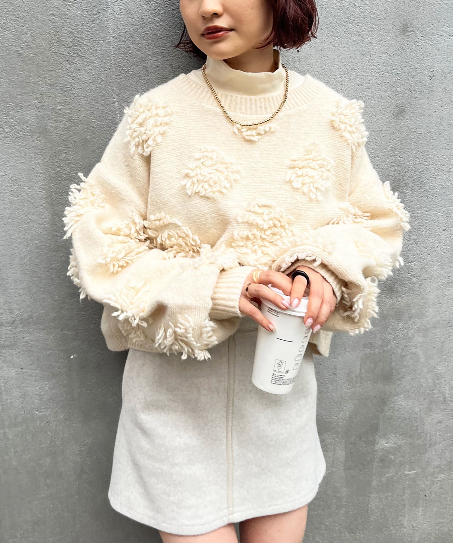 ふんわりと柔らかく安心のある包まれていつようなニット素材。