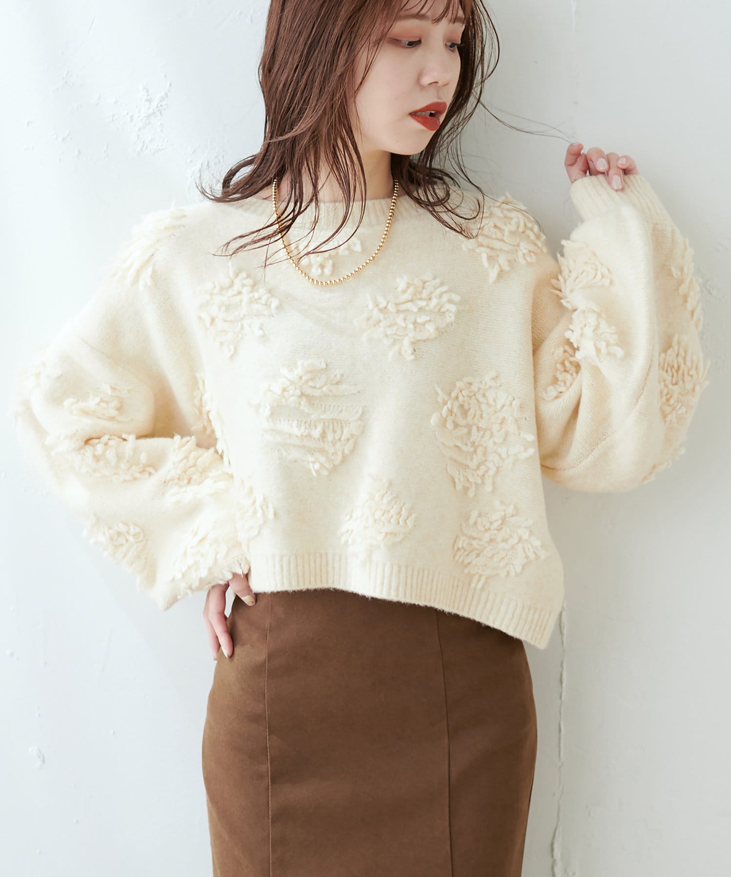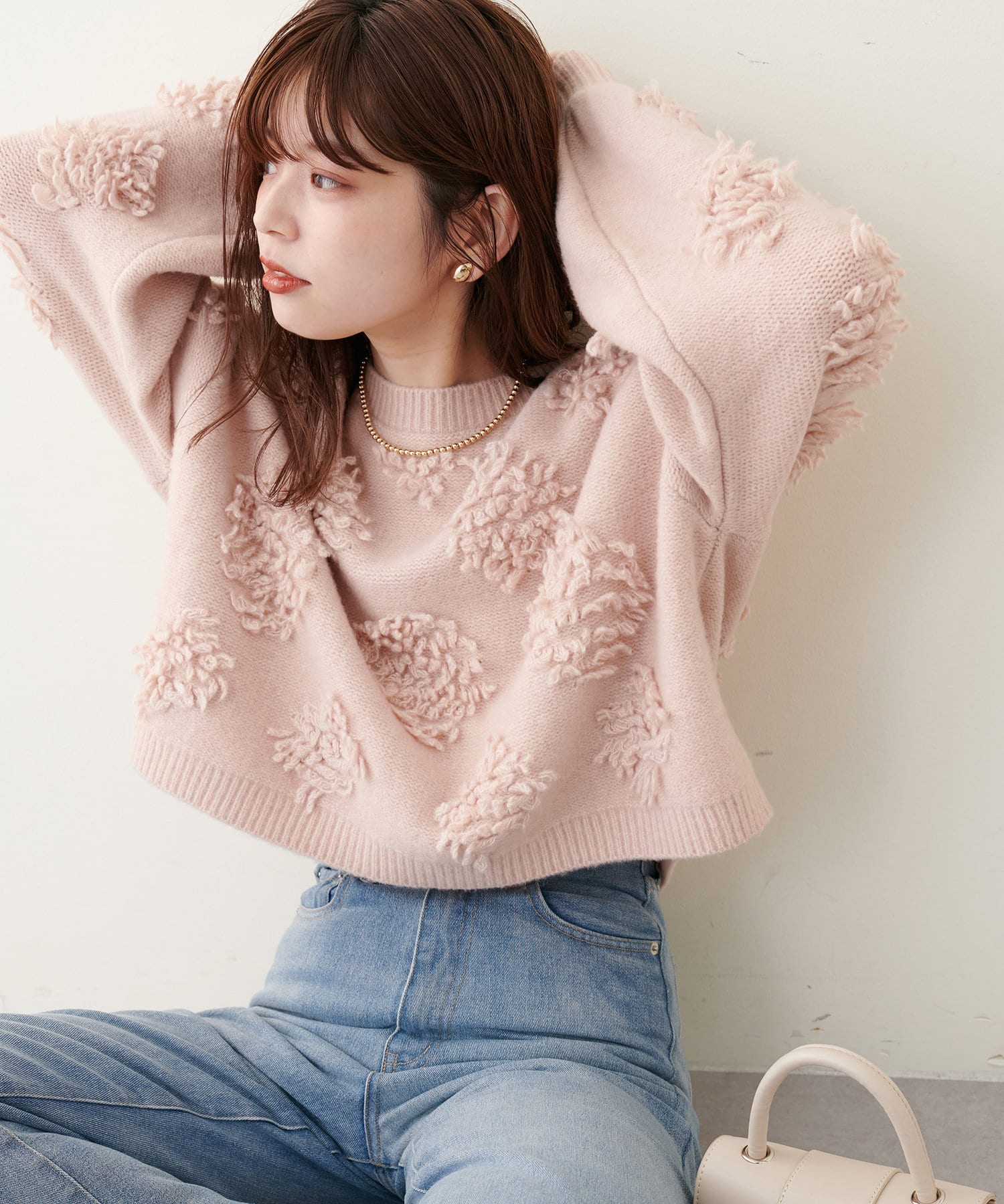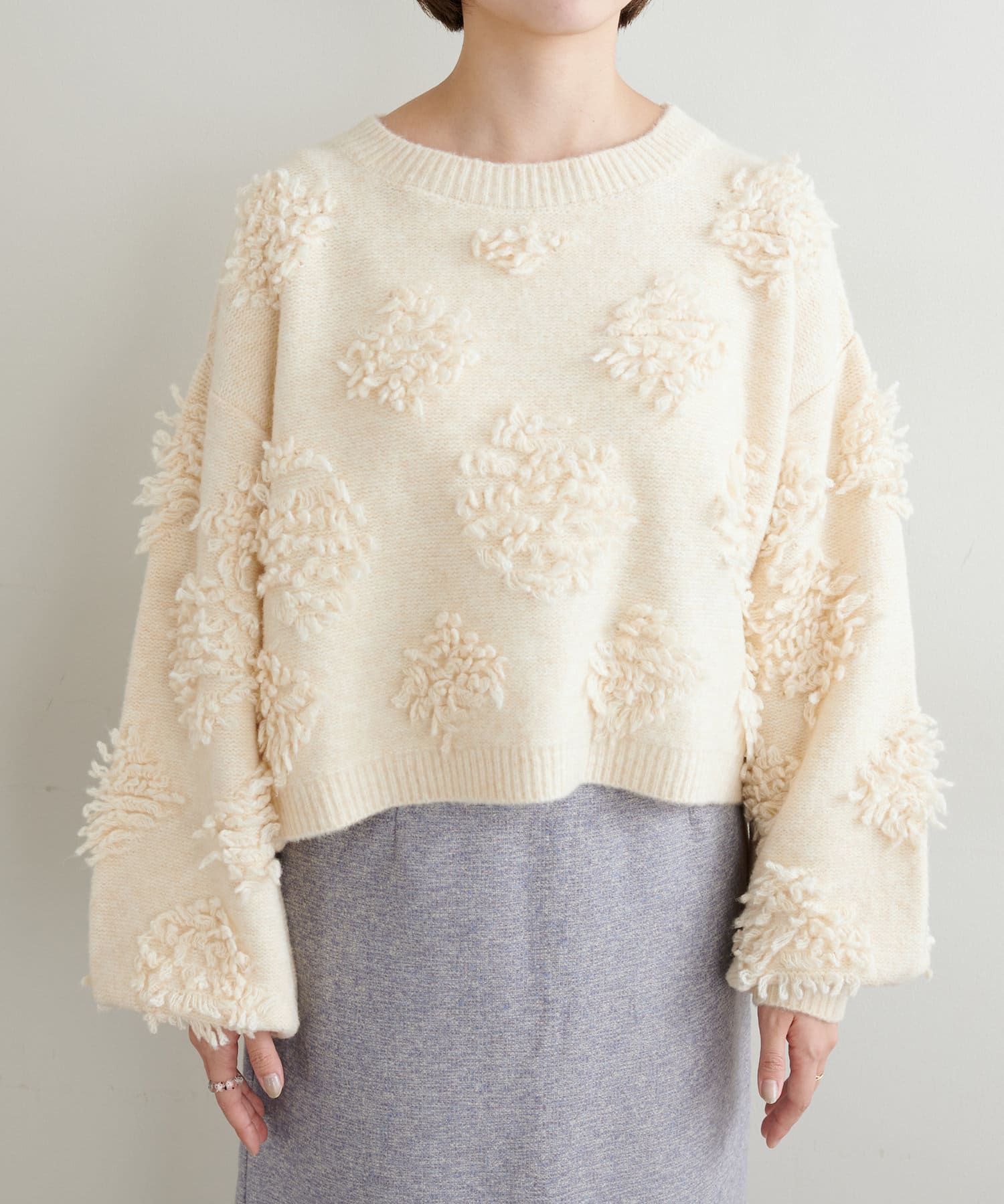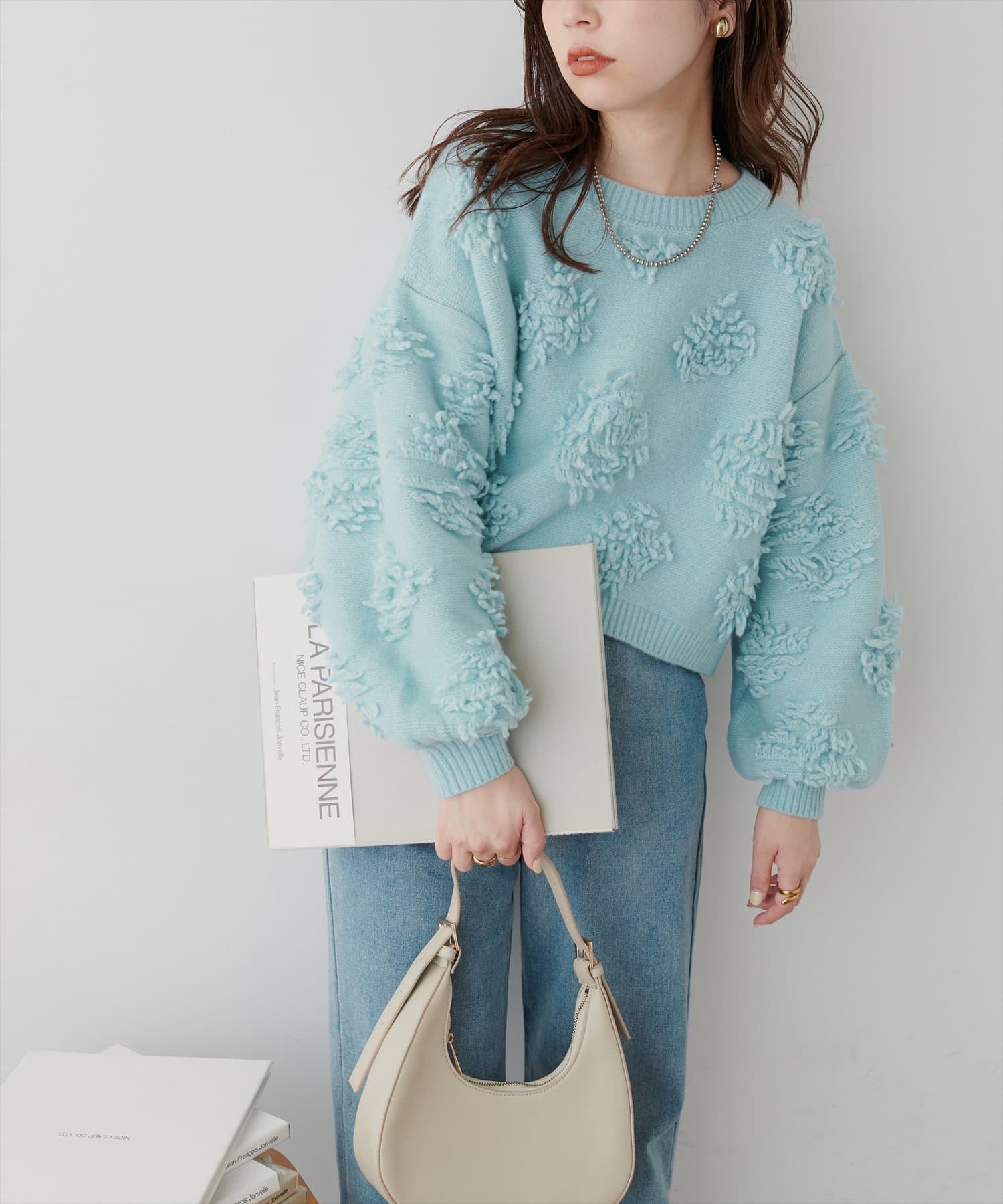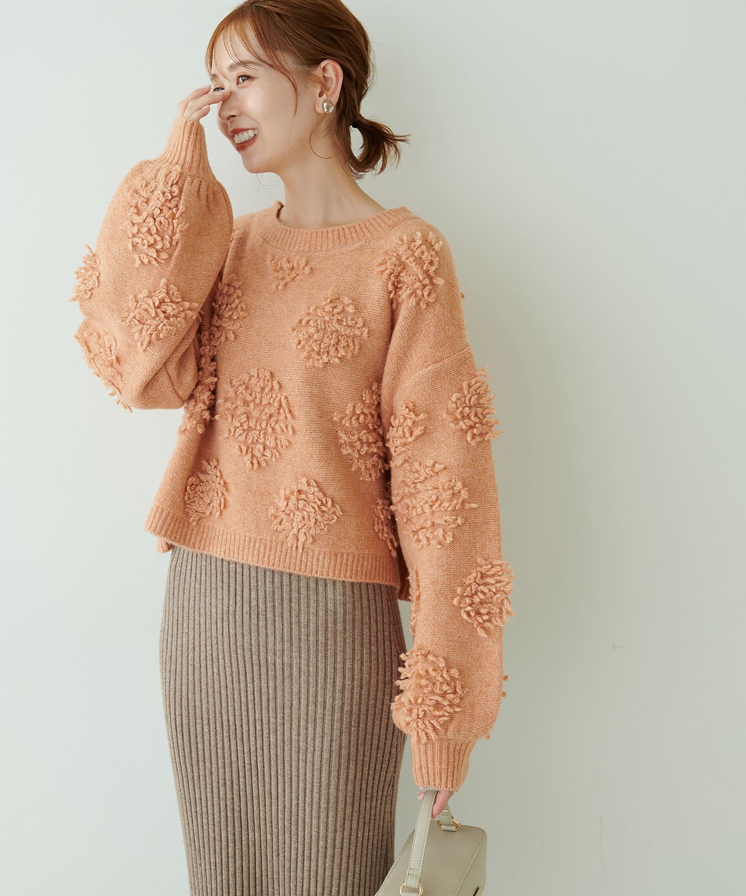 ふんわりと柔らかく安心のある包まれていつようなニット素材。