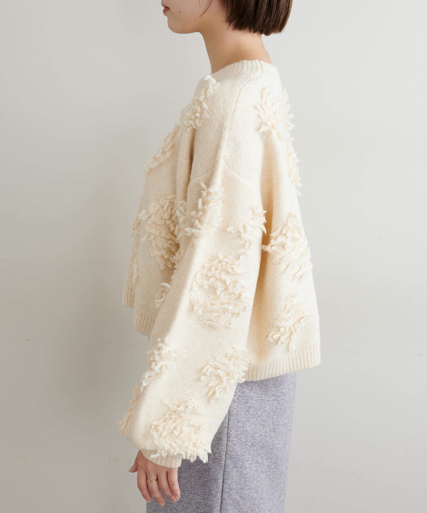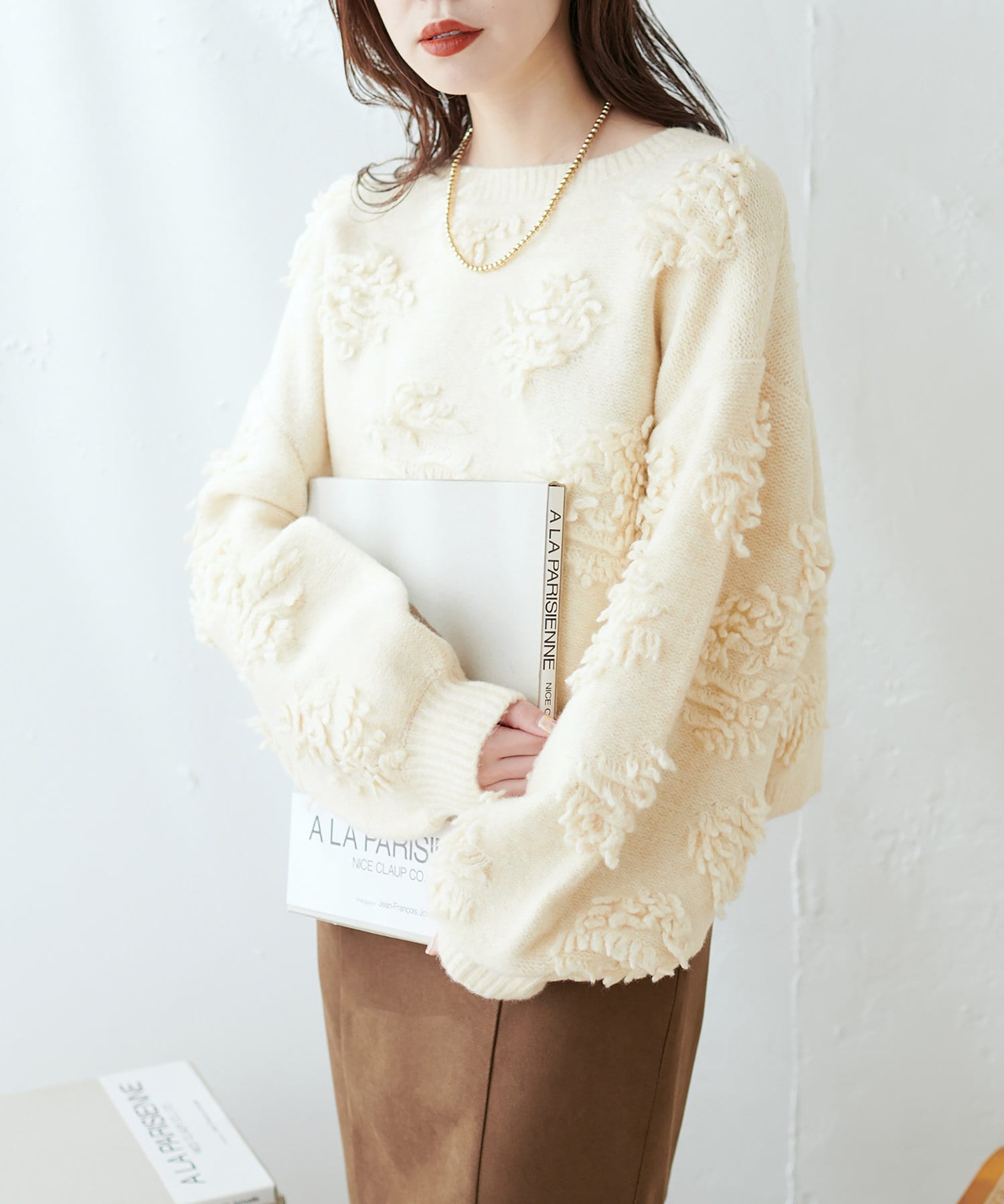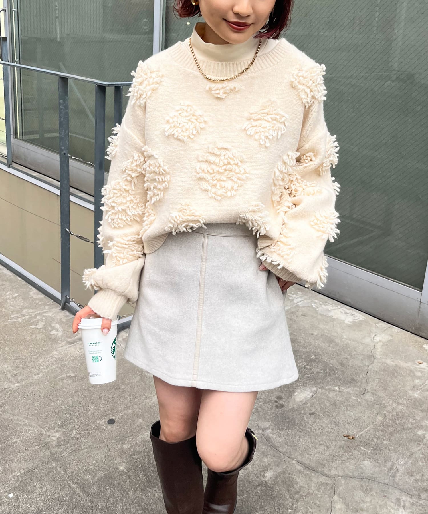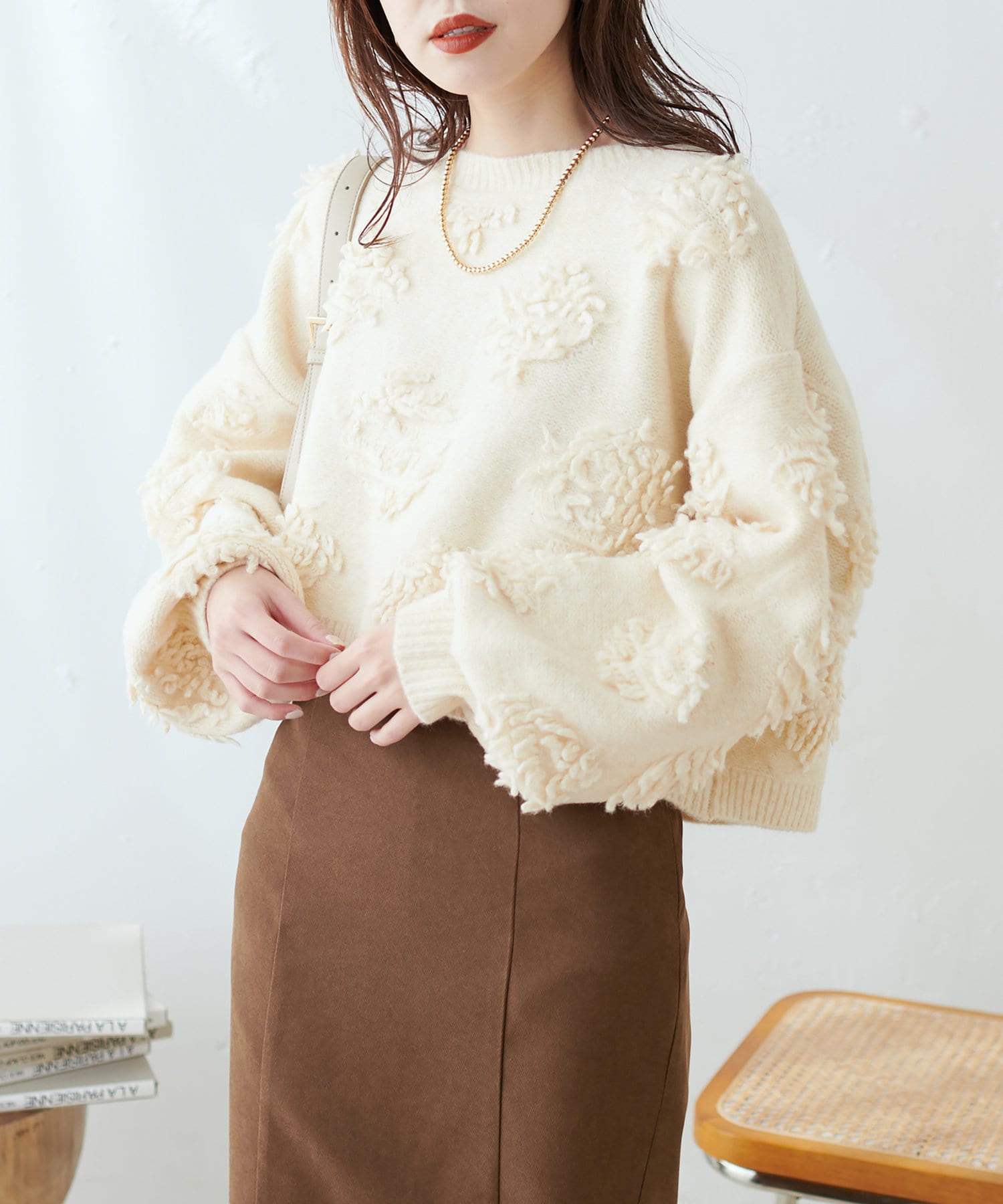 ふんわりと柔らかく安心のある包まれていつようなニット素材。