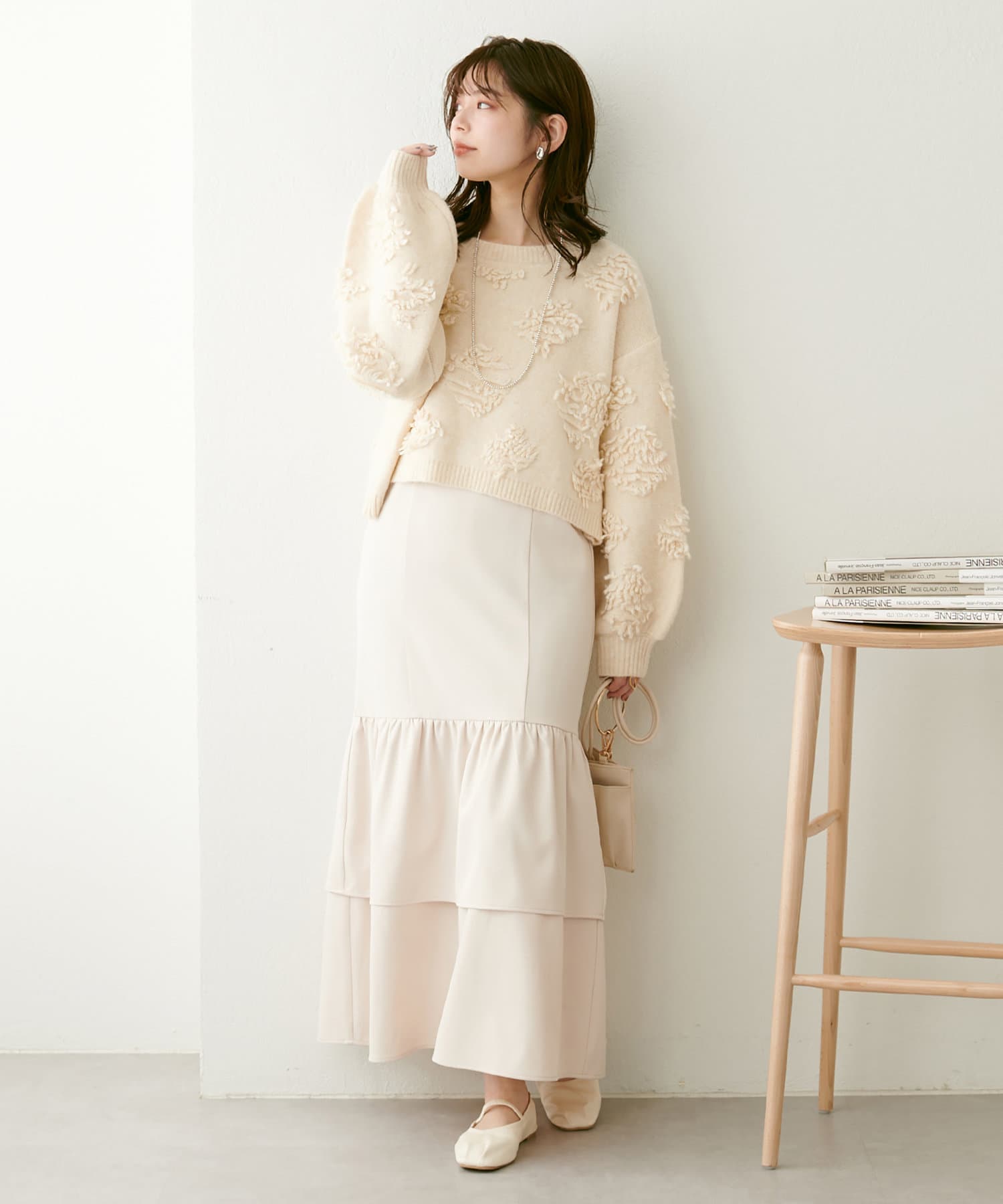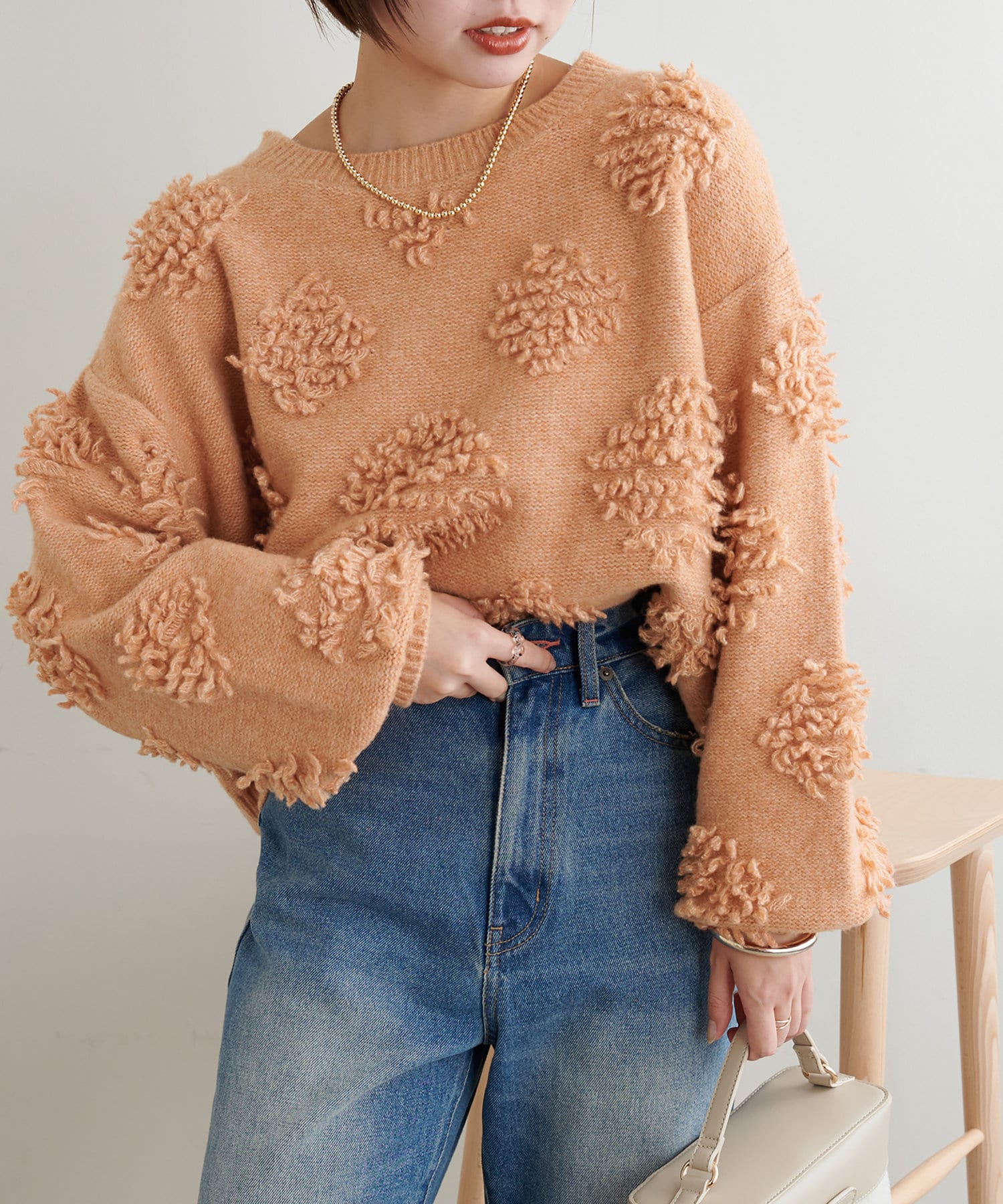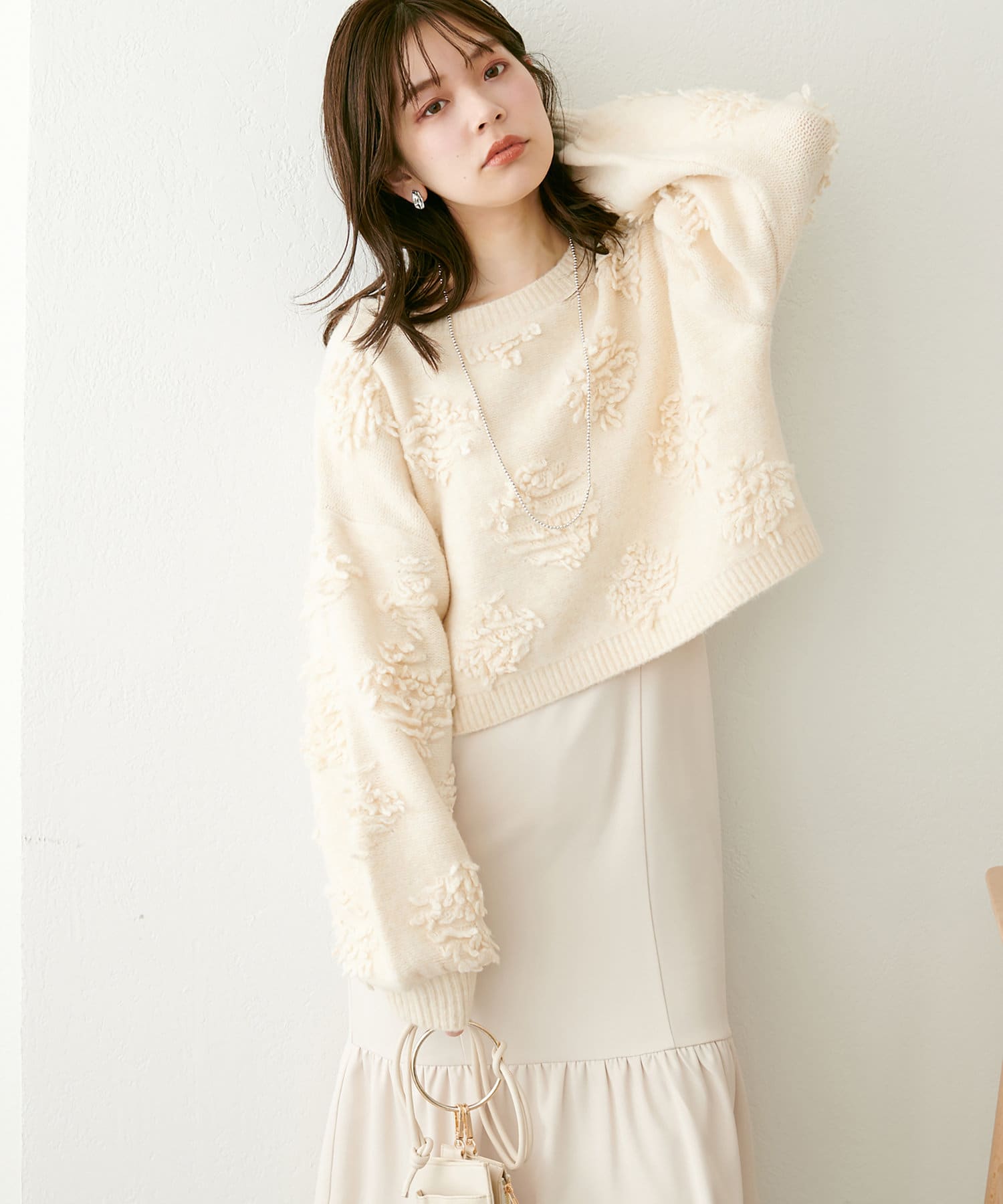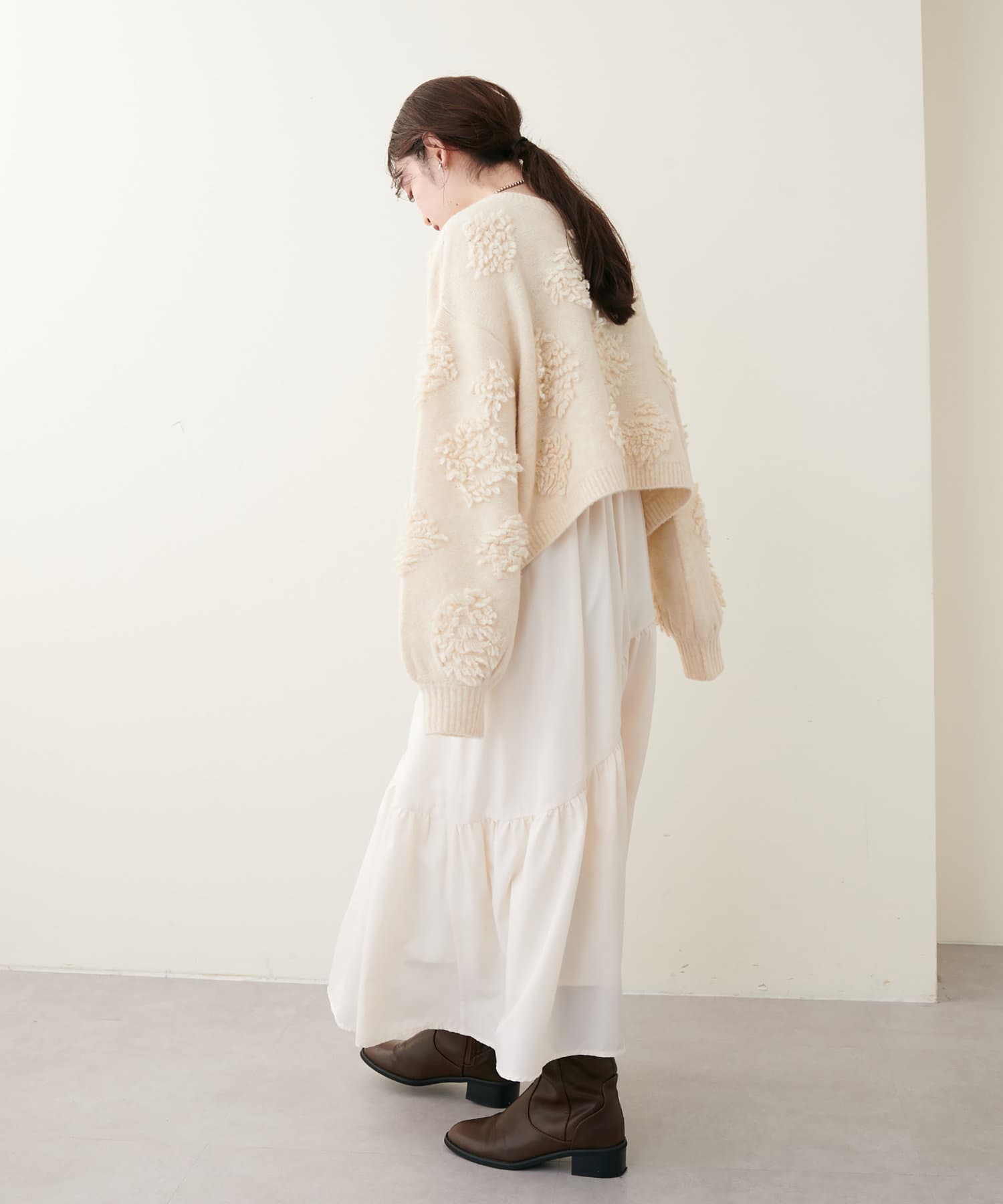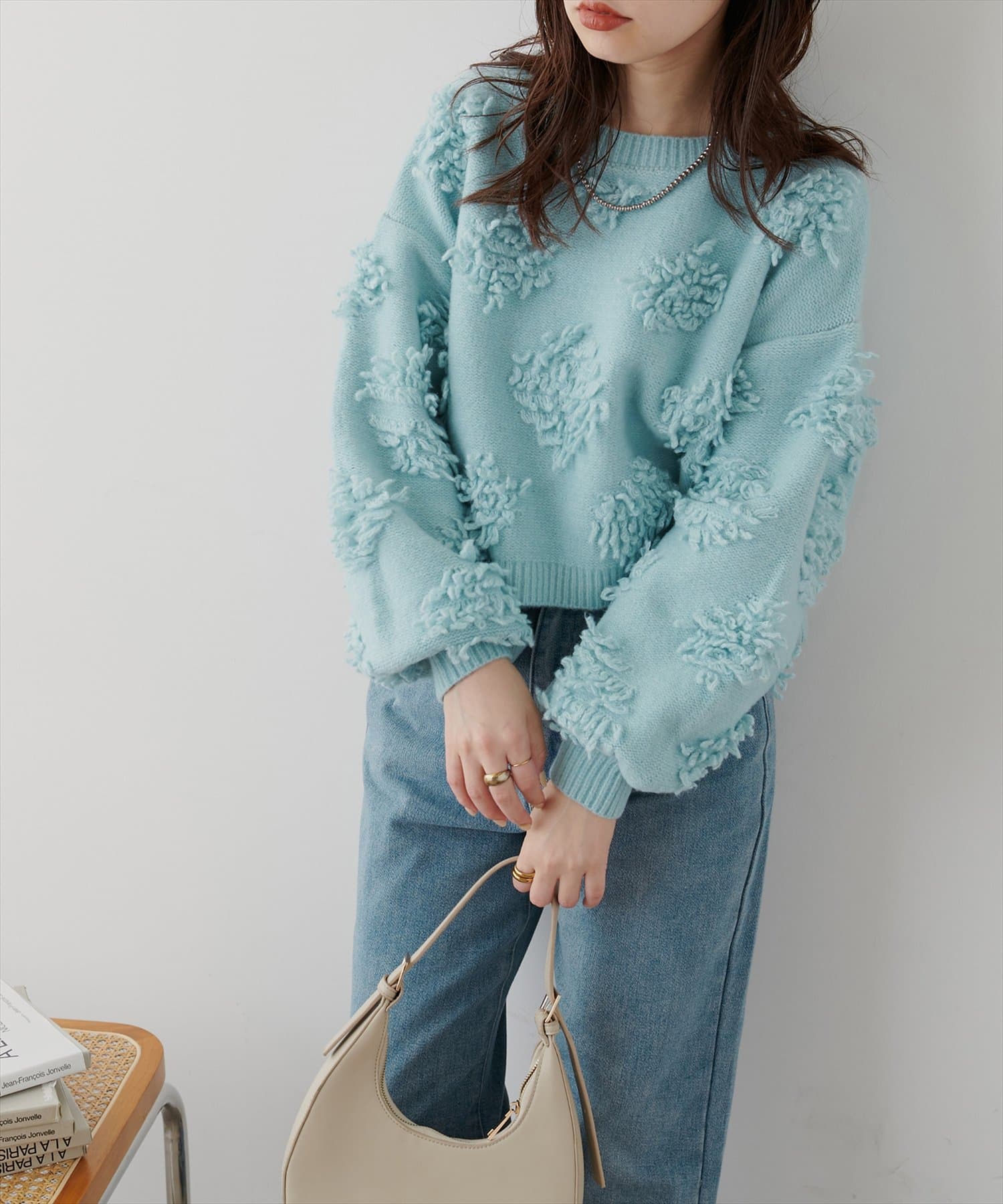 ふんわりと柔らかく安心のある包まれていつようなニット素材。