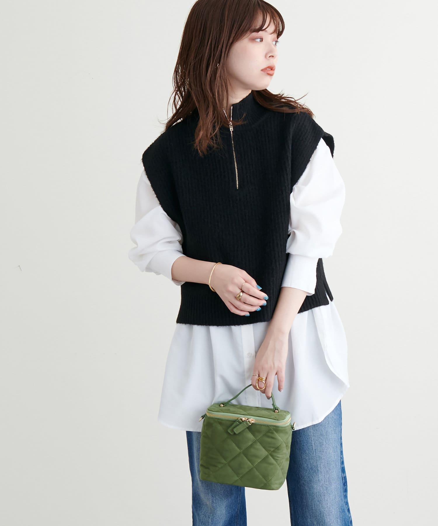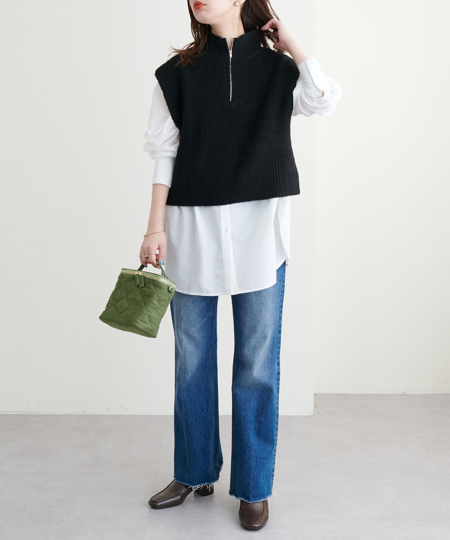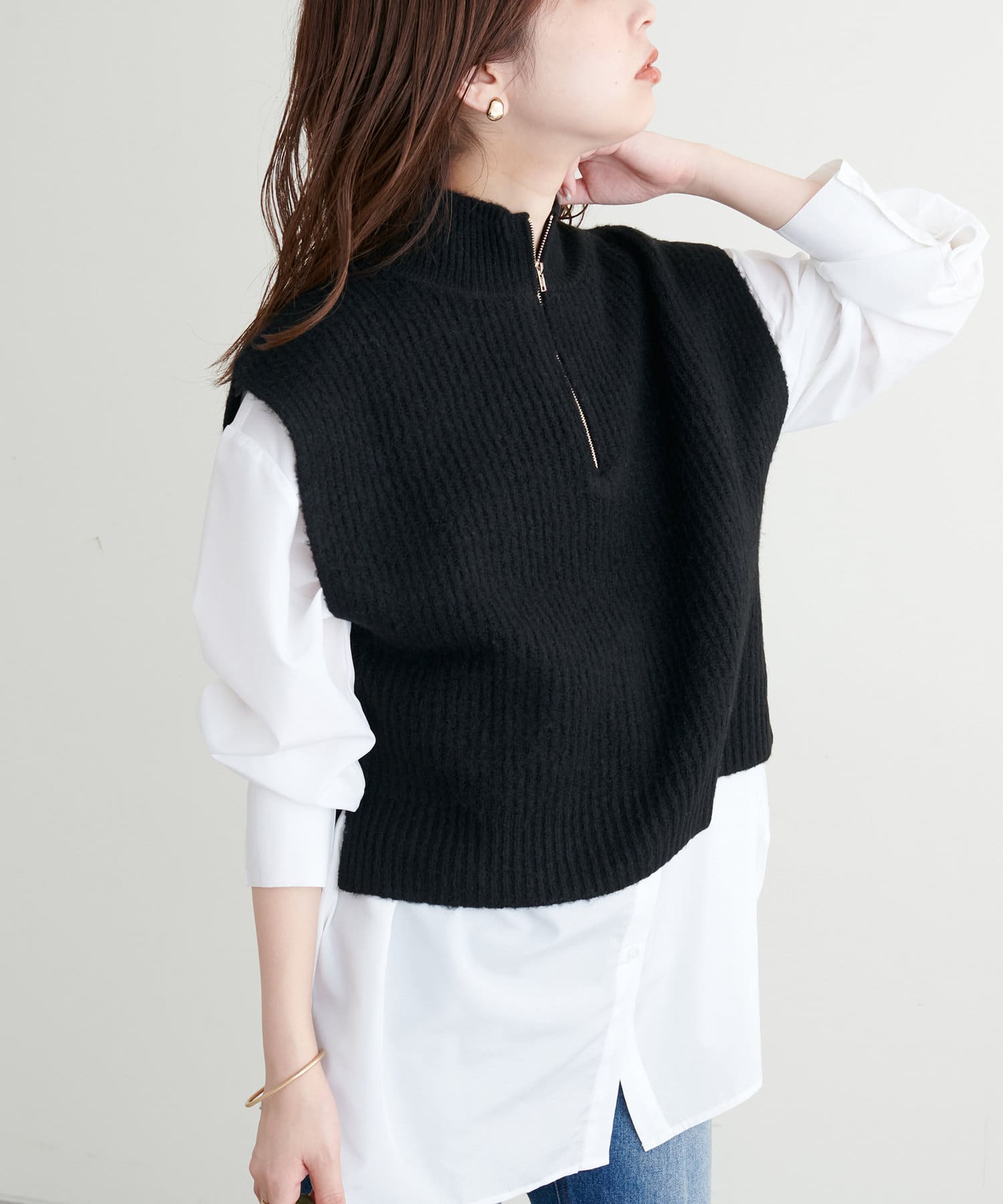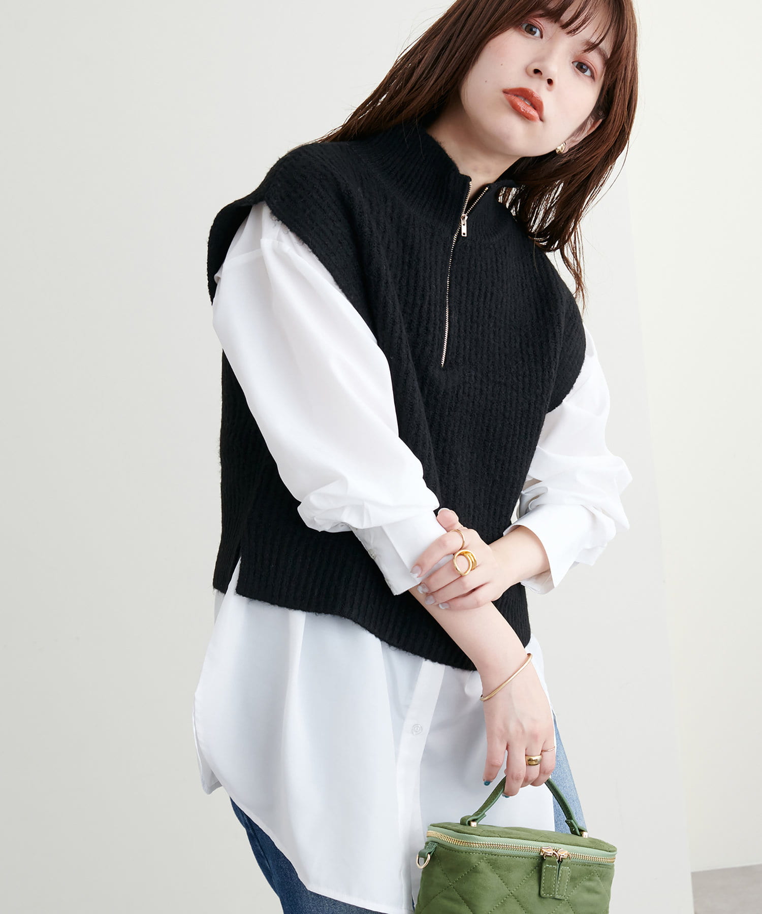 こなれたレイヤードスタイルとしても◎2WAYジップニットベスト