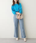ショート丈なのでウエスト位置が高く見え、女性らしいシルエットの一枚です。