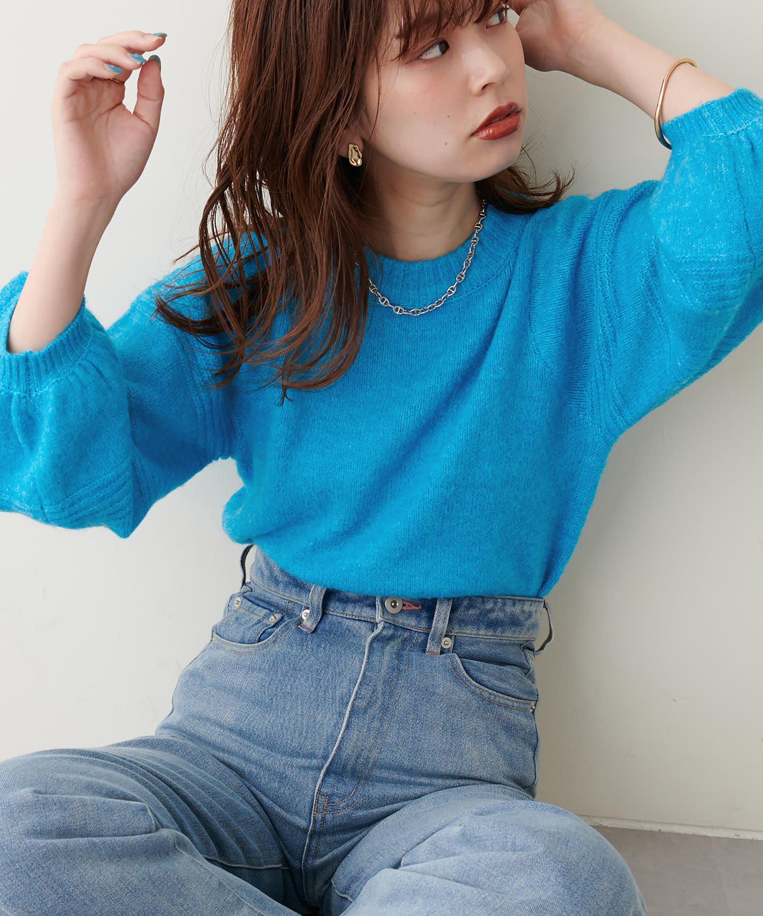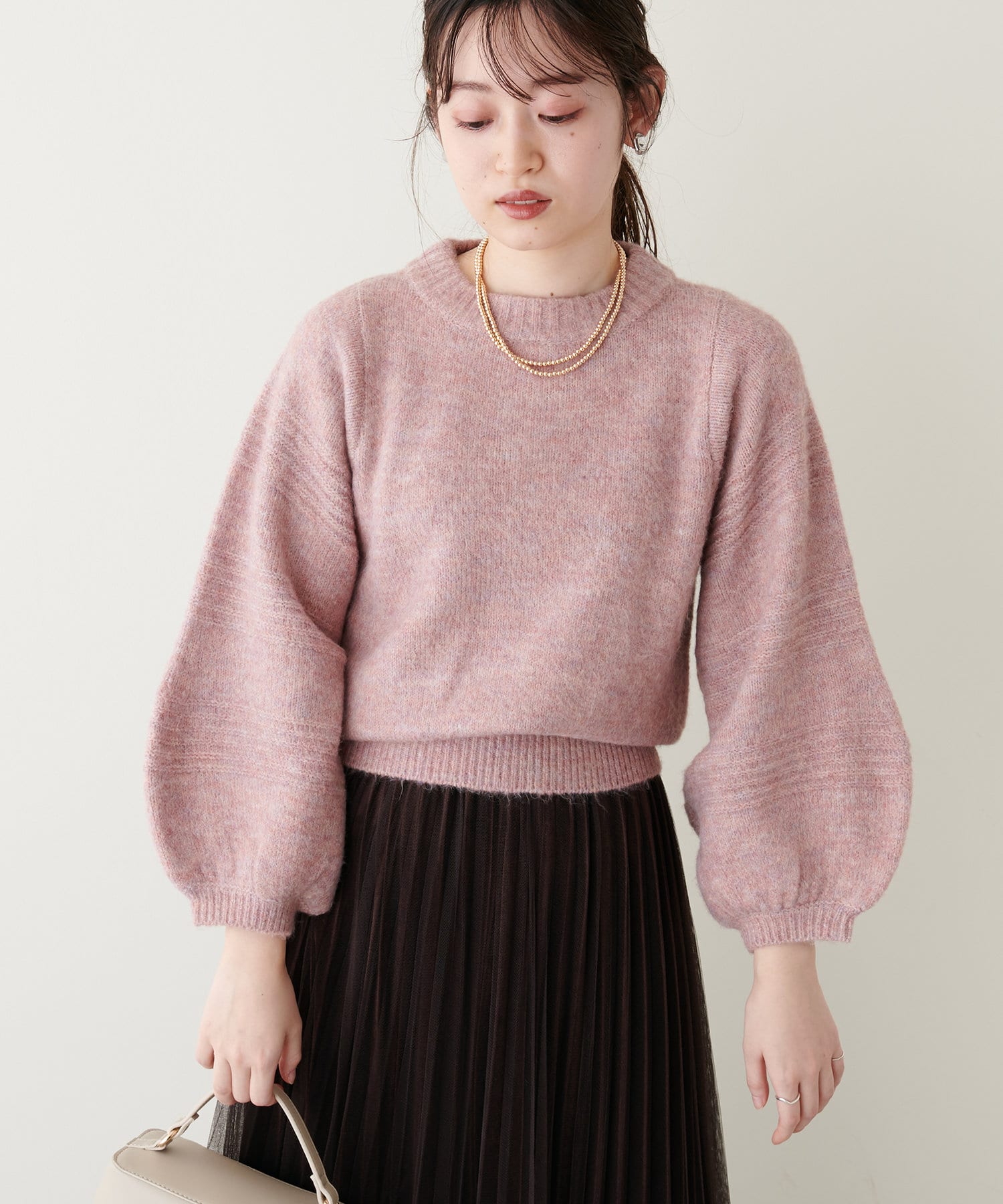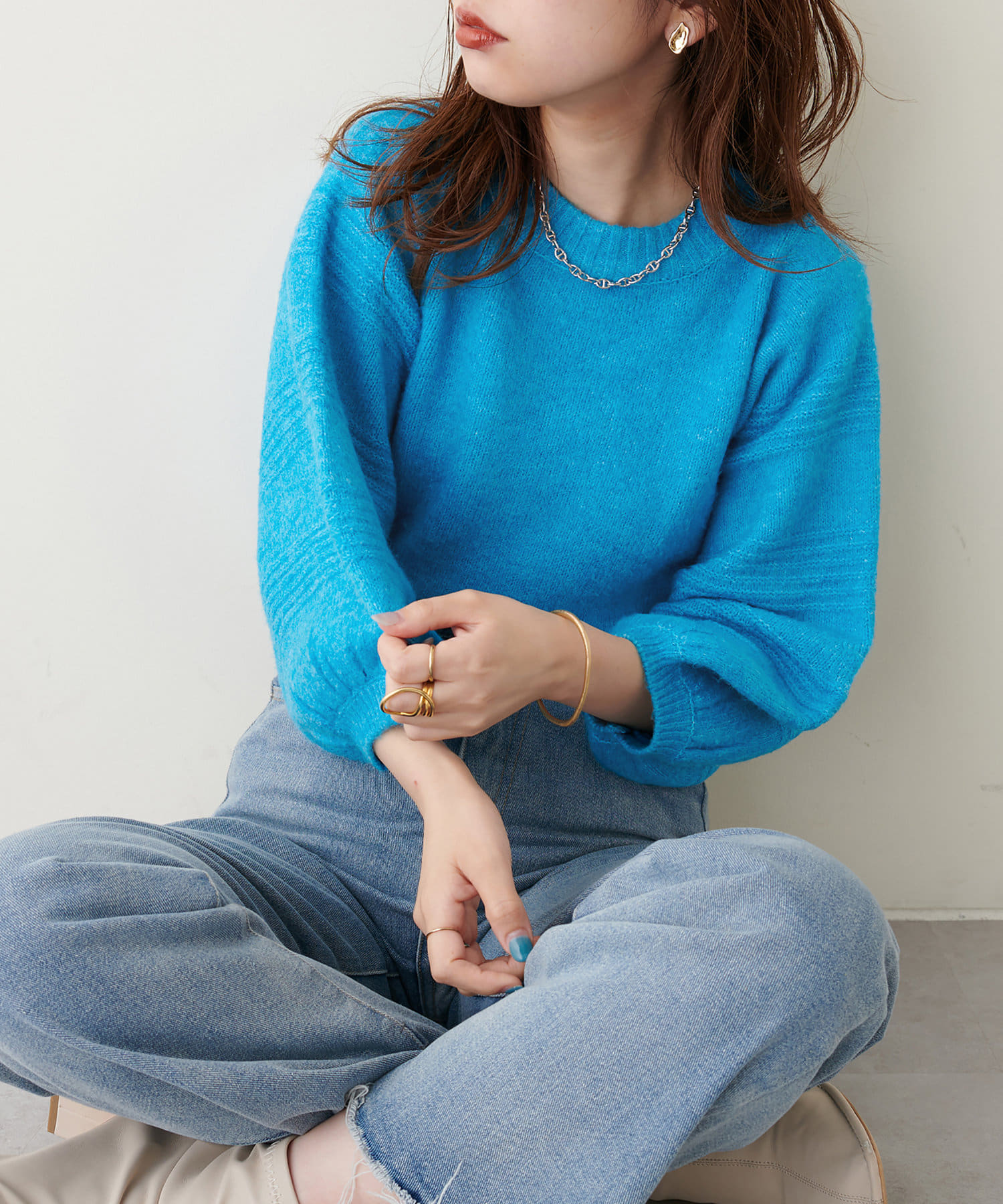 目を惹くカラーバリエーション/ボリュームスリーブニット