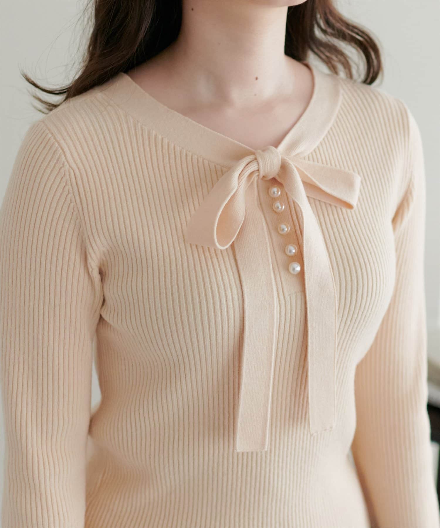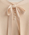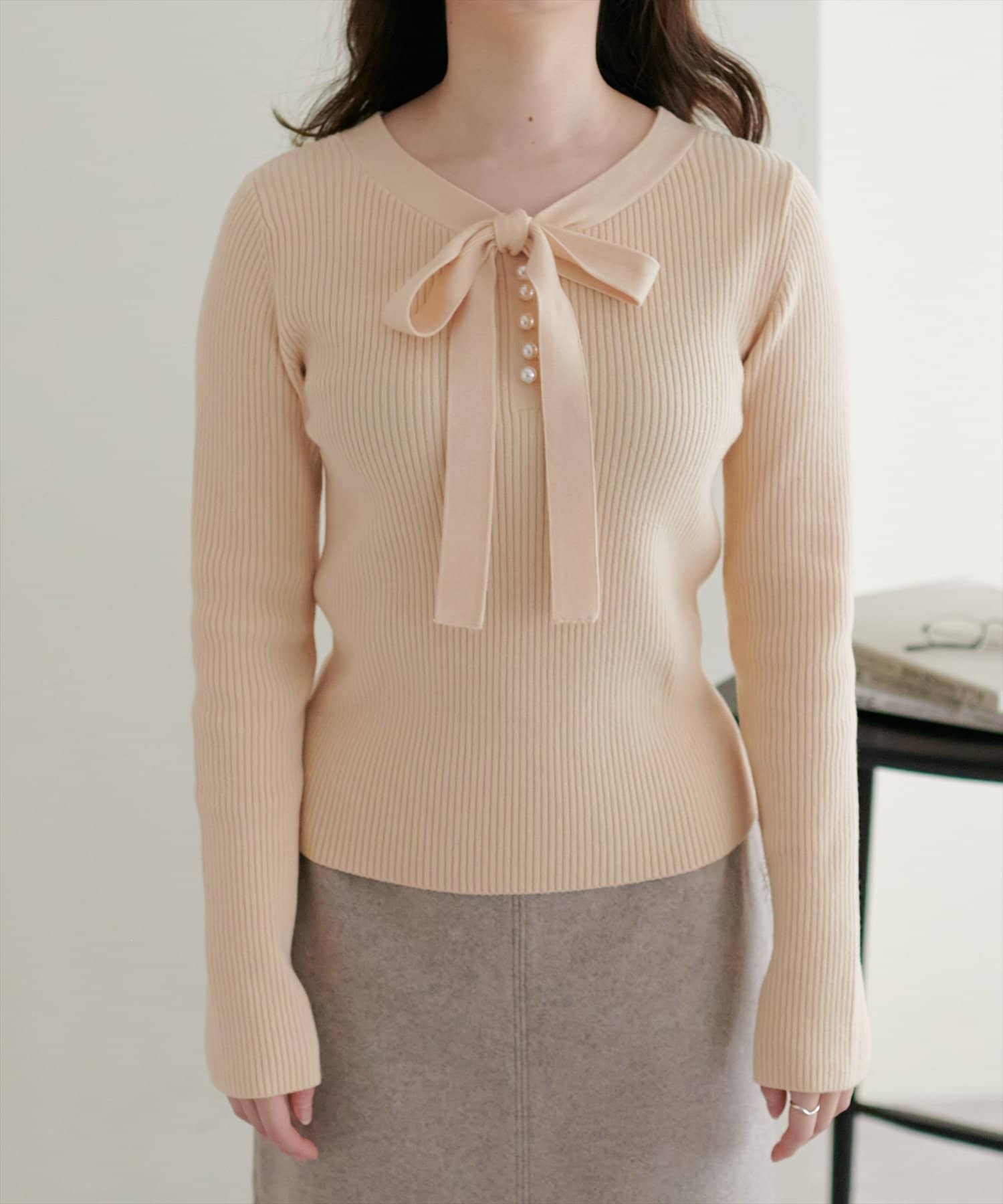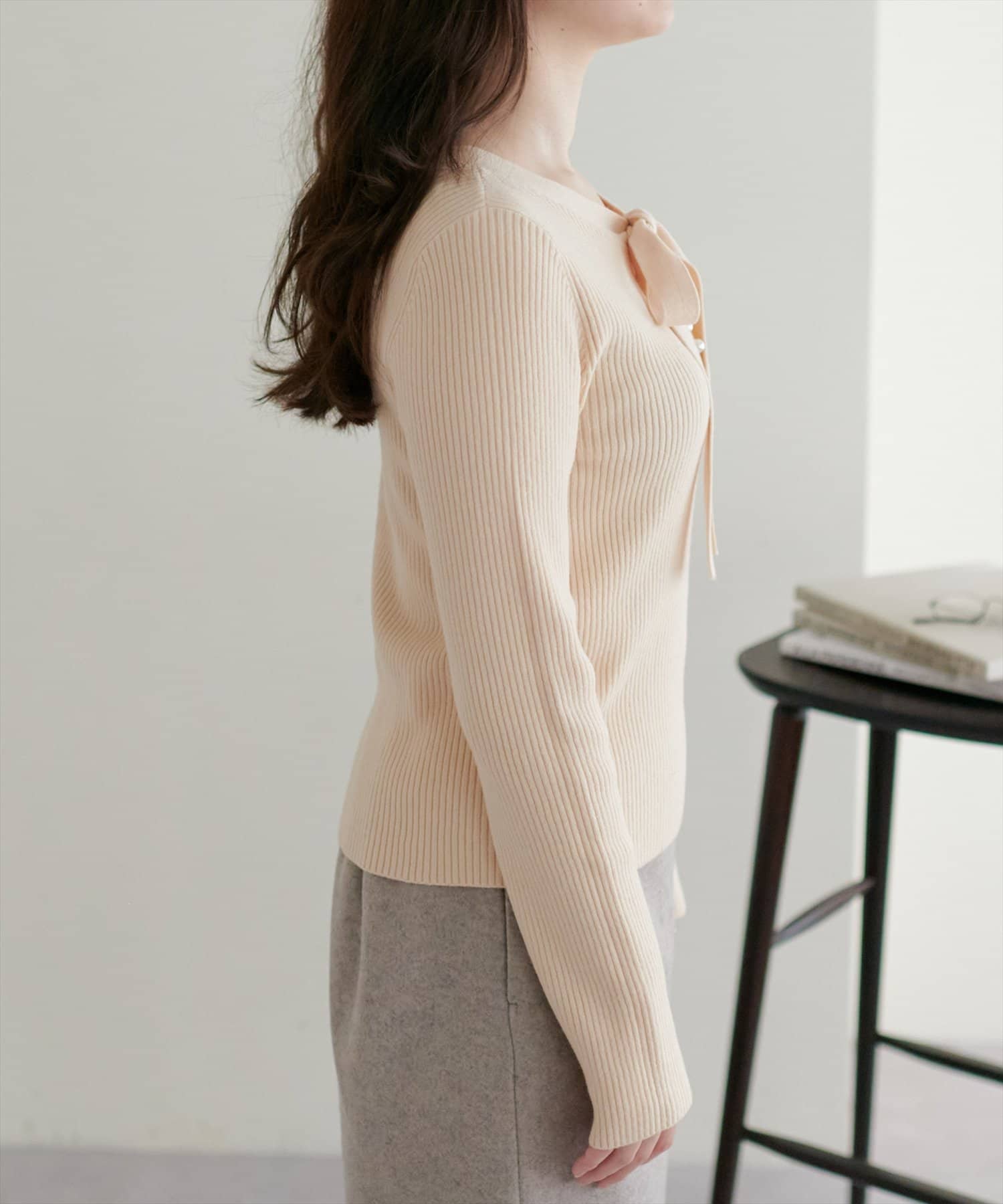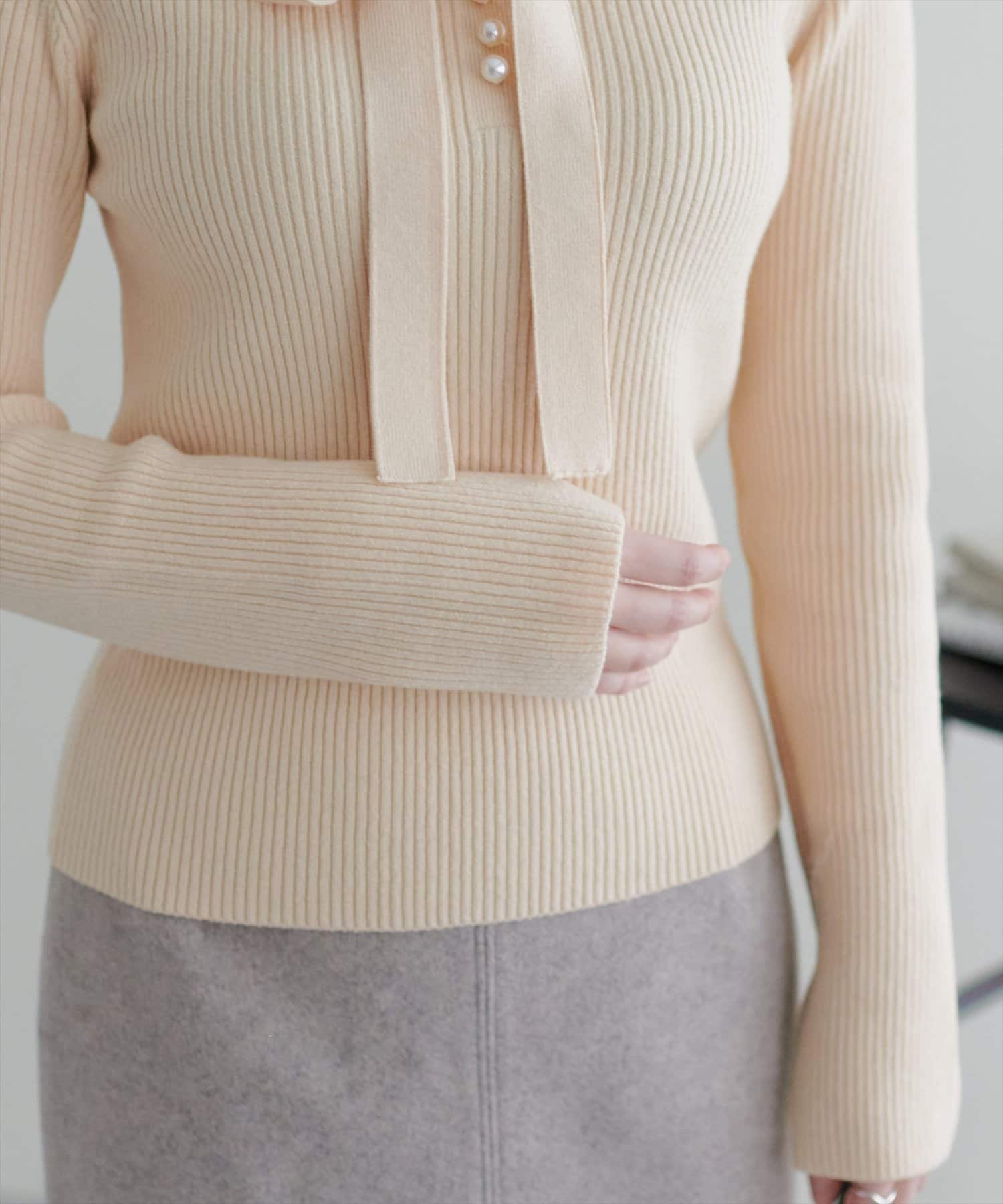ボータイを前に着てタイトスカートやレーススカートと合わせたお仕事コーデにも、