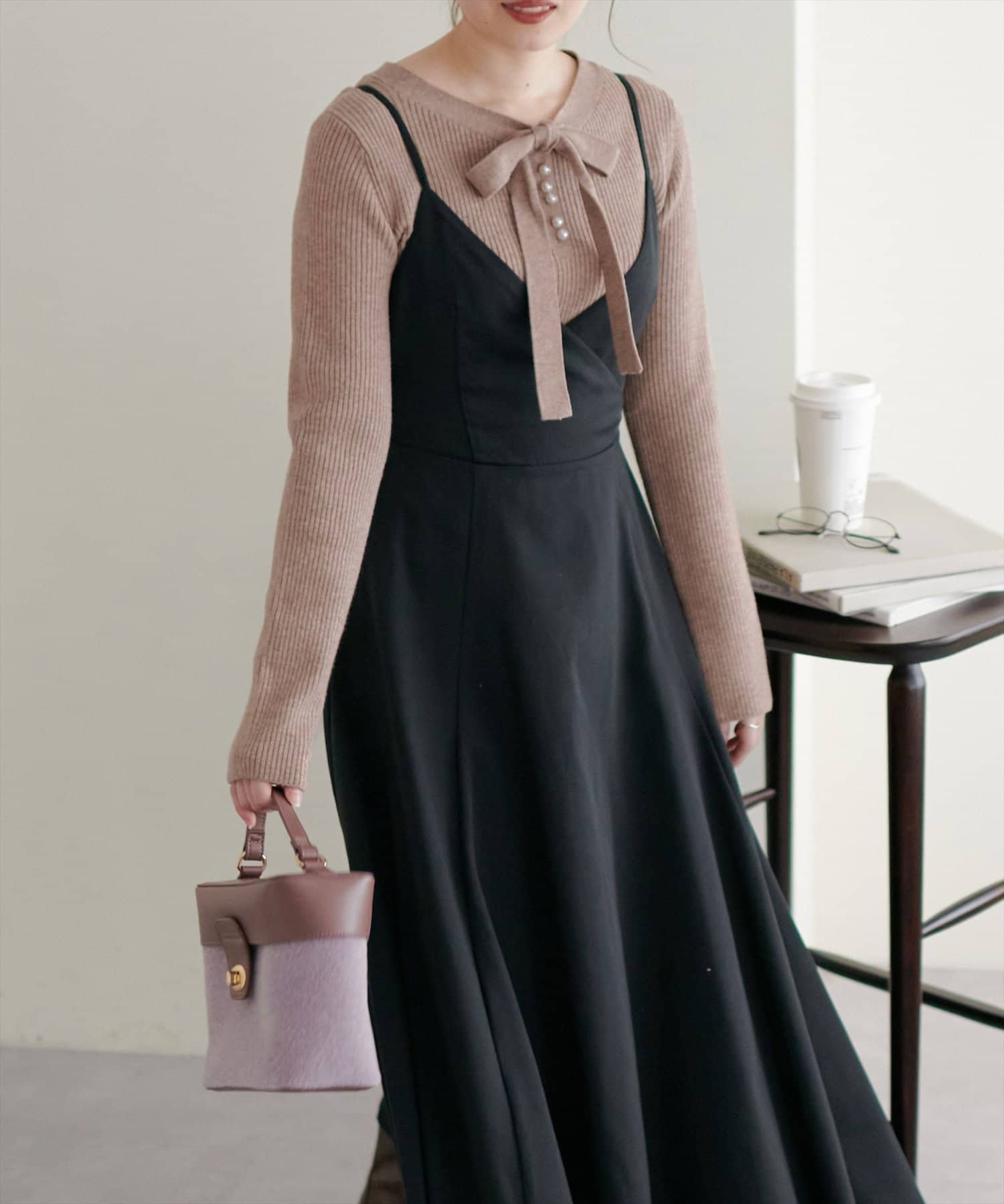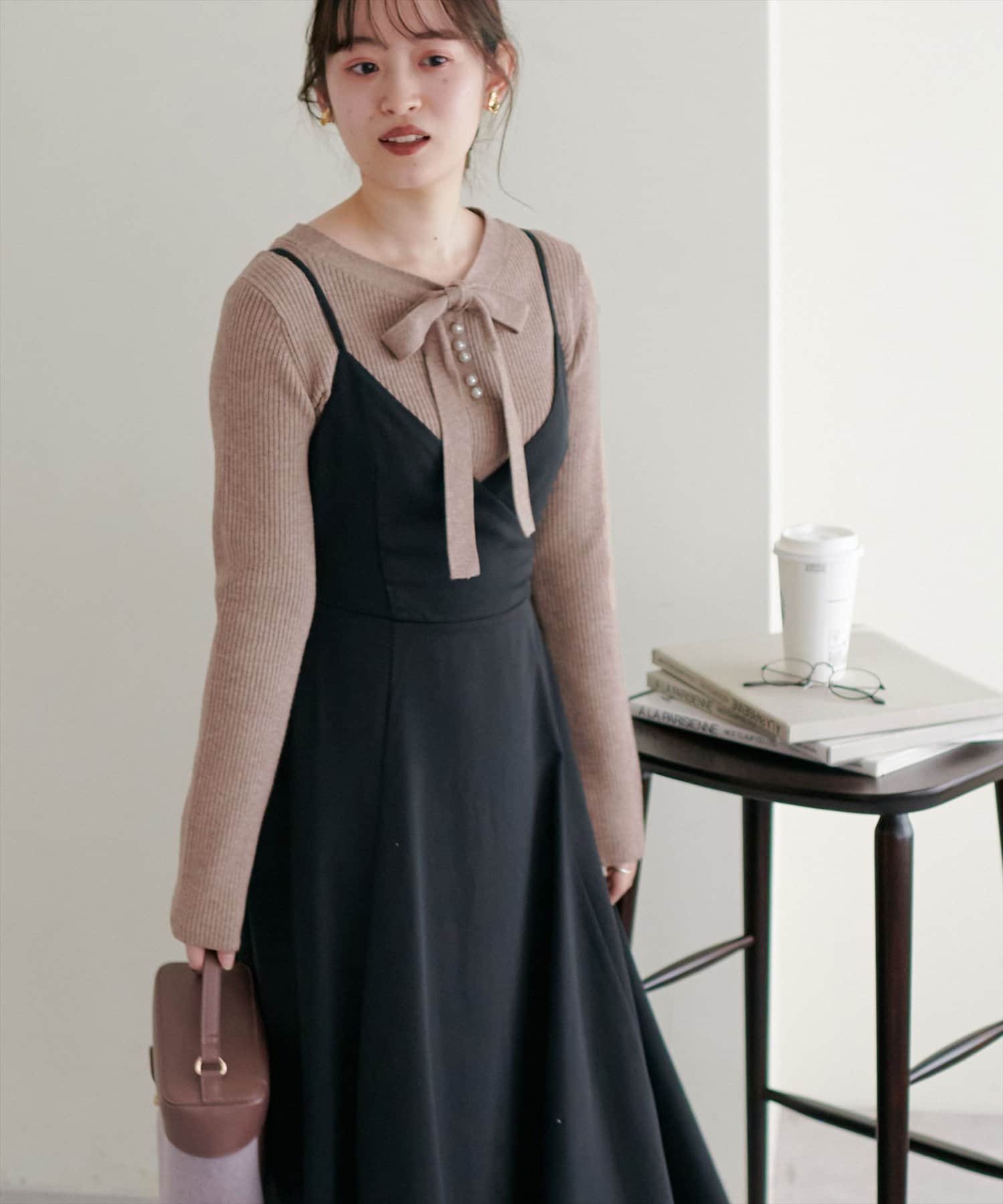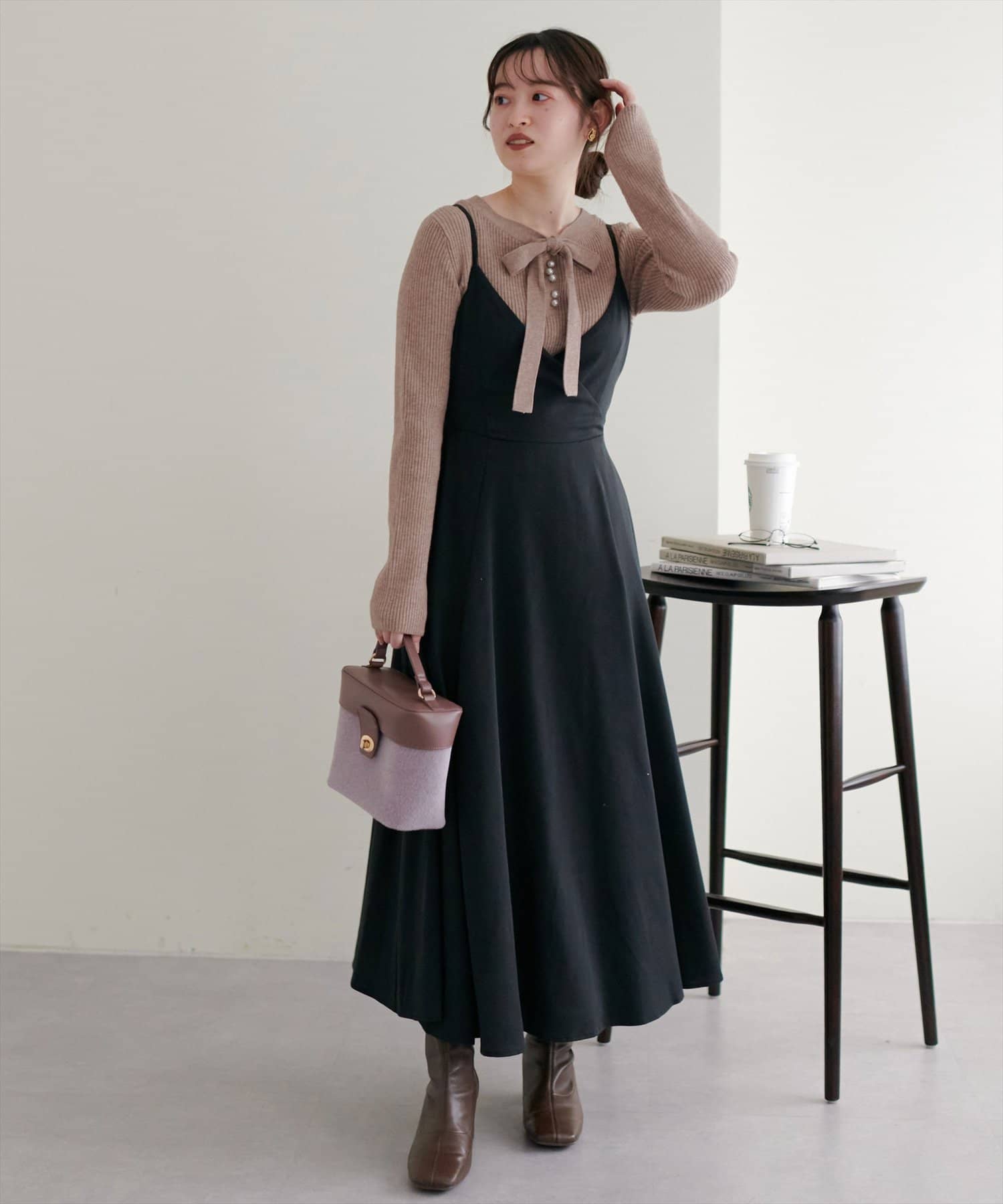 ボータイを後ろに着てキャミワンピースやロングカーディガンのインナーとしても◎
