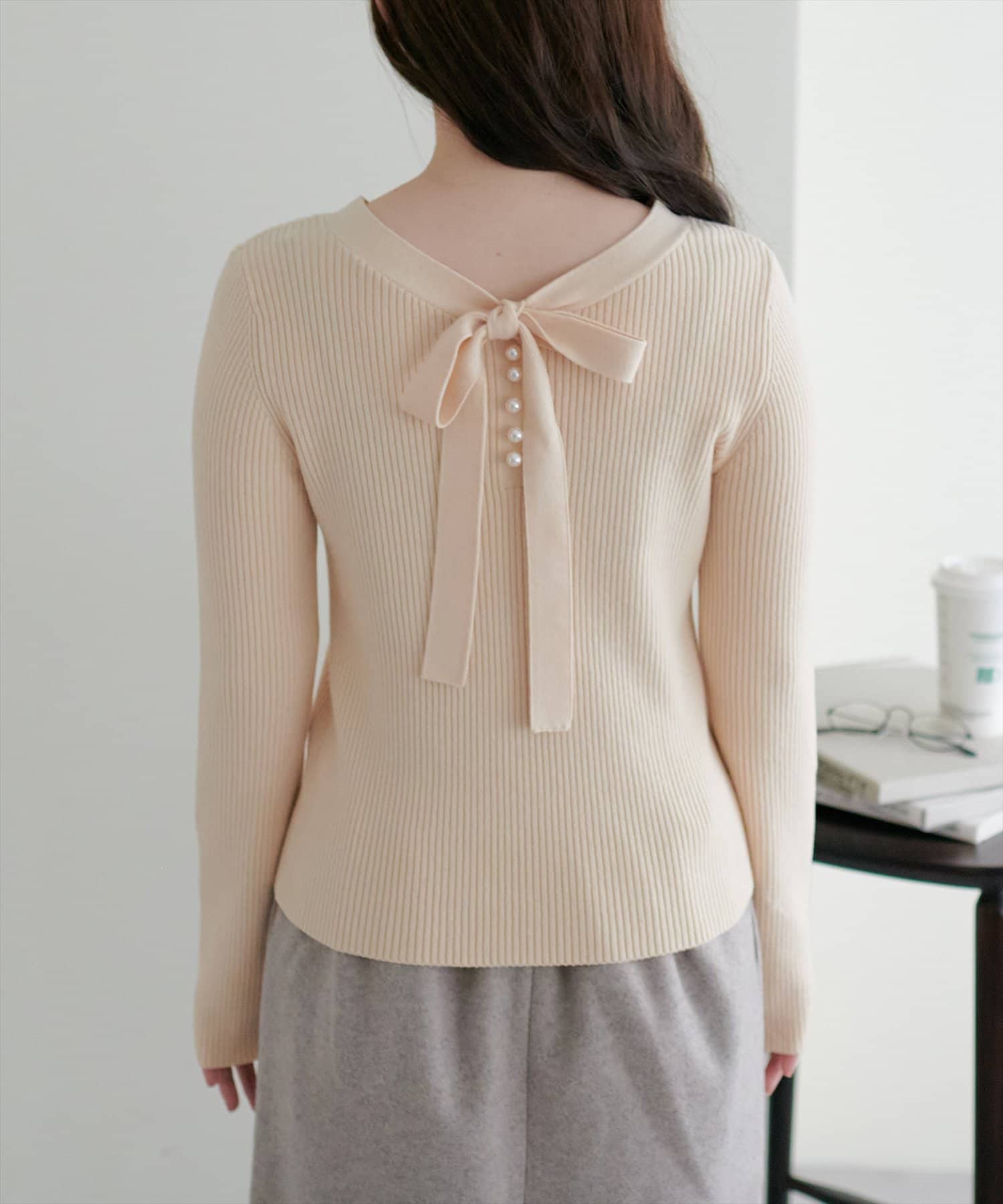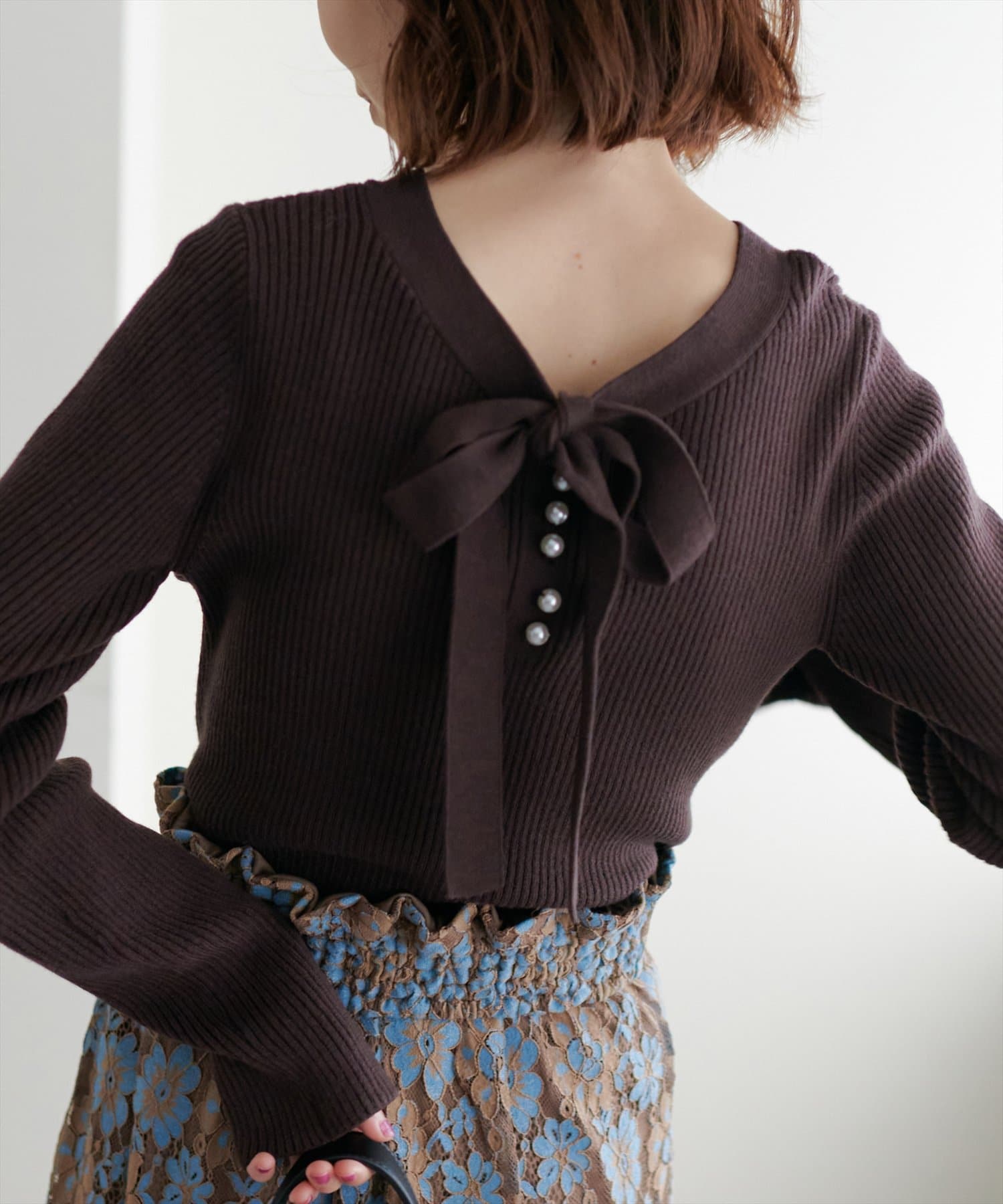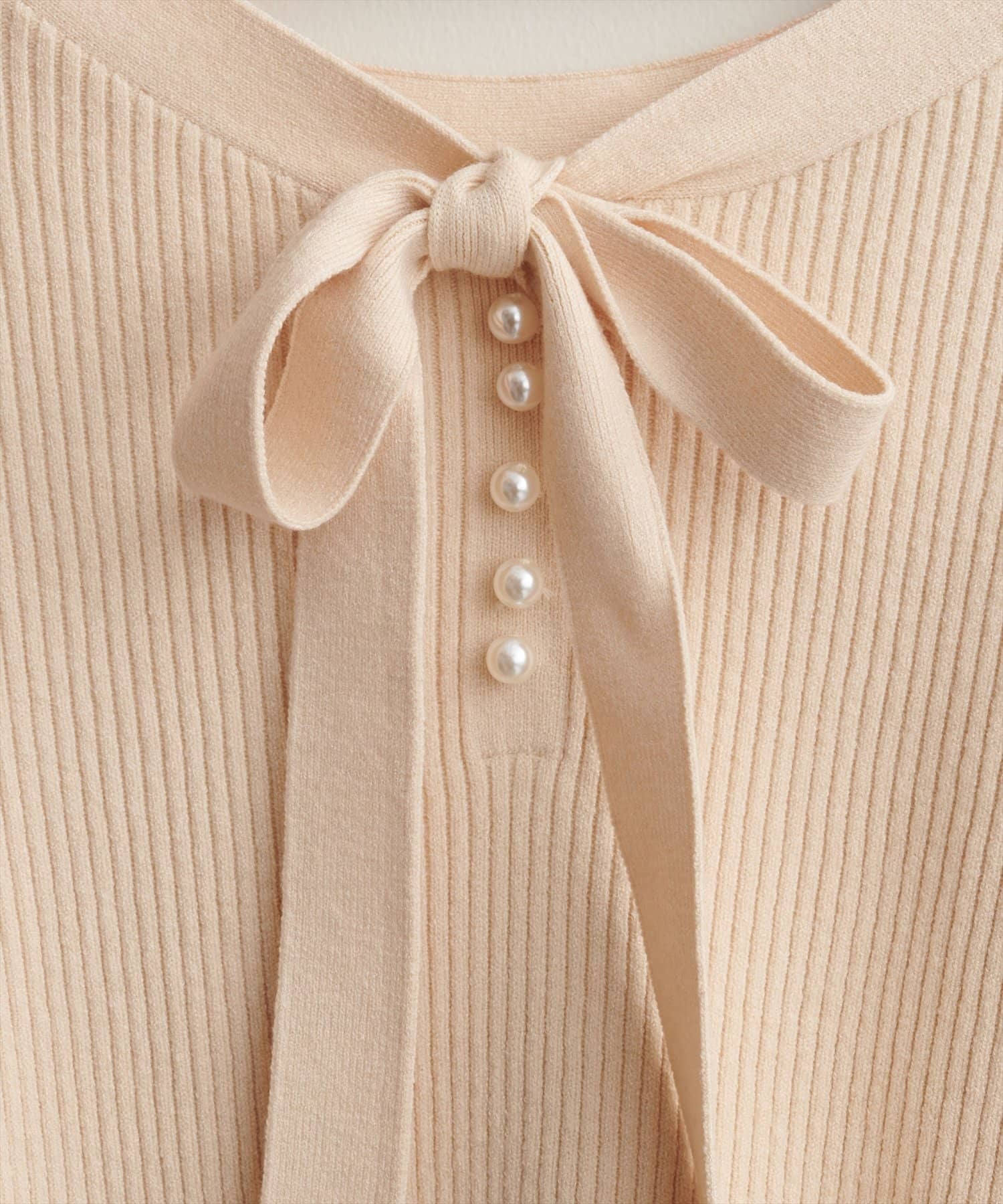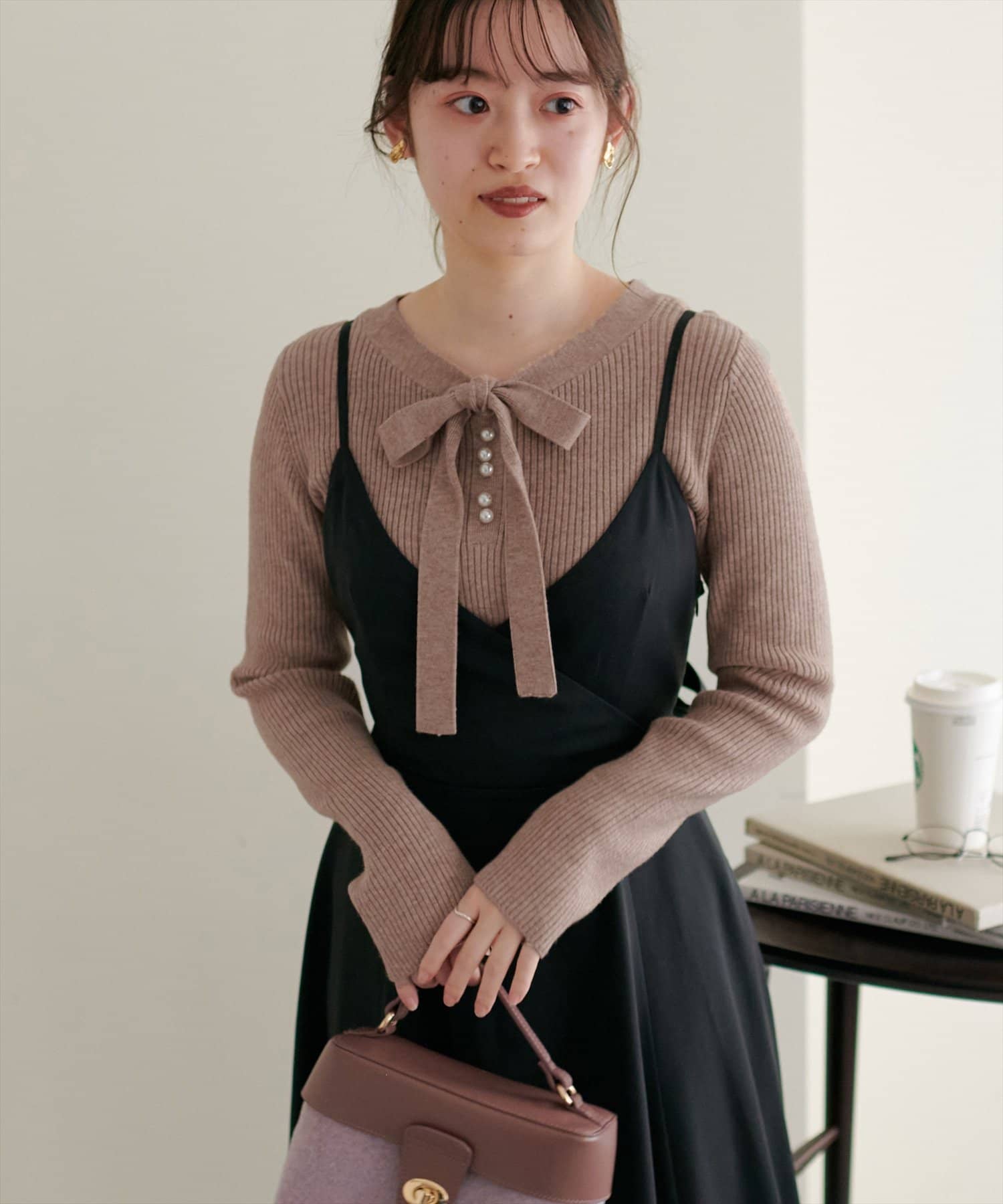 ボータイを後ろに着てキャミワンピースやロングカーディガンのインナーとしても◎
