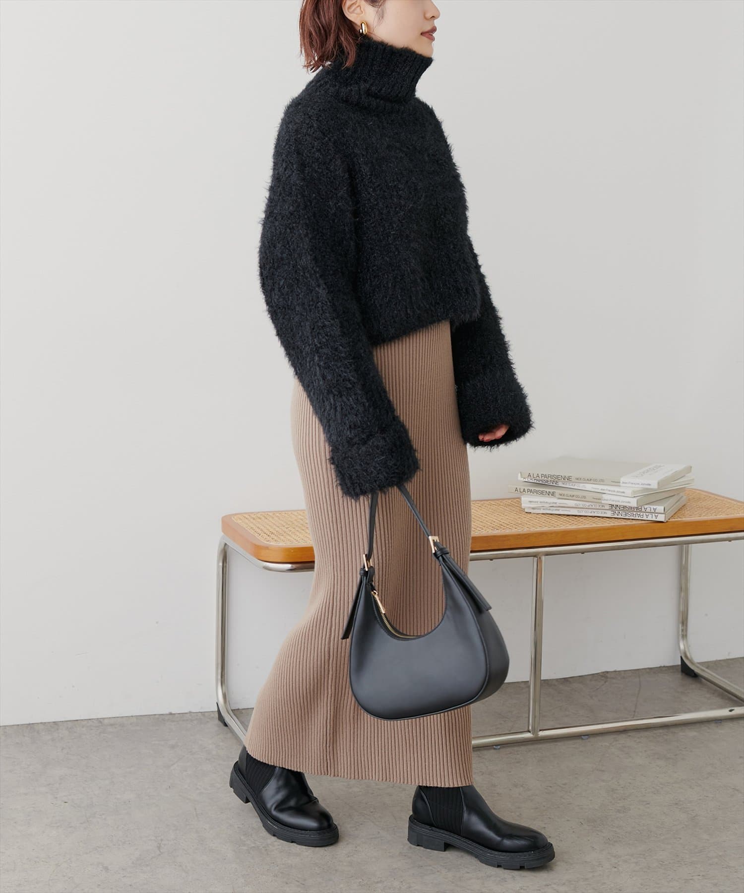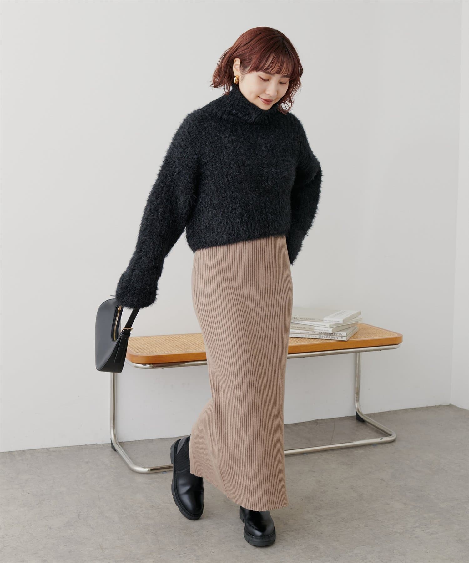 無地なのでボトムを選ばず、カジュアルなデニムパンツやもきれいめなスカートとも合わせやすく