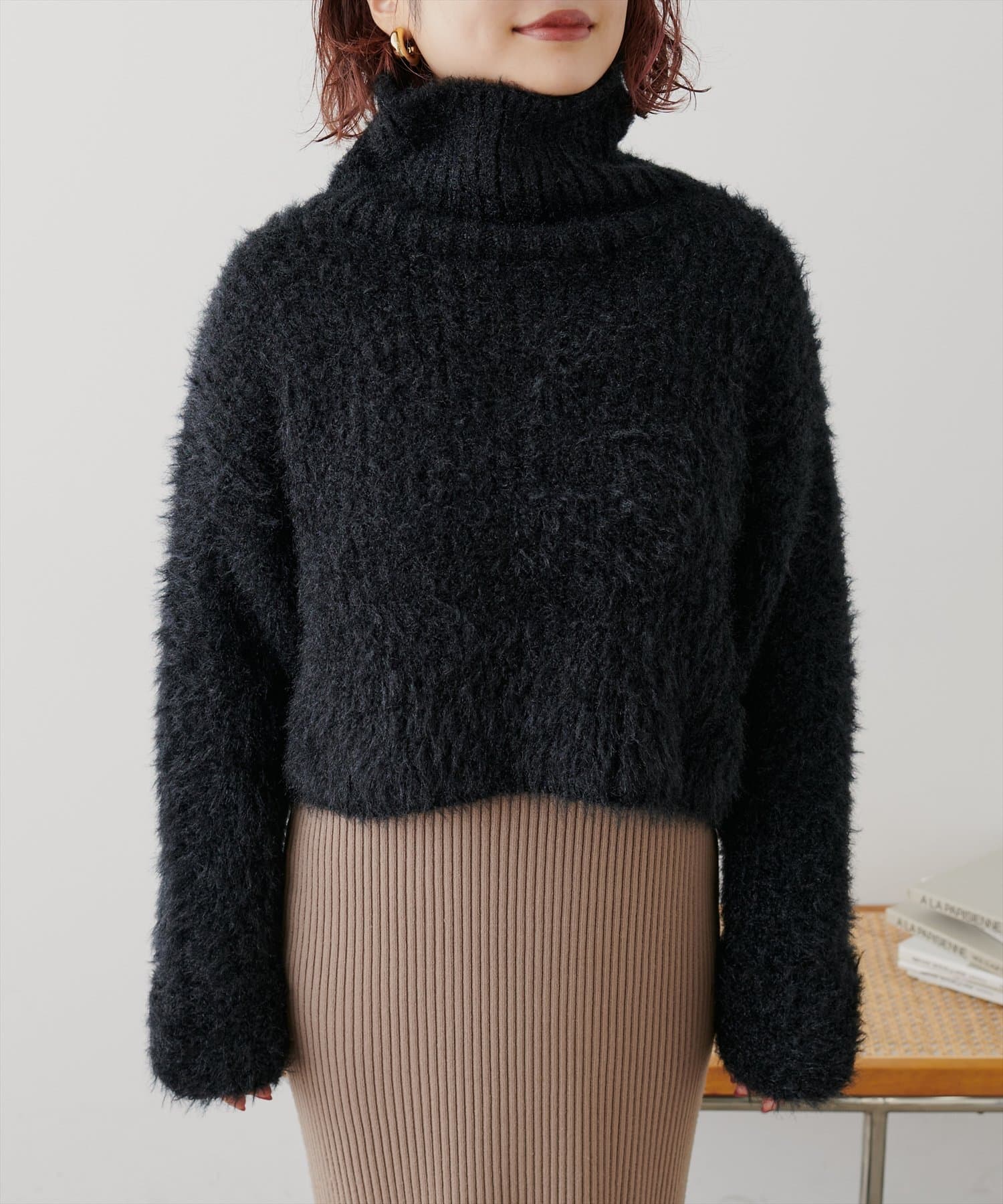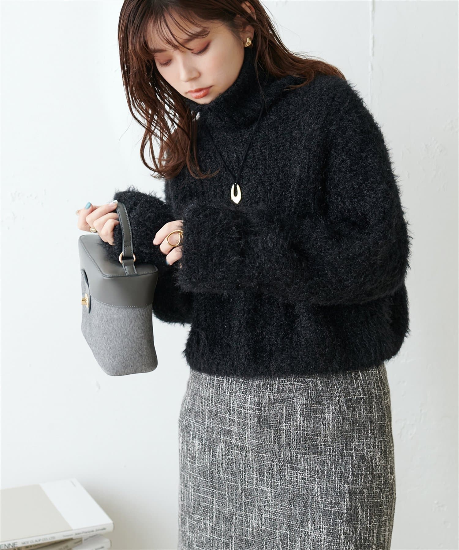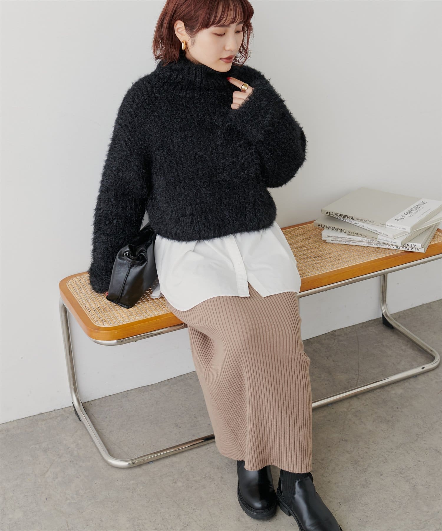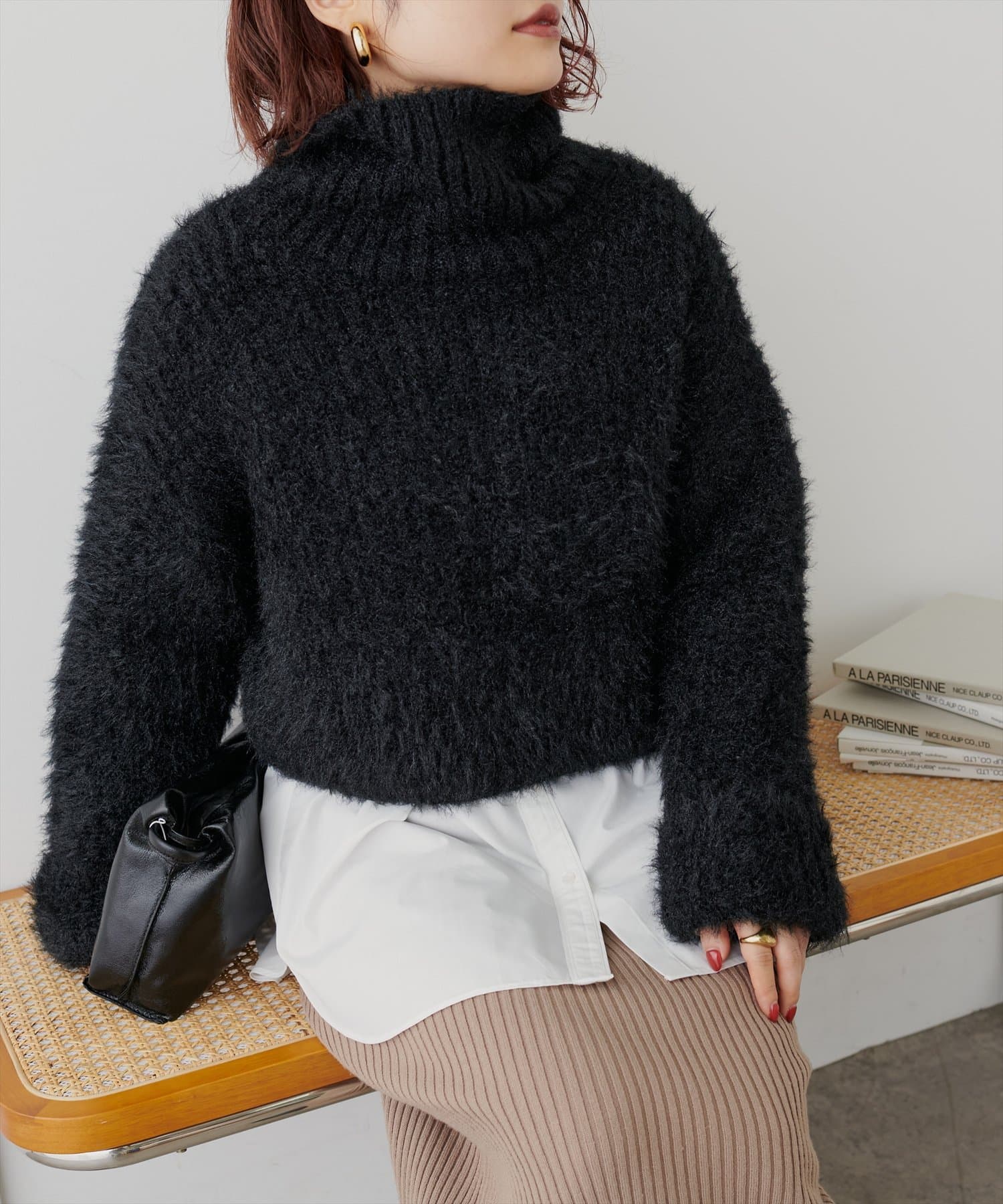 襟元と袖口のボリューム感が華奢見え効果のある一枚