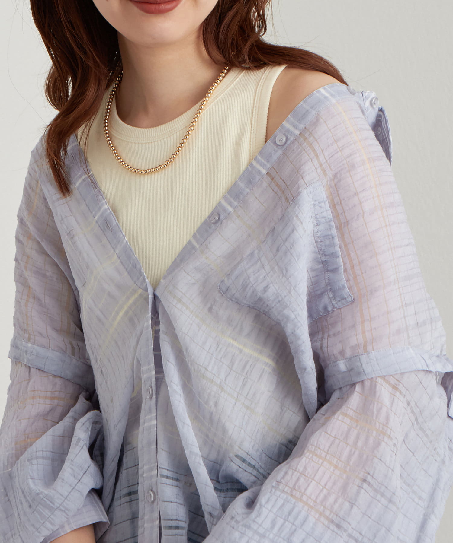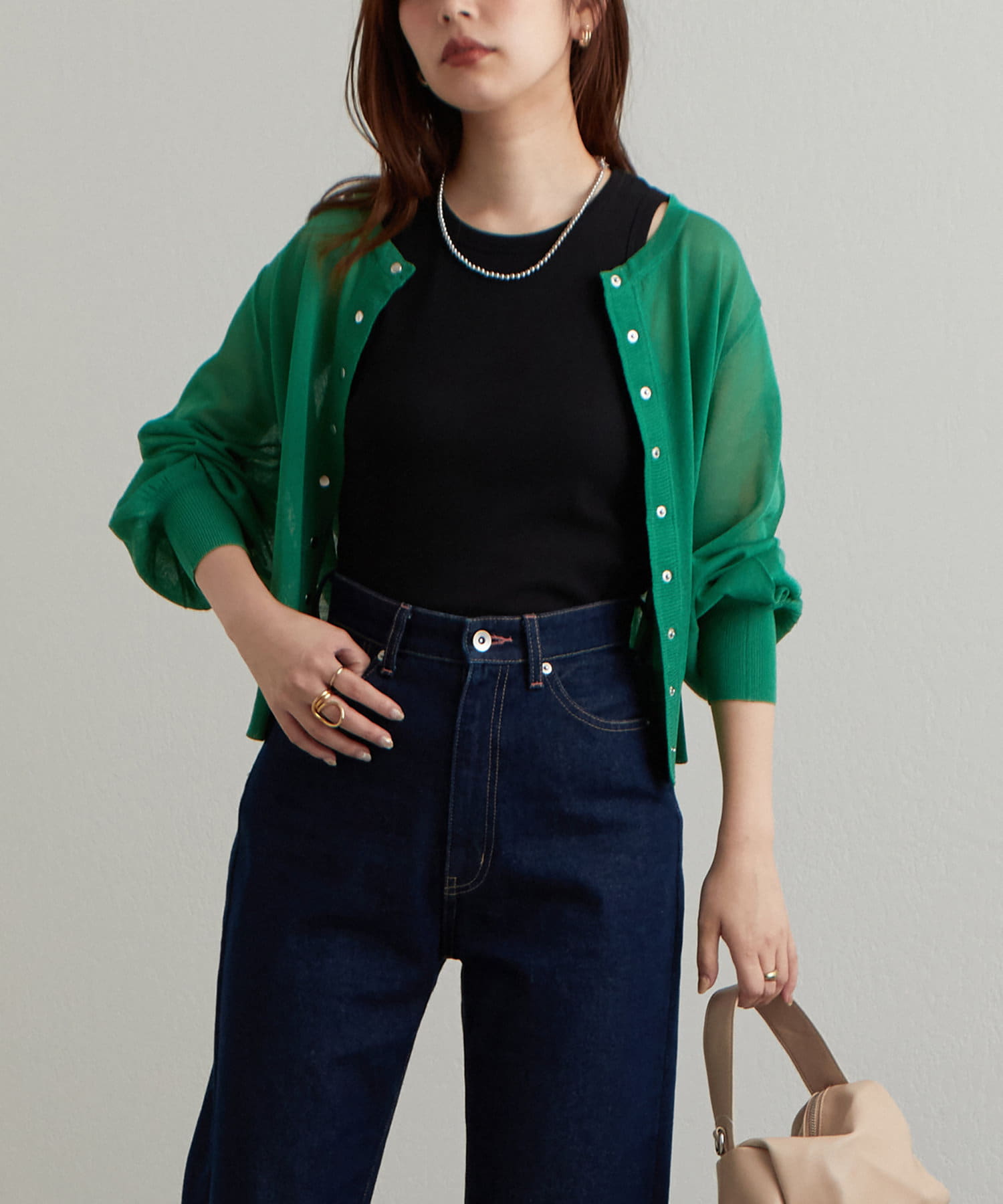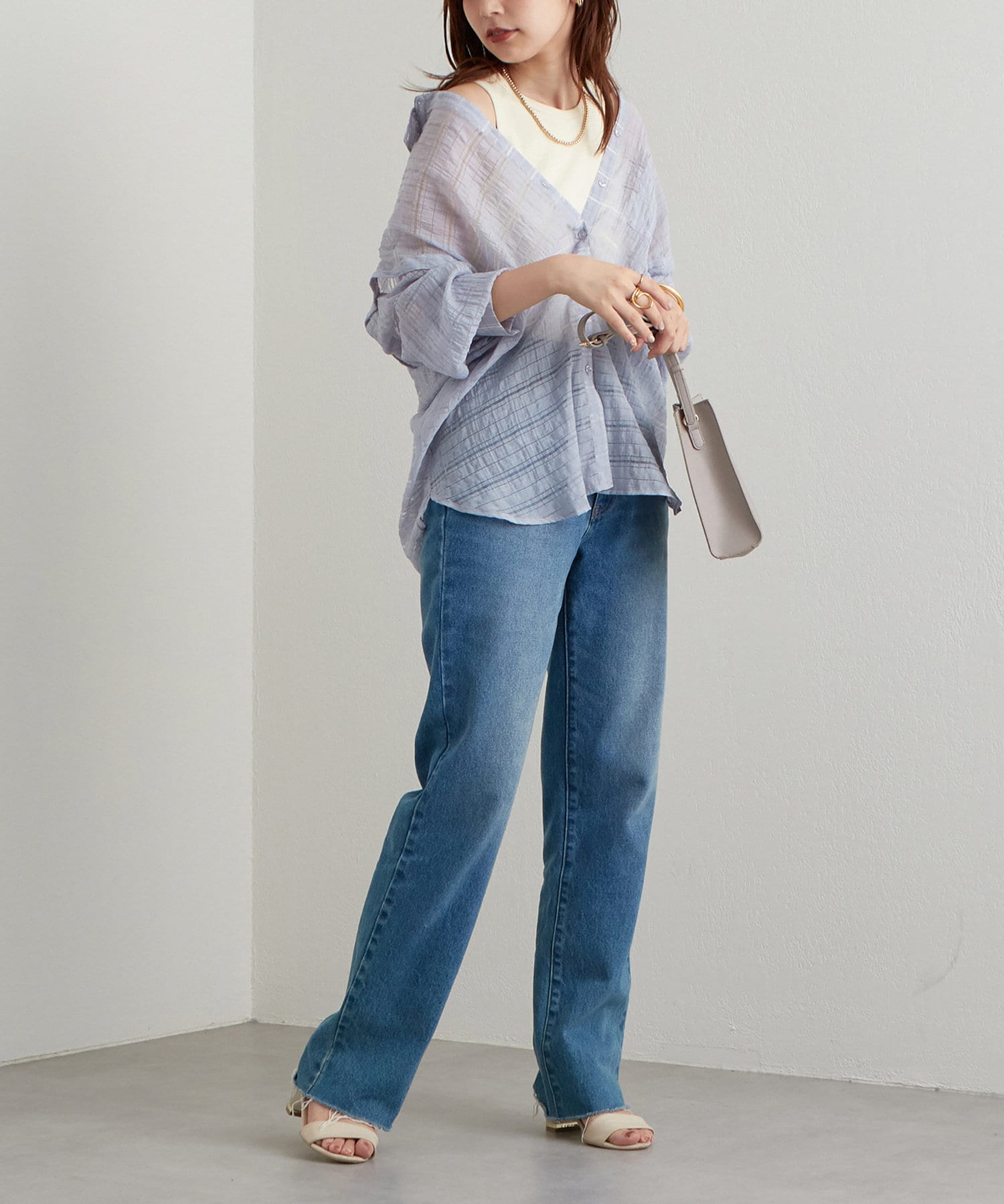 シアーシャツやカーディガンをさっと羽織って、デニムを合わせれば旬のカジュアルコーデに仕上がり、