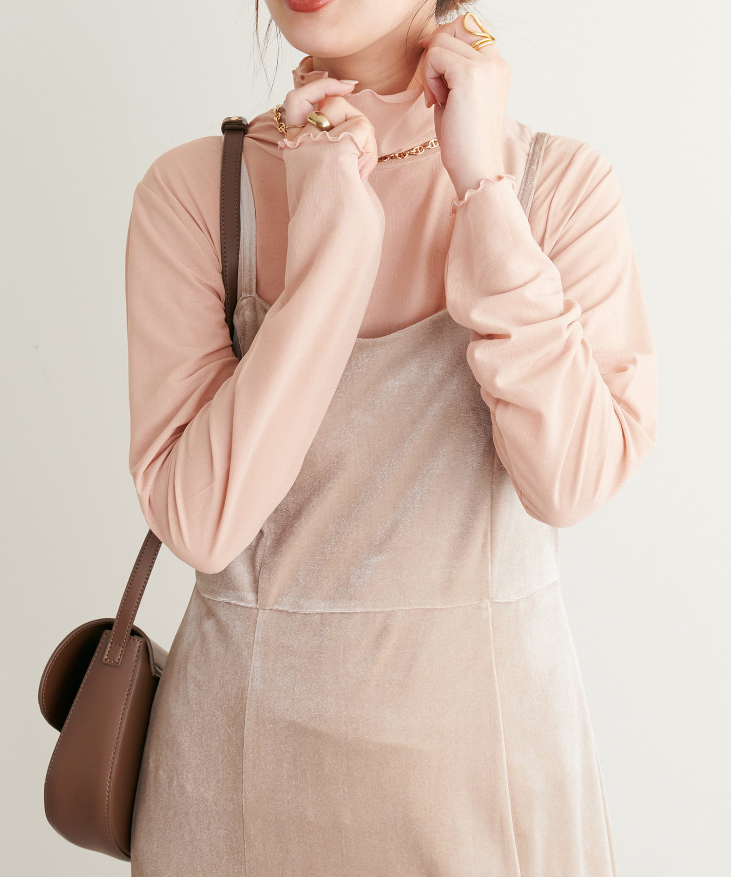 秋口からは、ニットやカーディガンのインナー使いにおすすめ◎