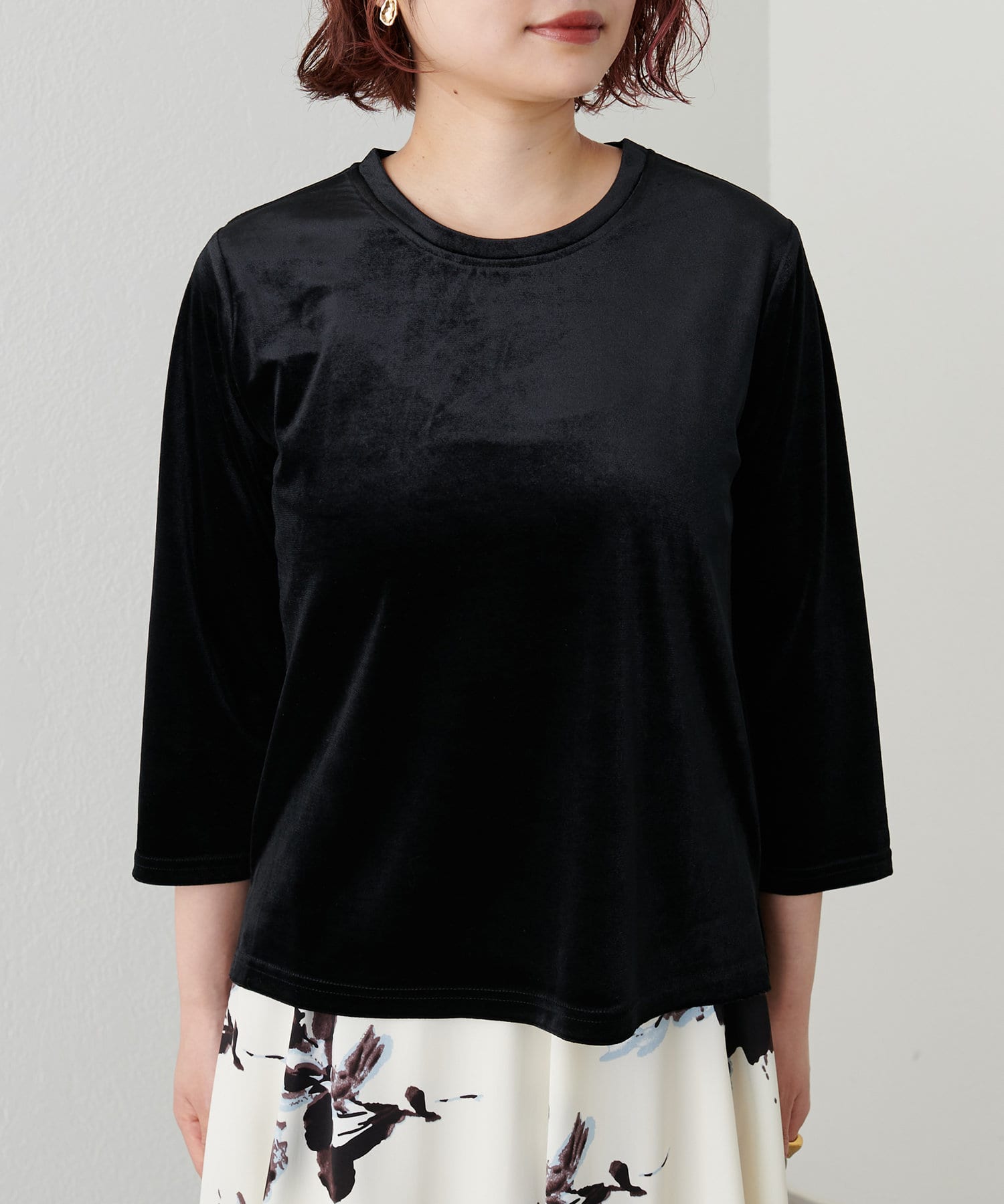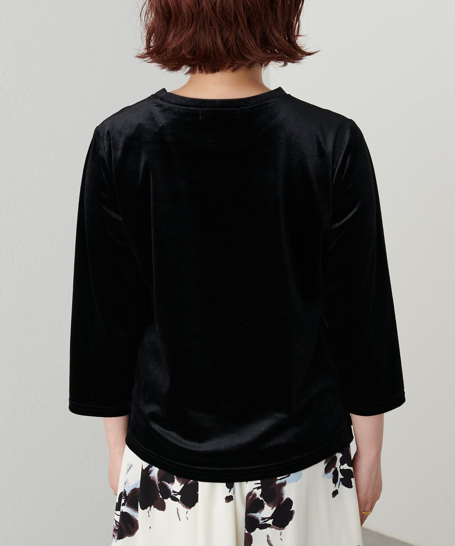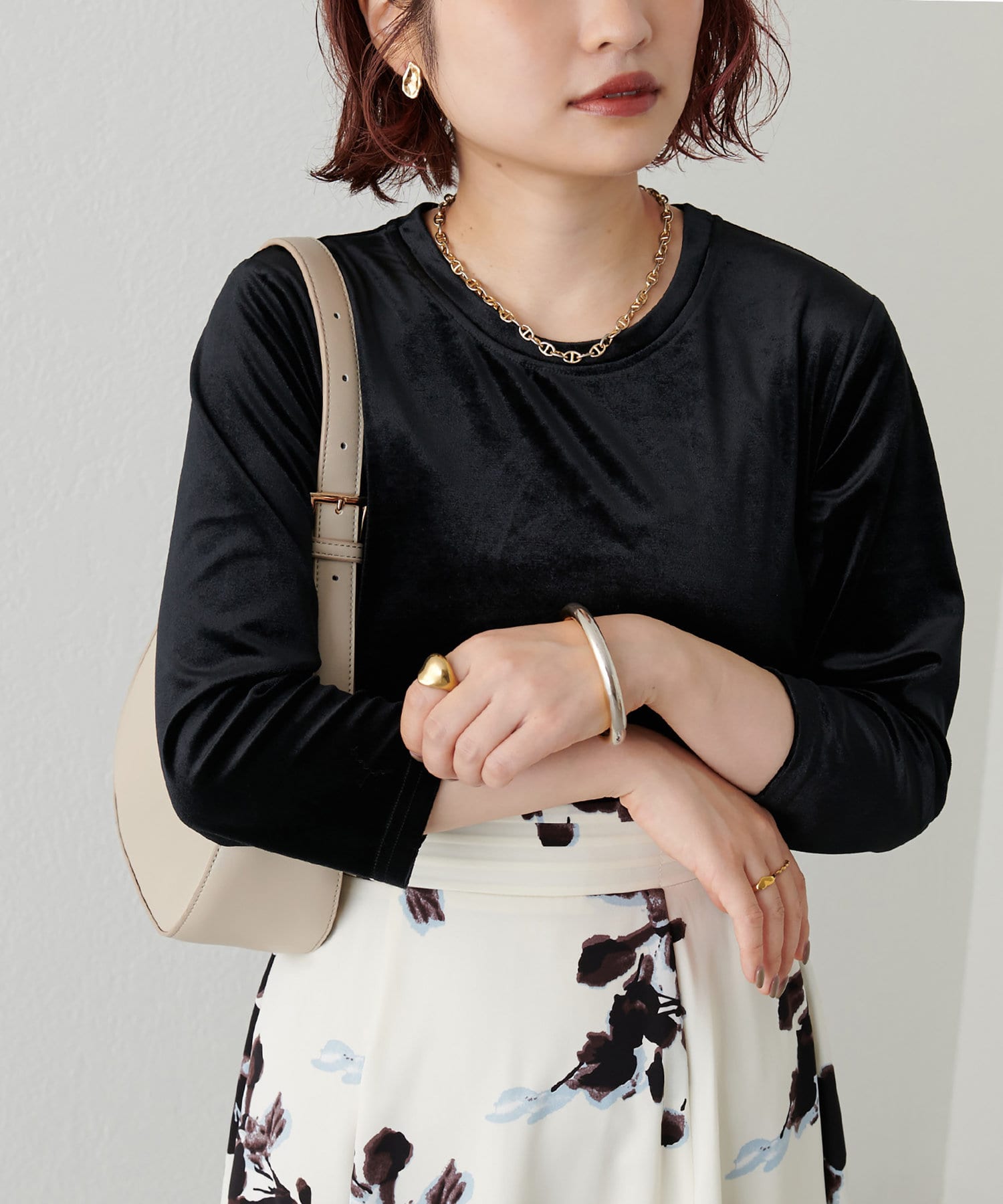 シーズンムードな雰囲気漂うストレッチベロアトップス