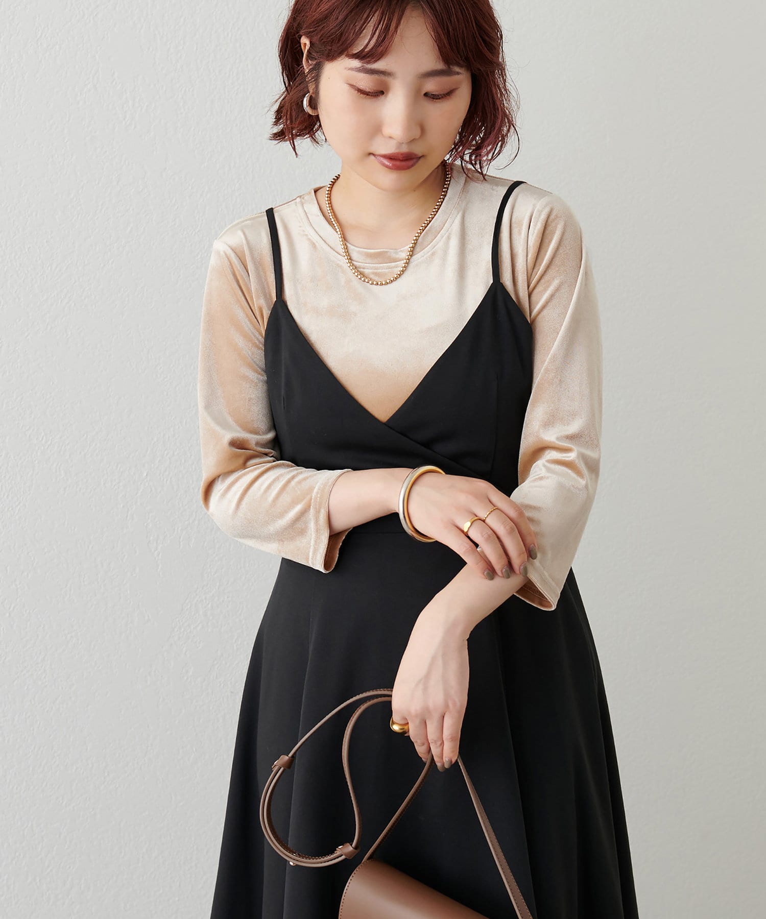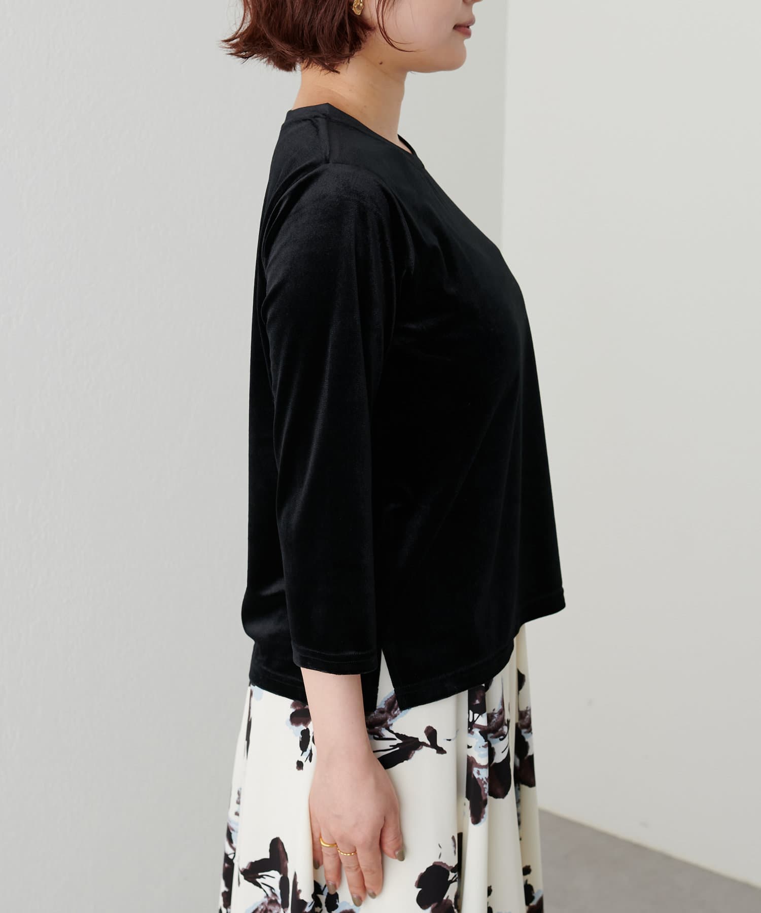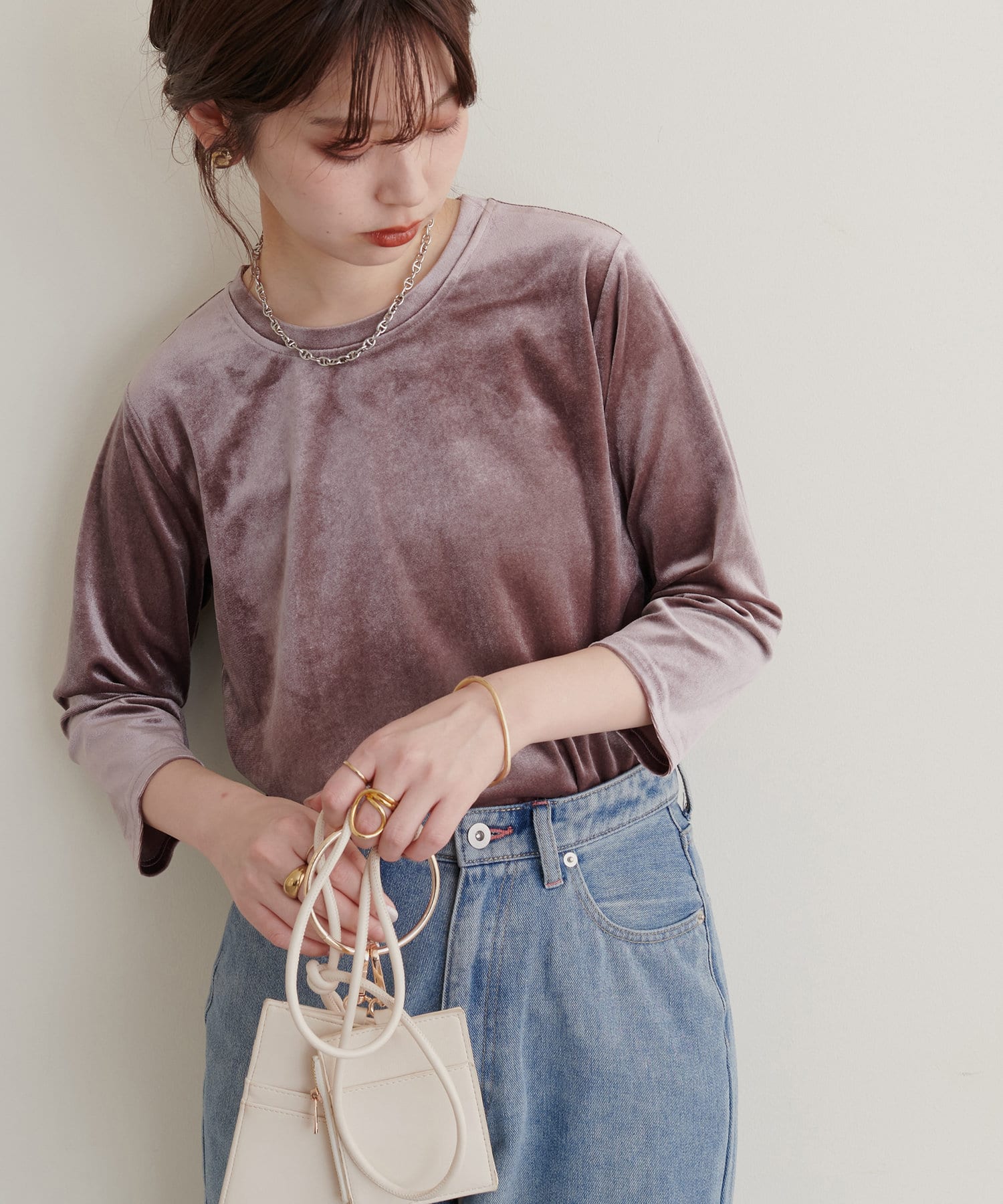 シーズンムードな雰囲気漂うストレッチベロアトップス