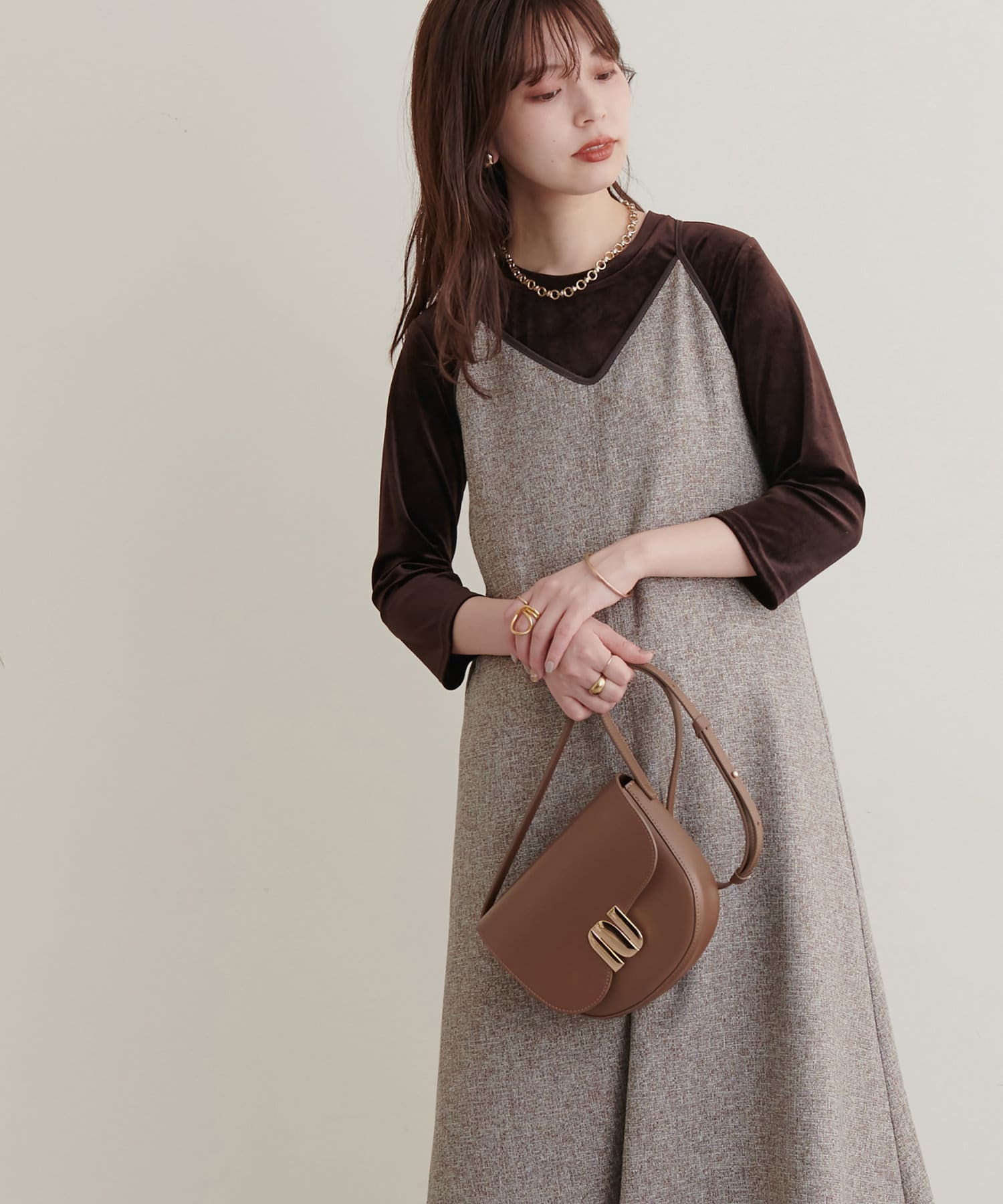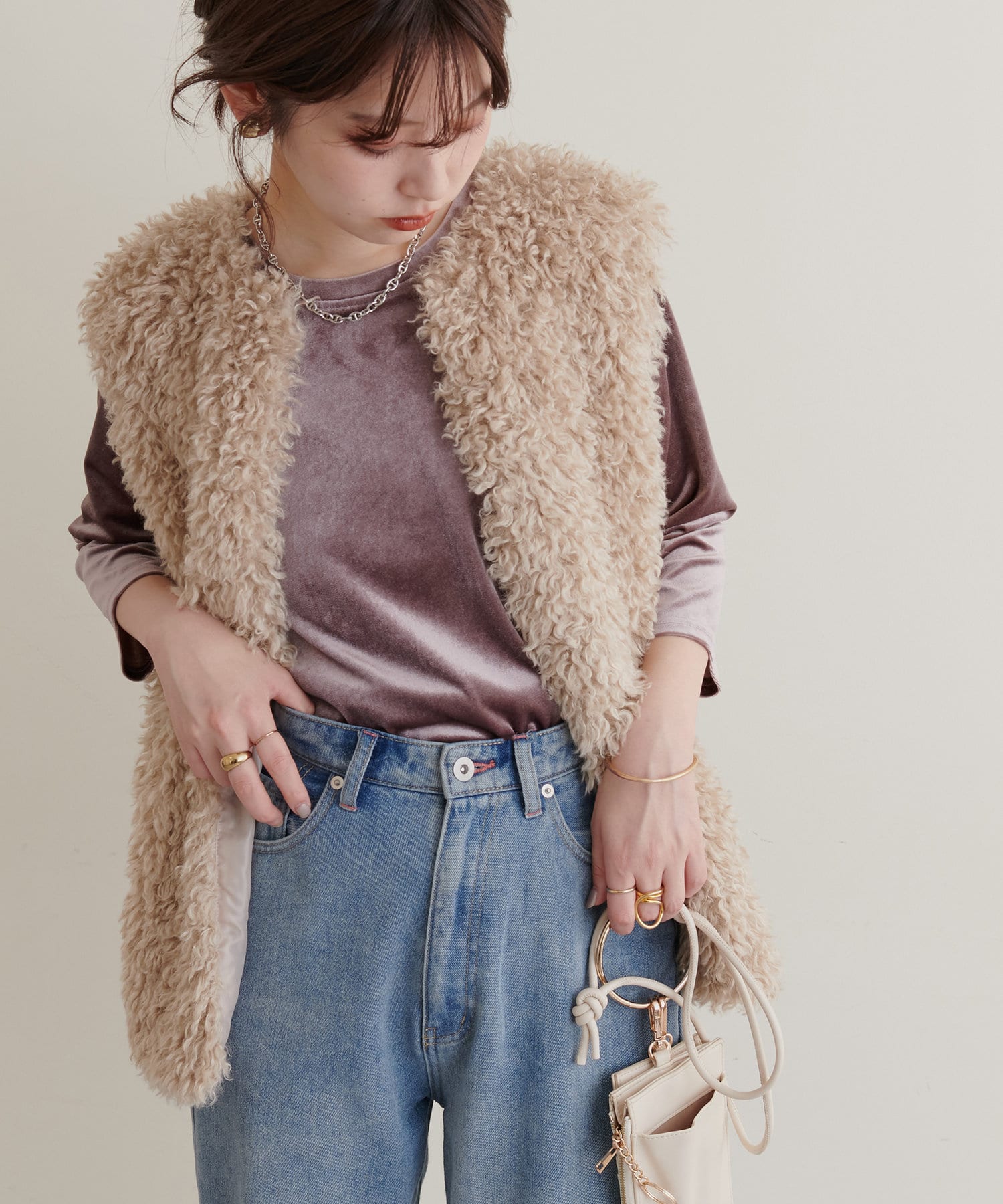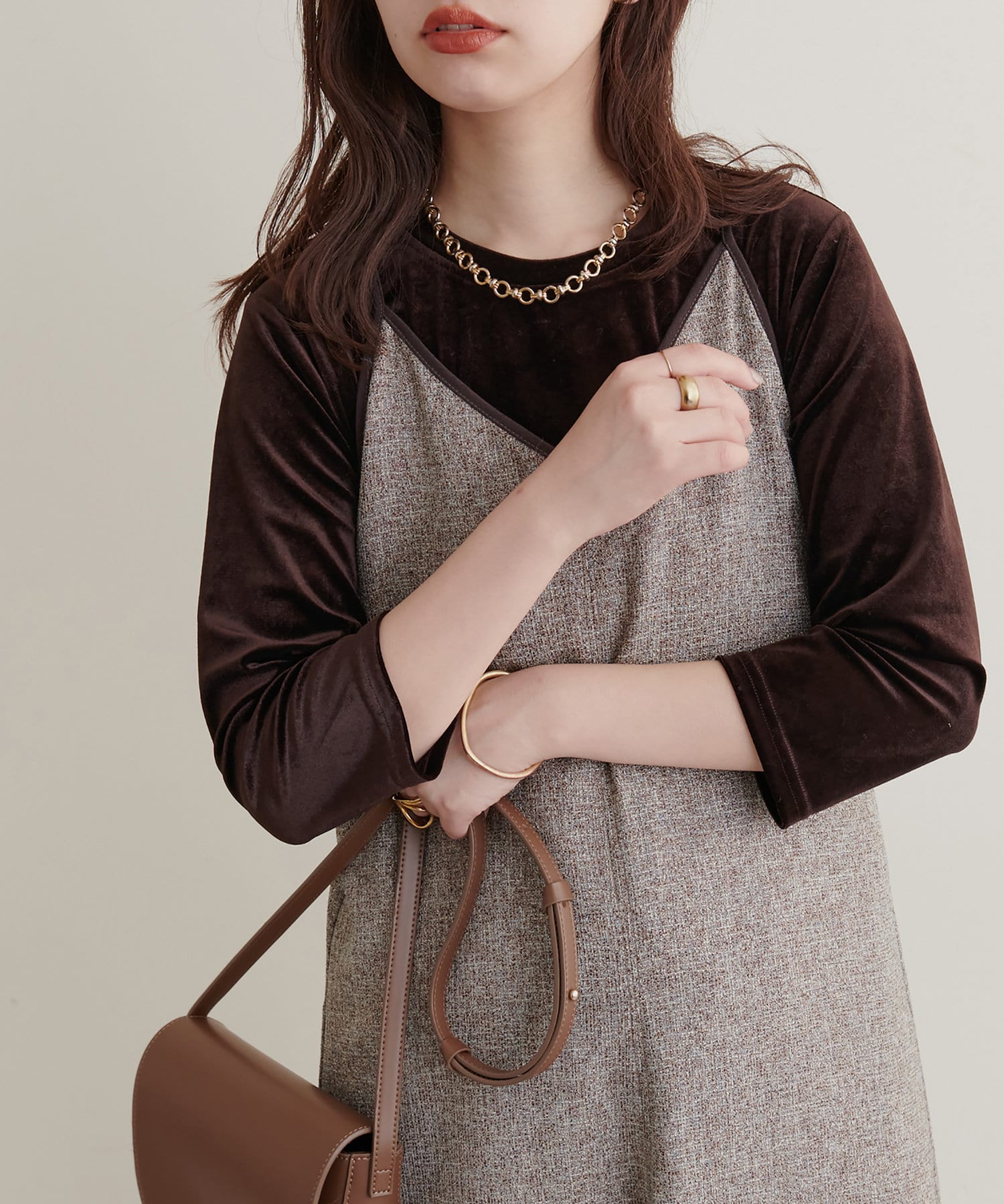 ベロアの生地感を活かしてデニムなどのシンプルなボトムに合わせても、シーズンムードな着こなしに仕上がります。