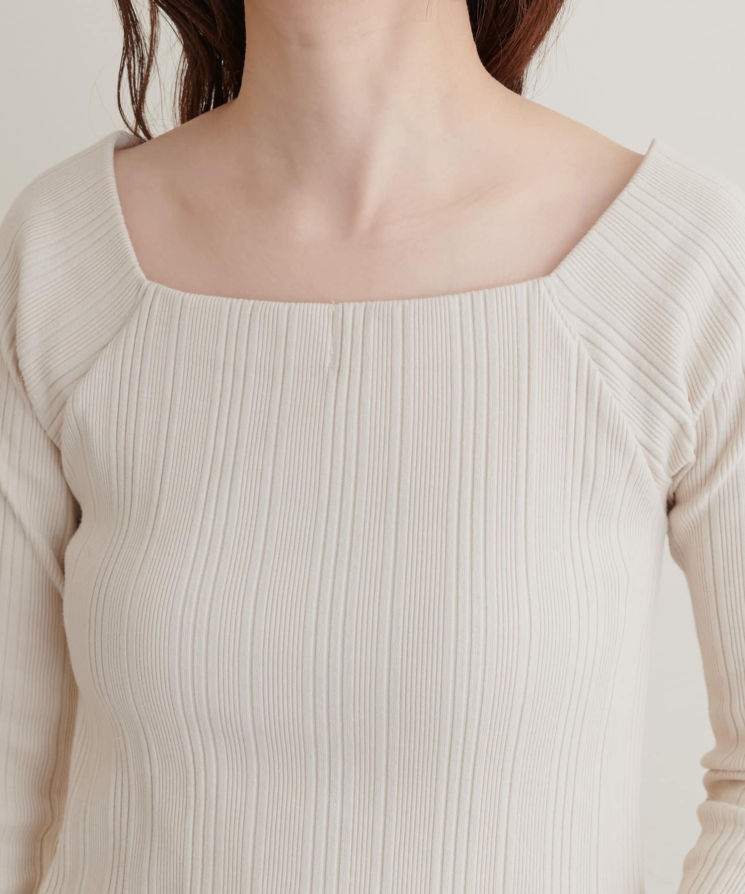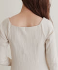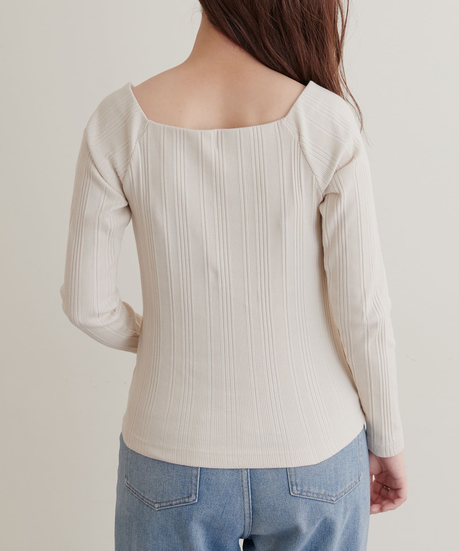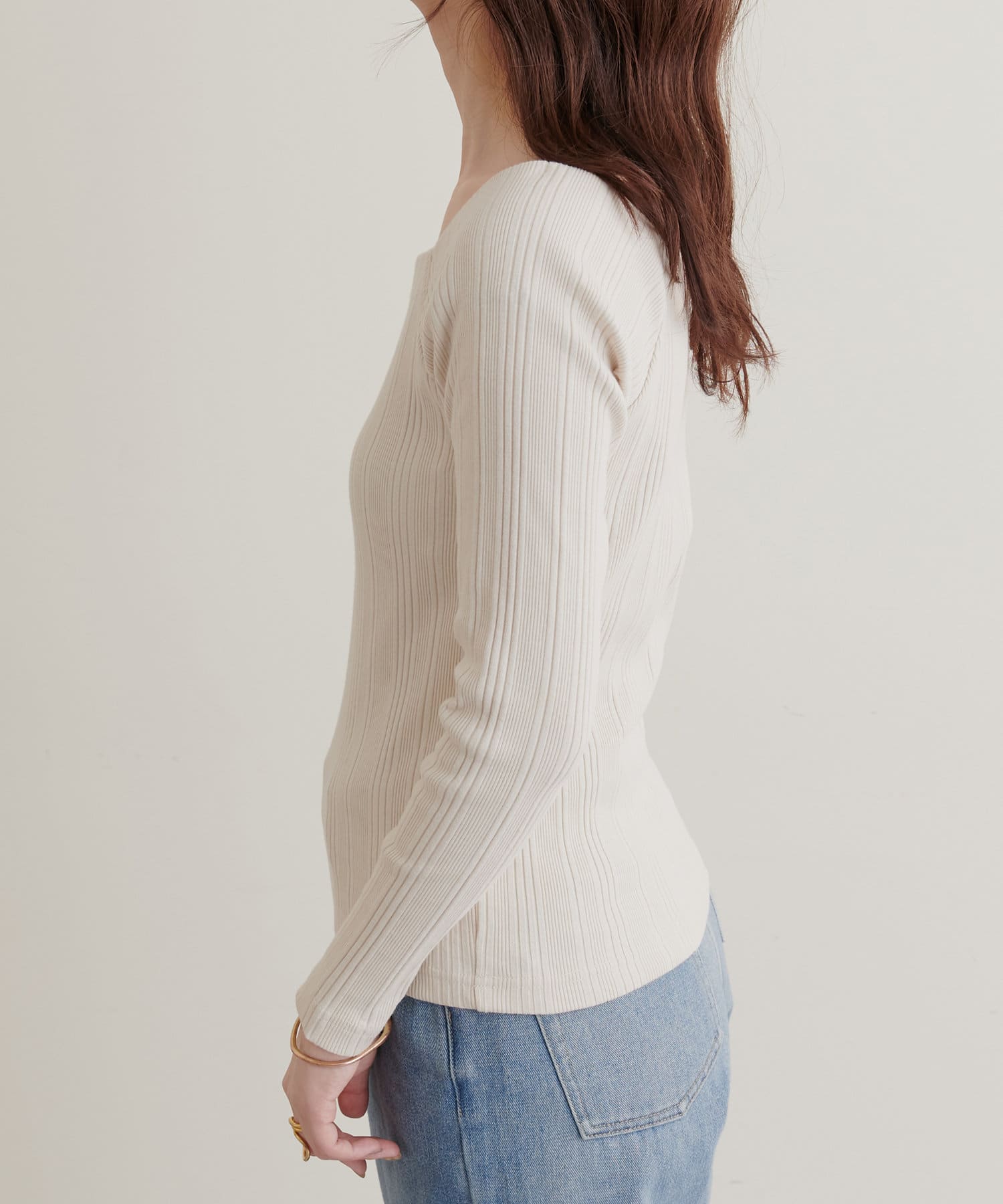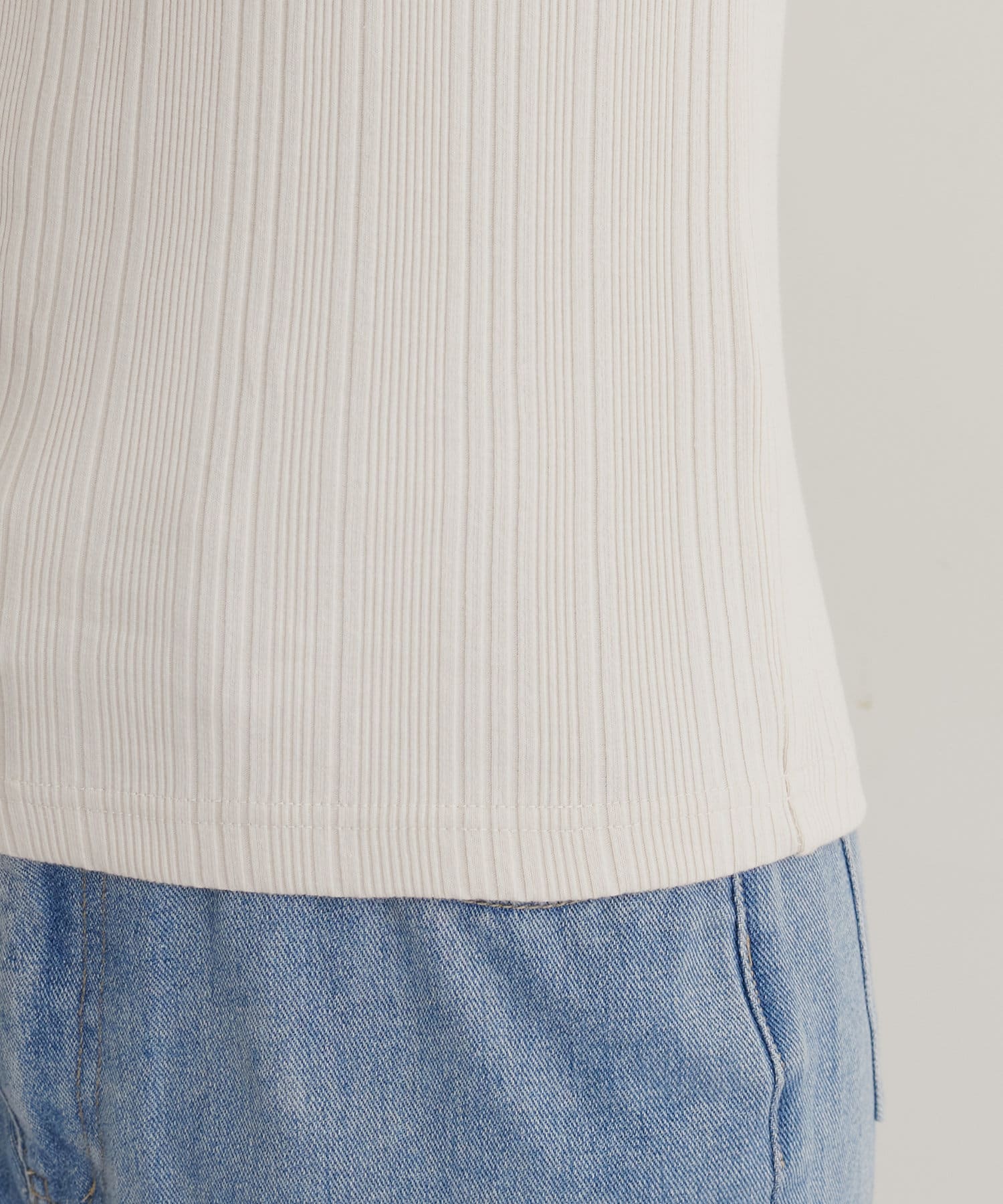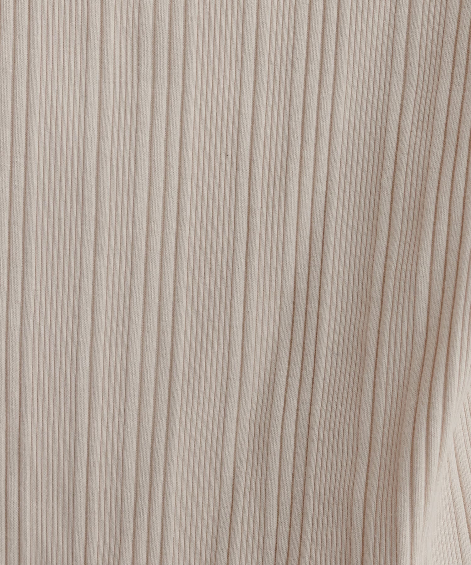 縦に凸凹の筋が入ったストライプ模様のリブカットソー。