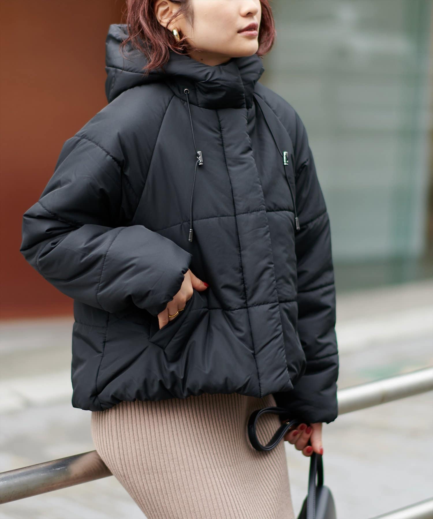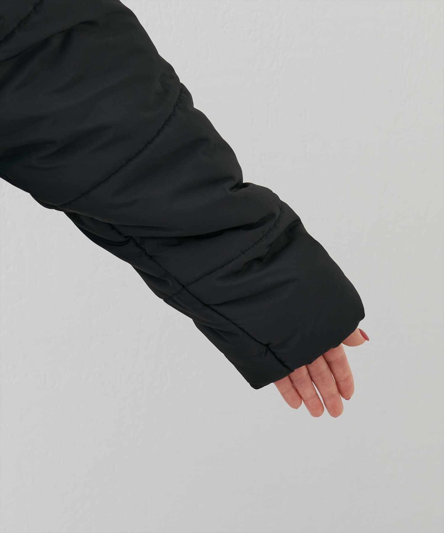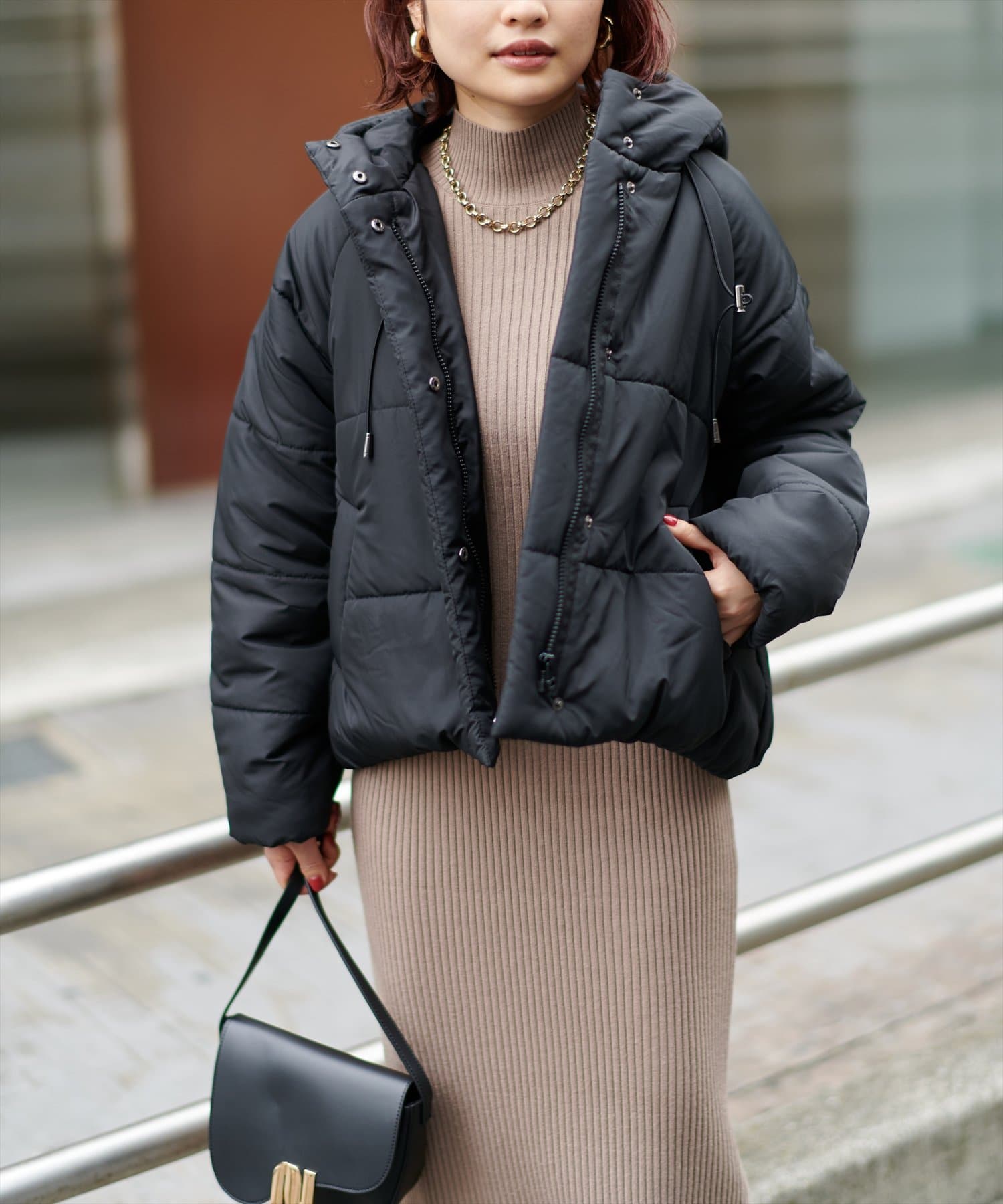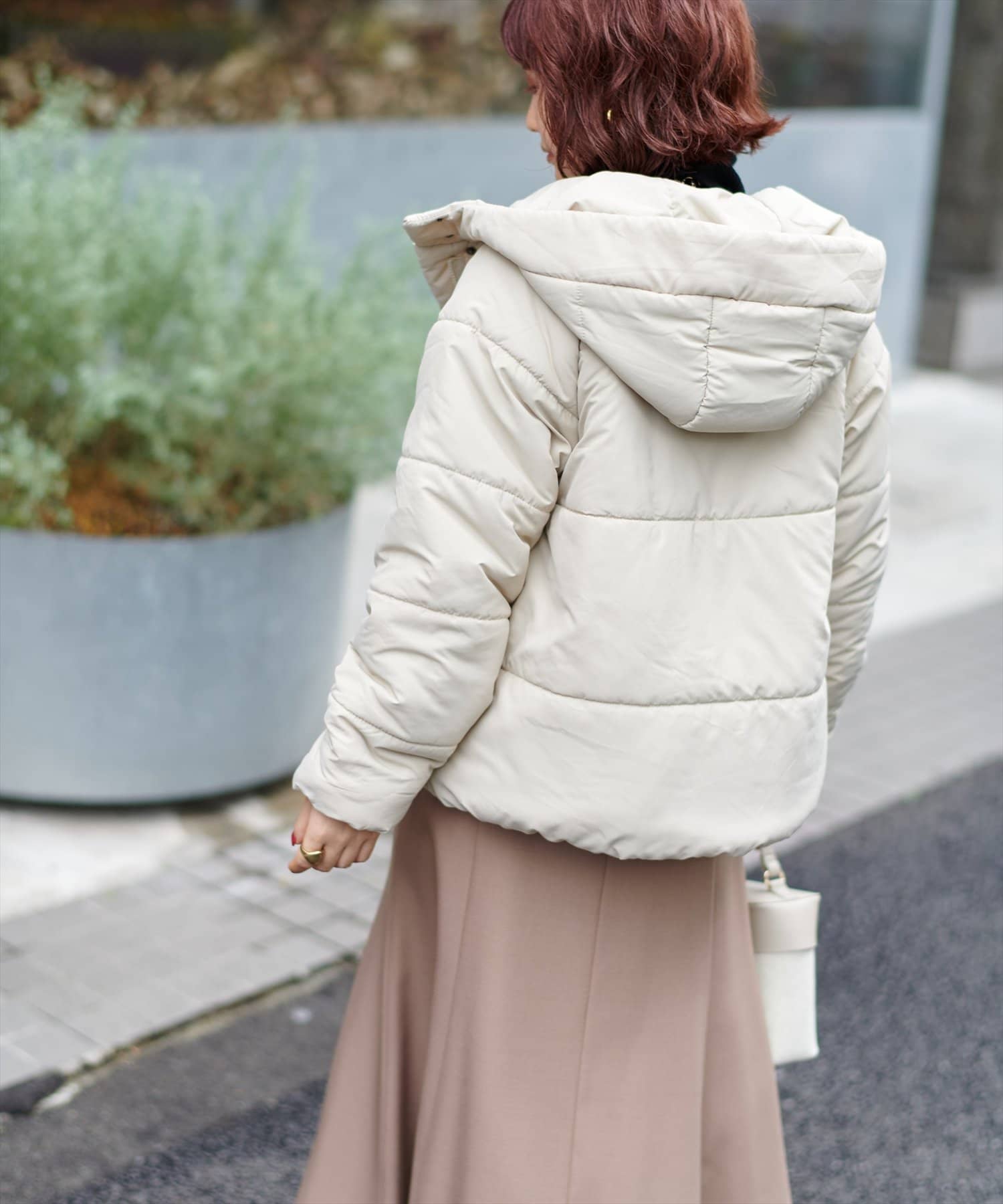 比較的ストレートな袖のシルエットなので、着太りしがちな中綿ダウンですがスッキリ着られます。
