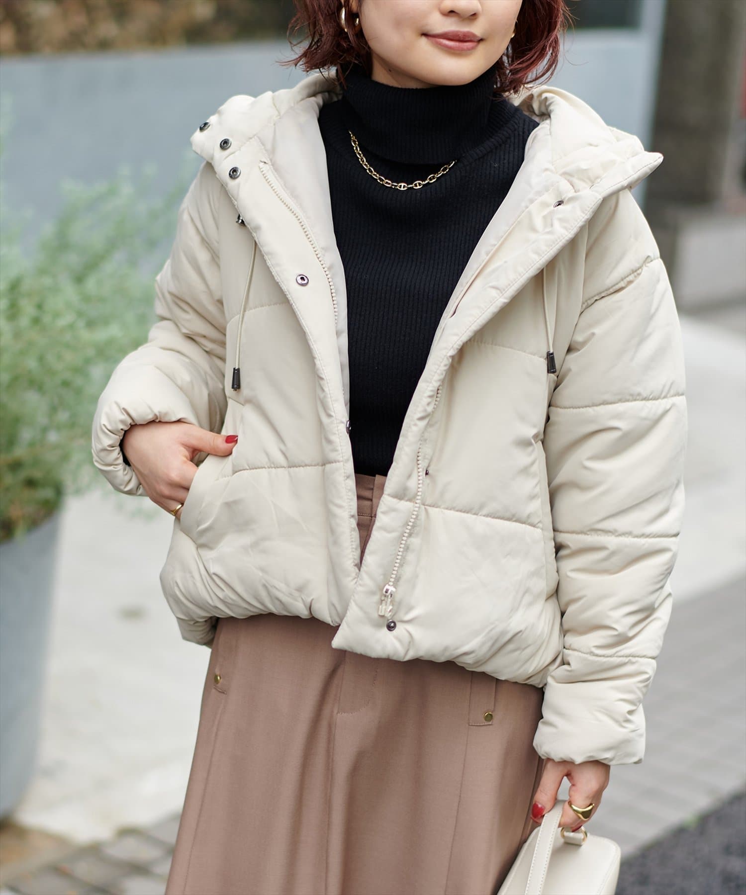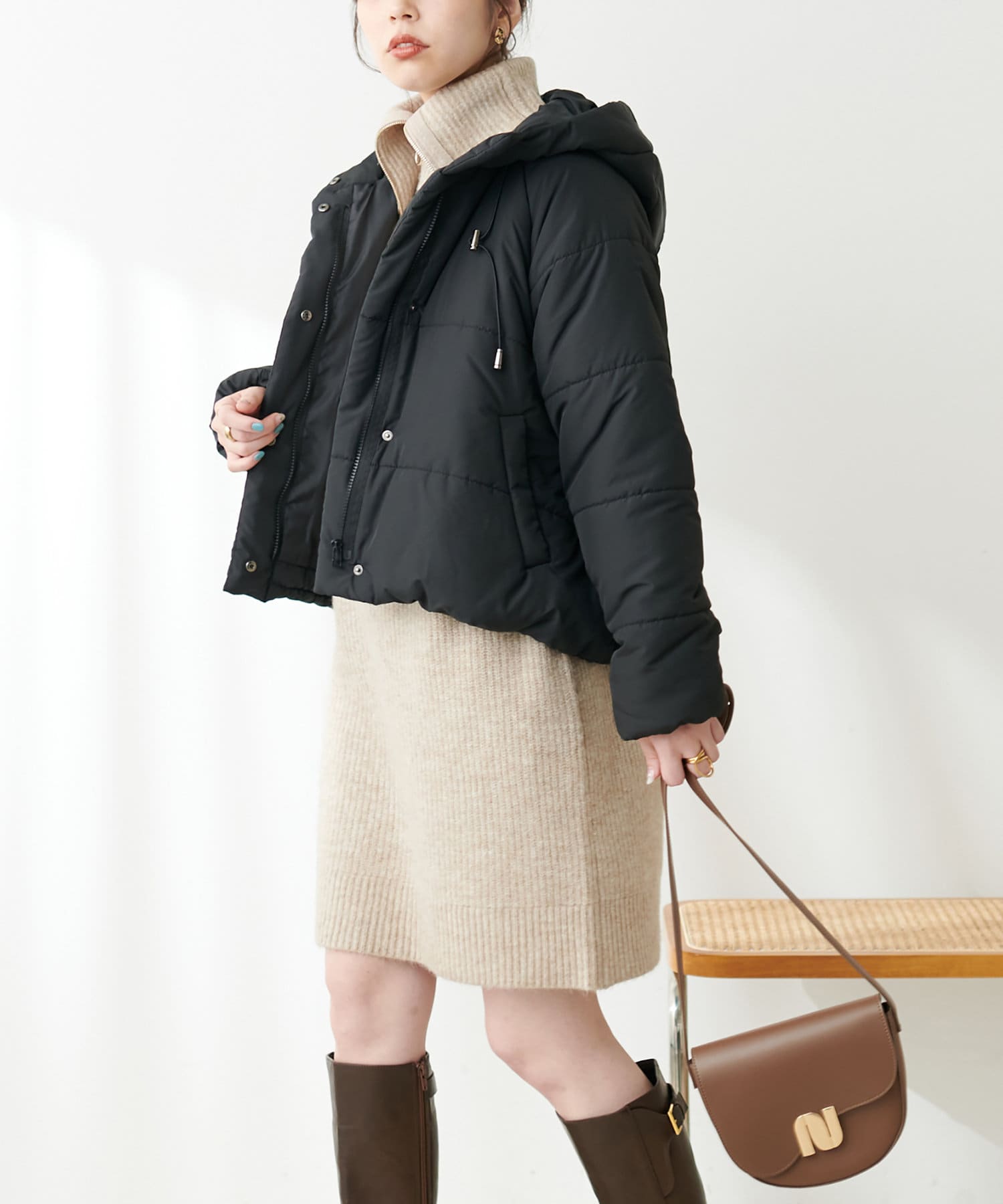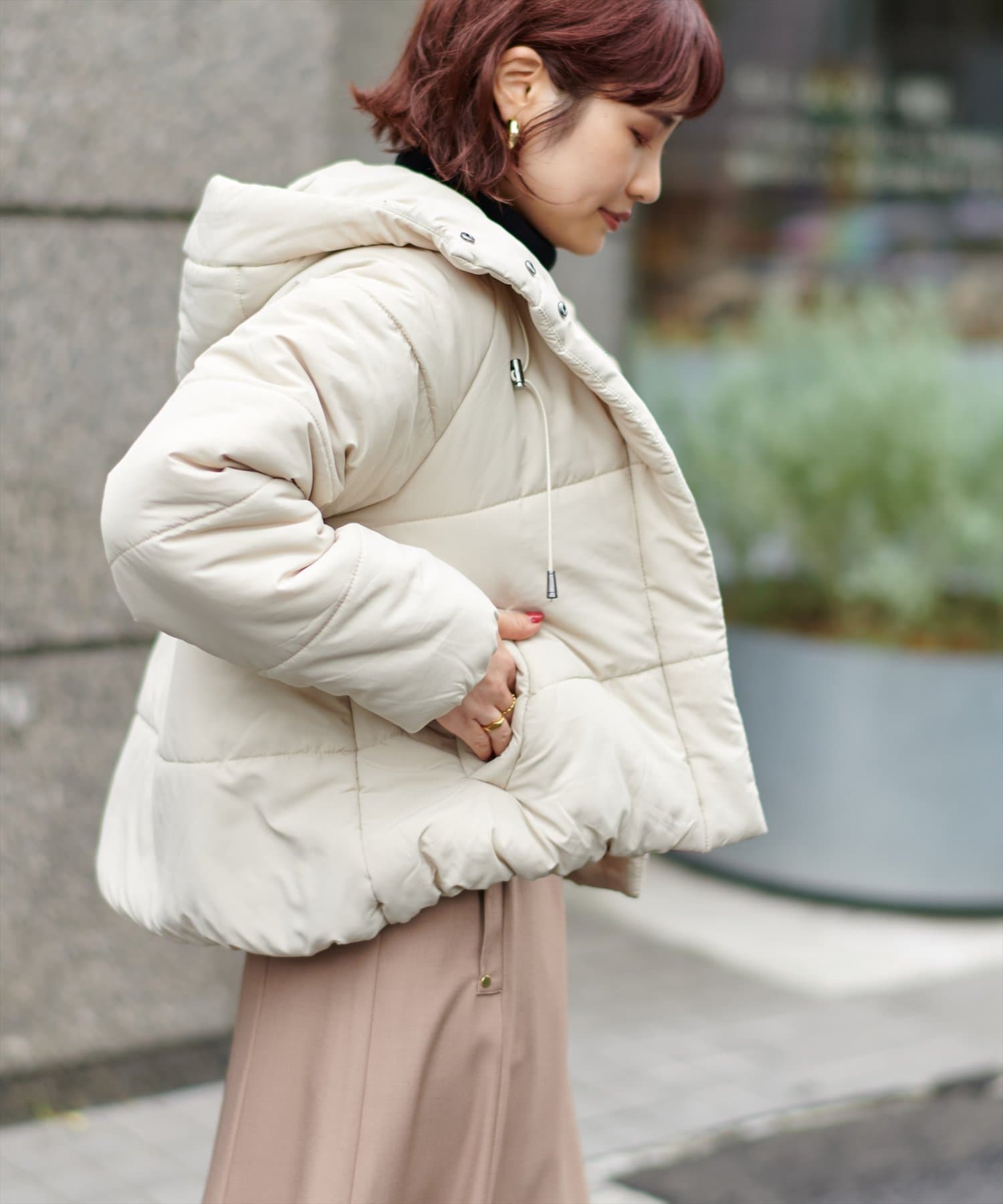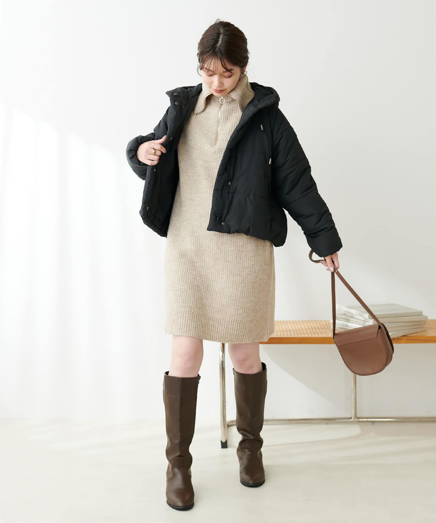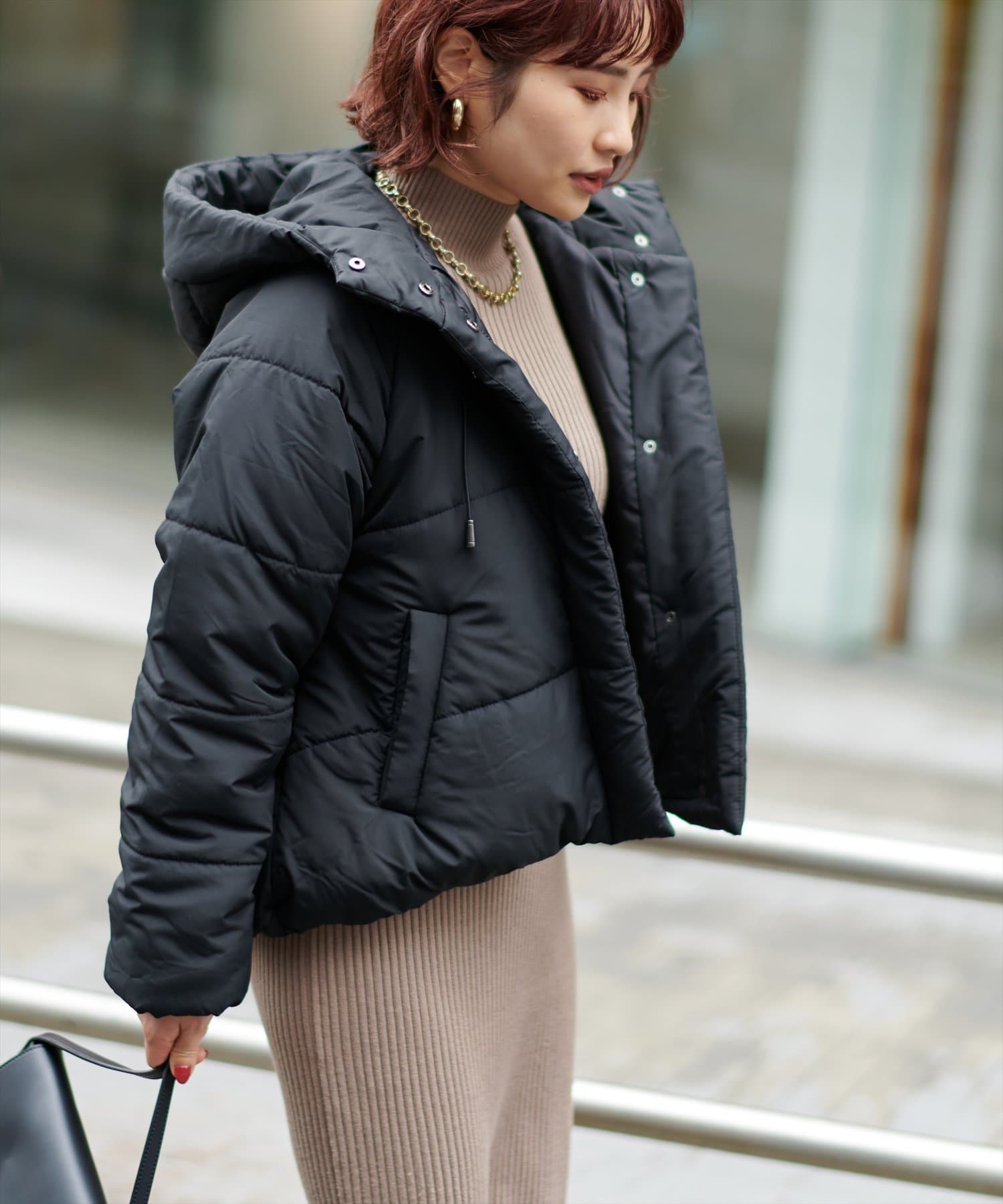 比較的ストレートな袖のシルエットなので、着太りしがちな中綿ダウンですがスッキリ着られます。