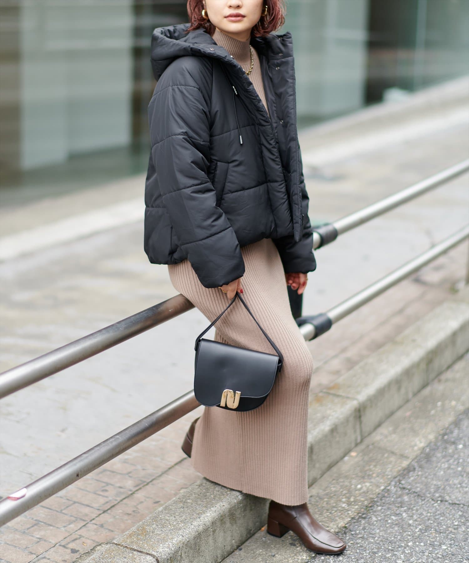 ニットワンピースやロングスカートなど甘めのスタイリングにもおすすめです◎