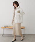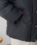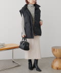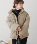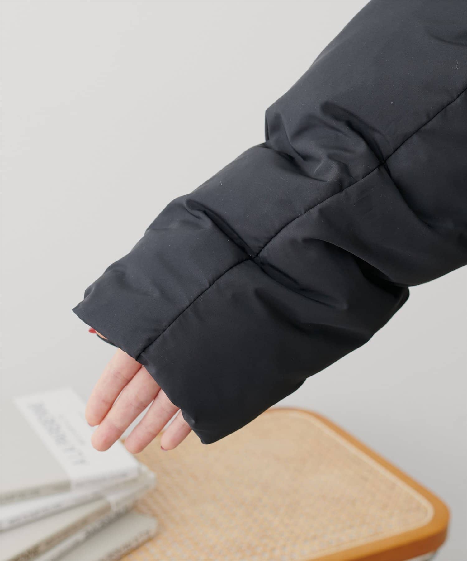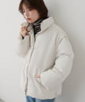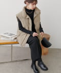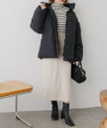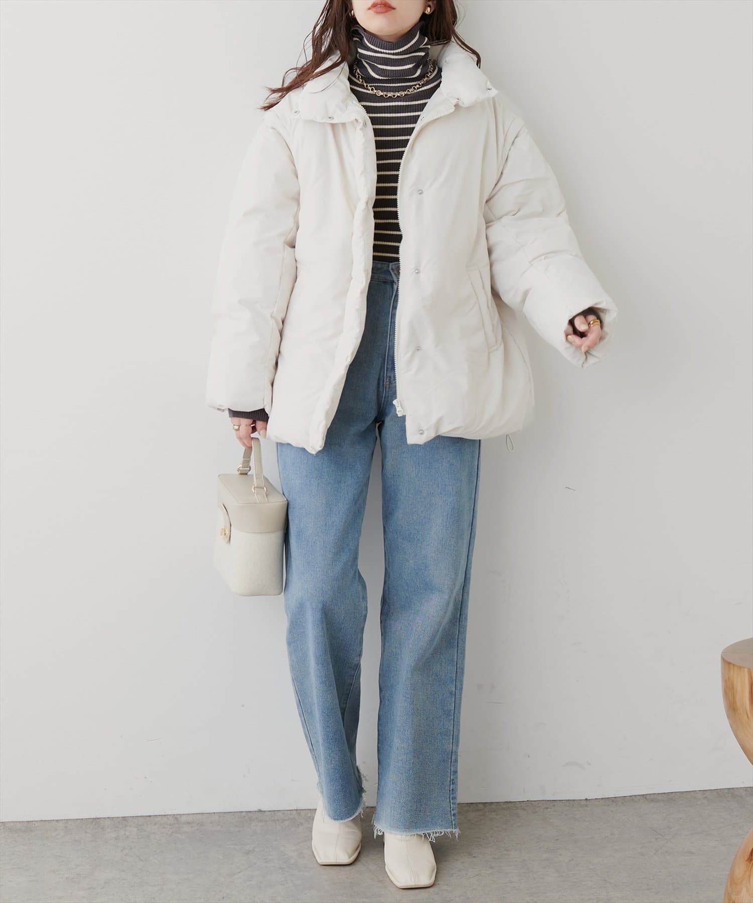 中綿ジャケットにボリュームがあるので細身のパンツと合わせるとバランスの良いスタイリングに。