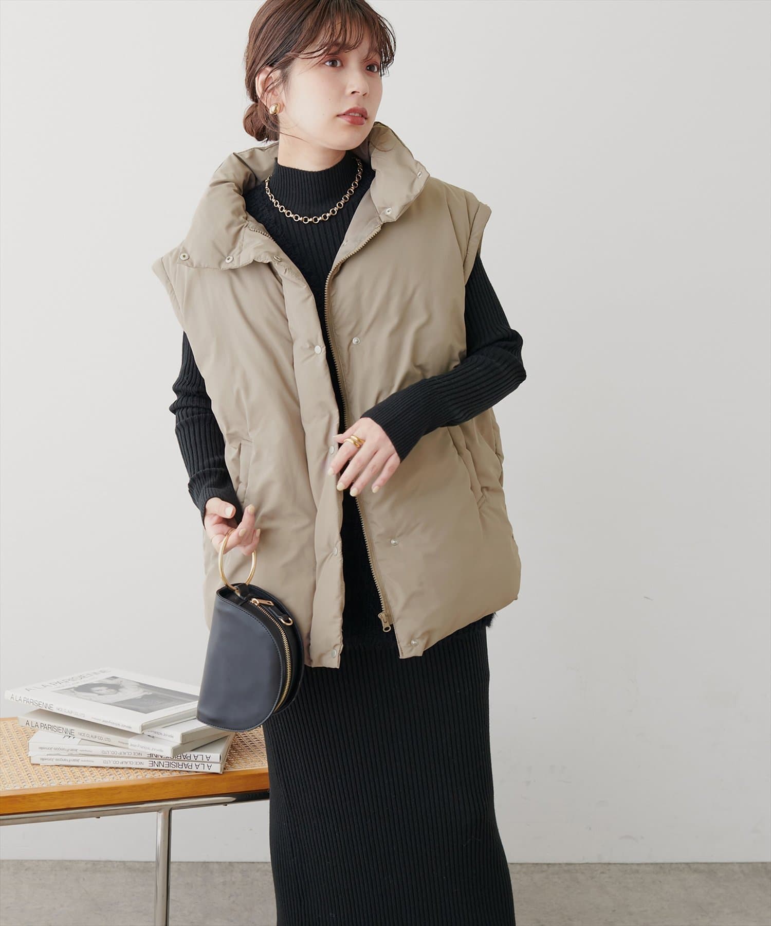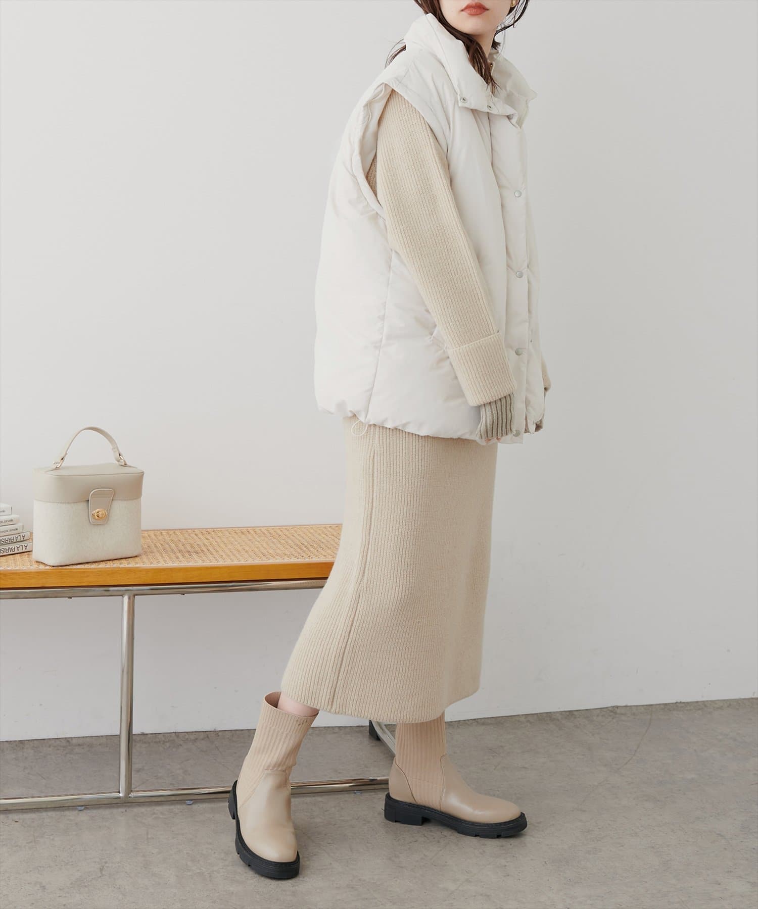 シンプルなニットワンピに袖を外して着て頂くのもトレンド感がでます。