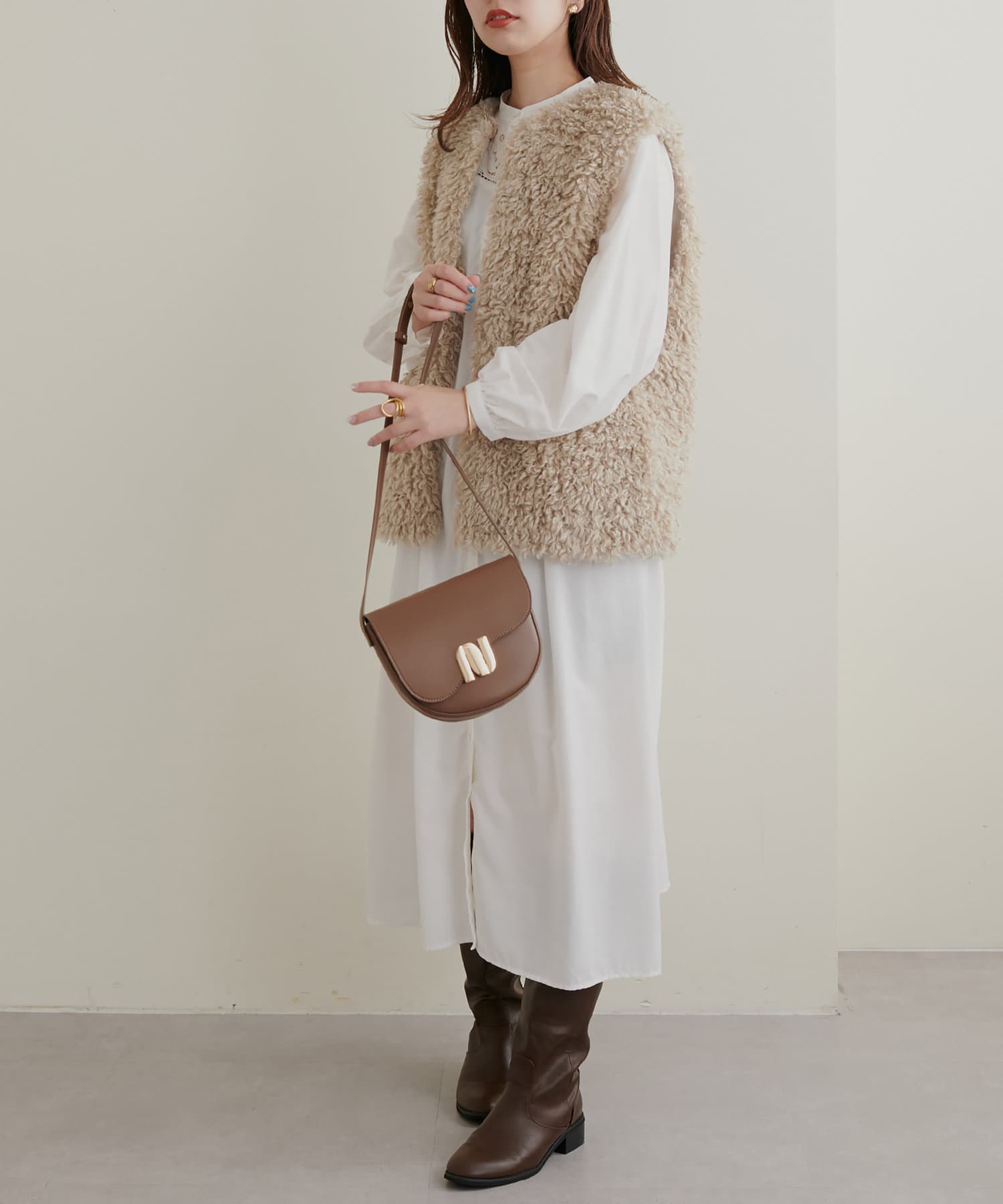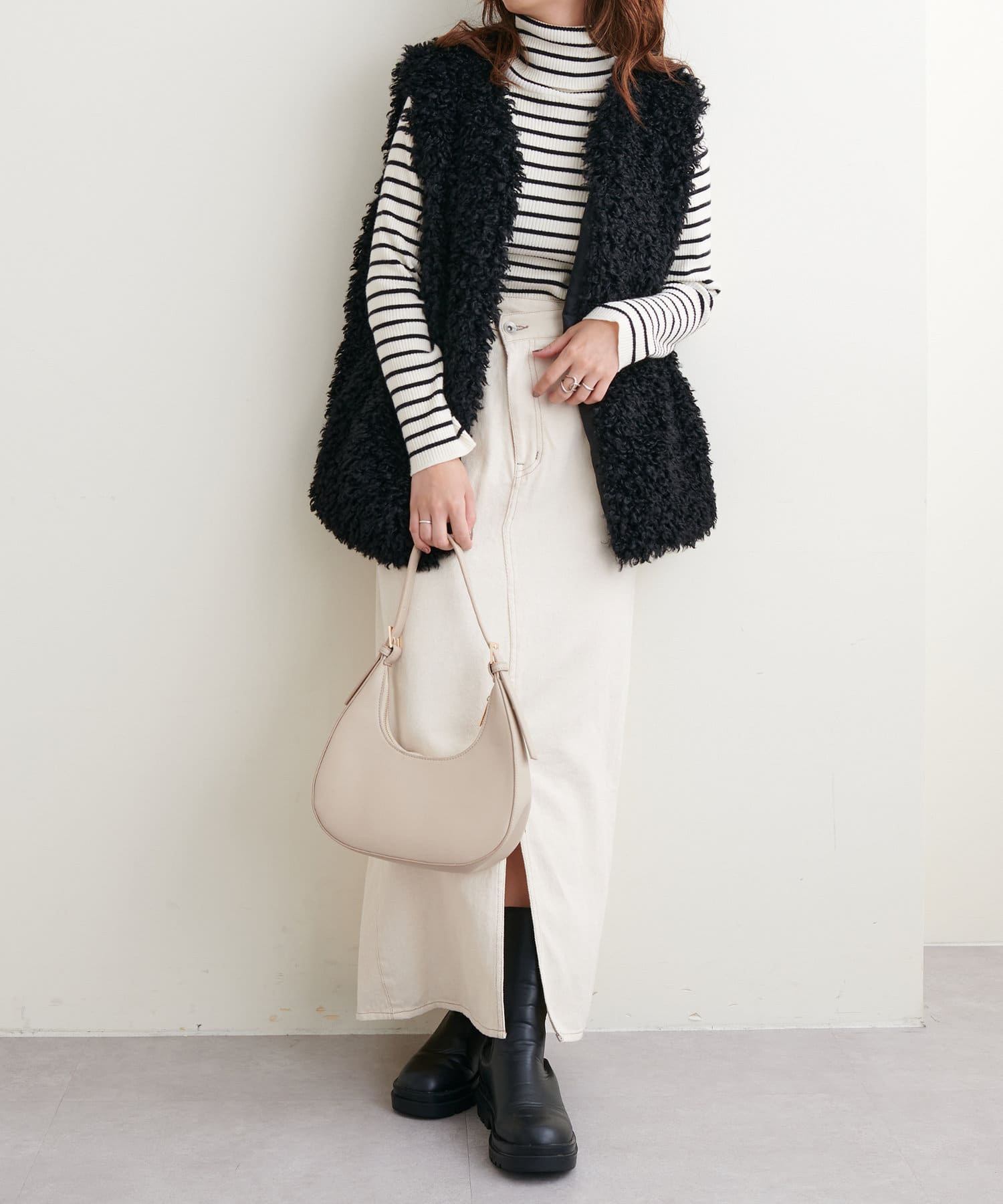 流行りのファーベスト!色もなんでも合わせやすく、いつものコーデにこのベストをプラスするだけでトレンドに見えるのが嬉しいです^^
