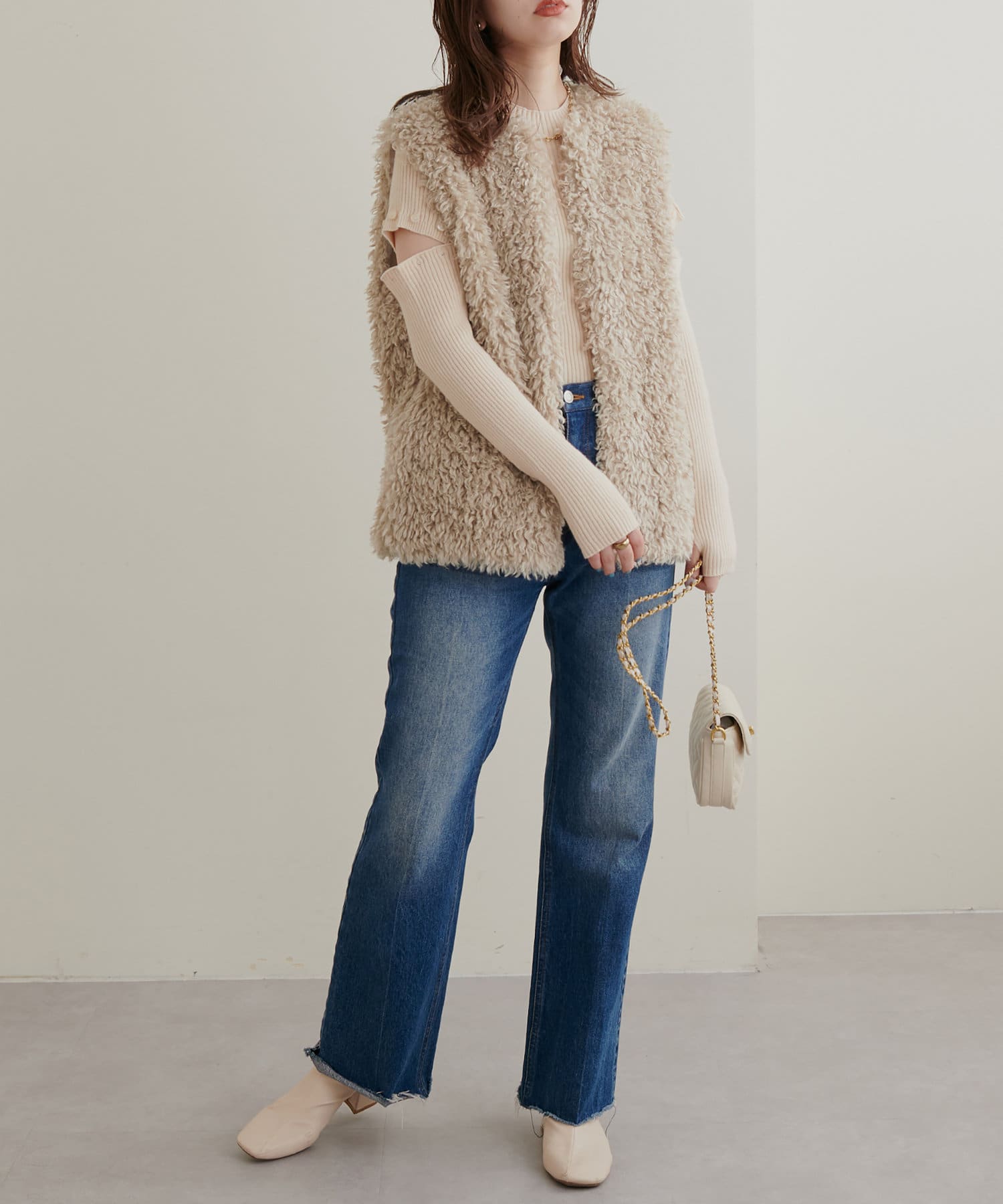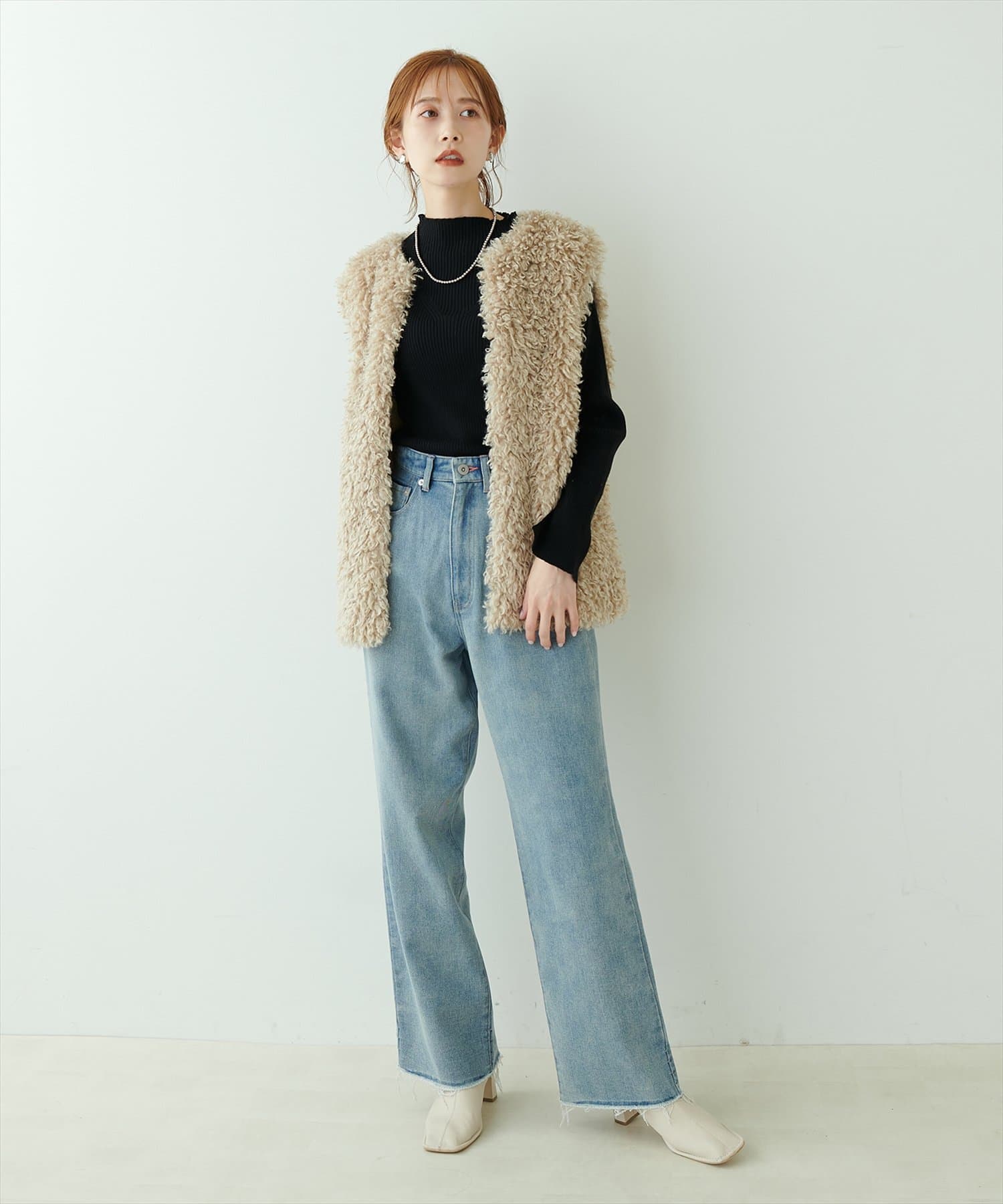 フェイクファーベストです。