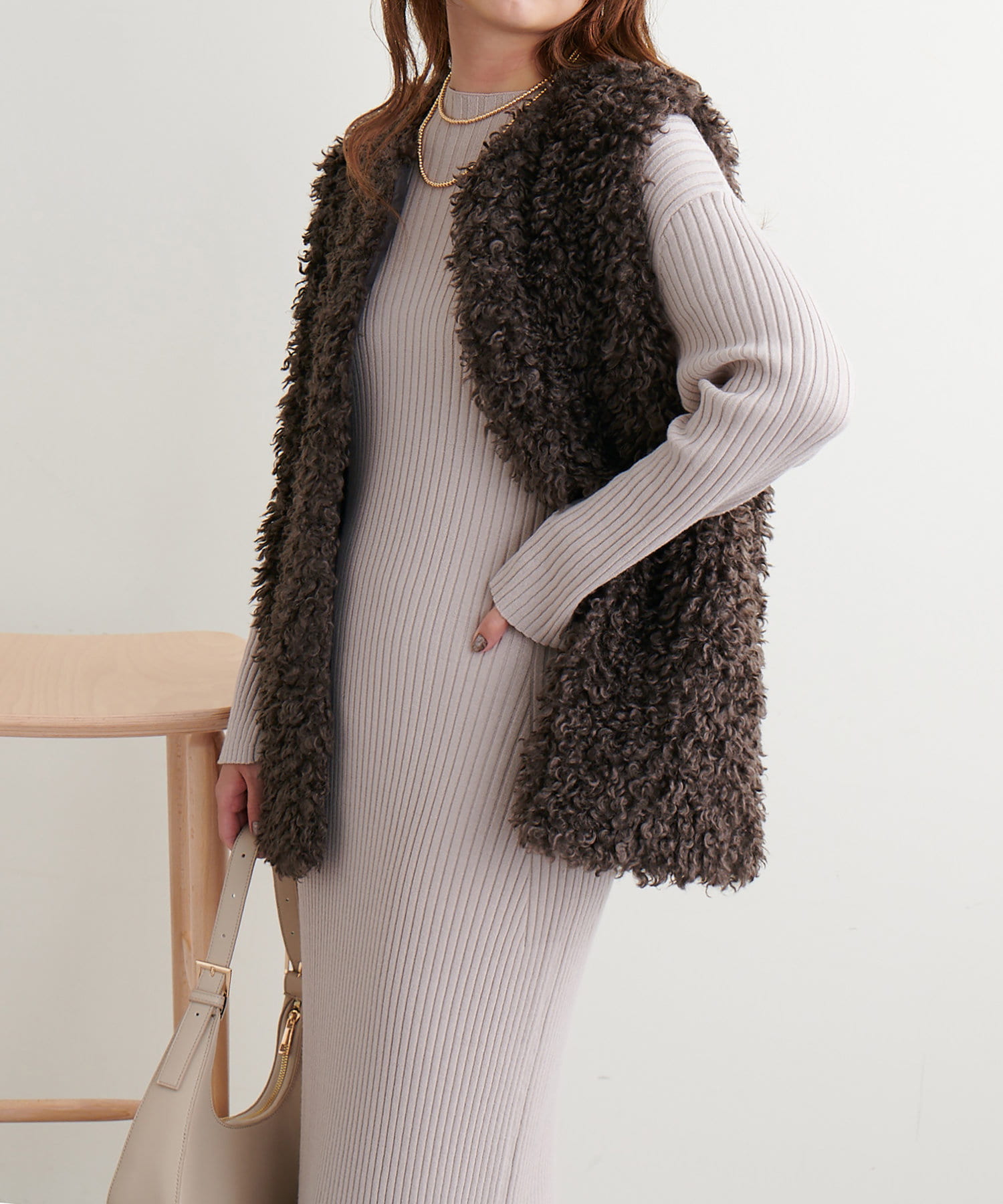プードルのようなふわふわ質感のファーベスト