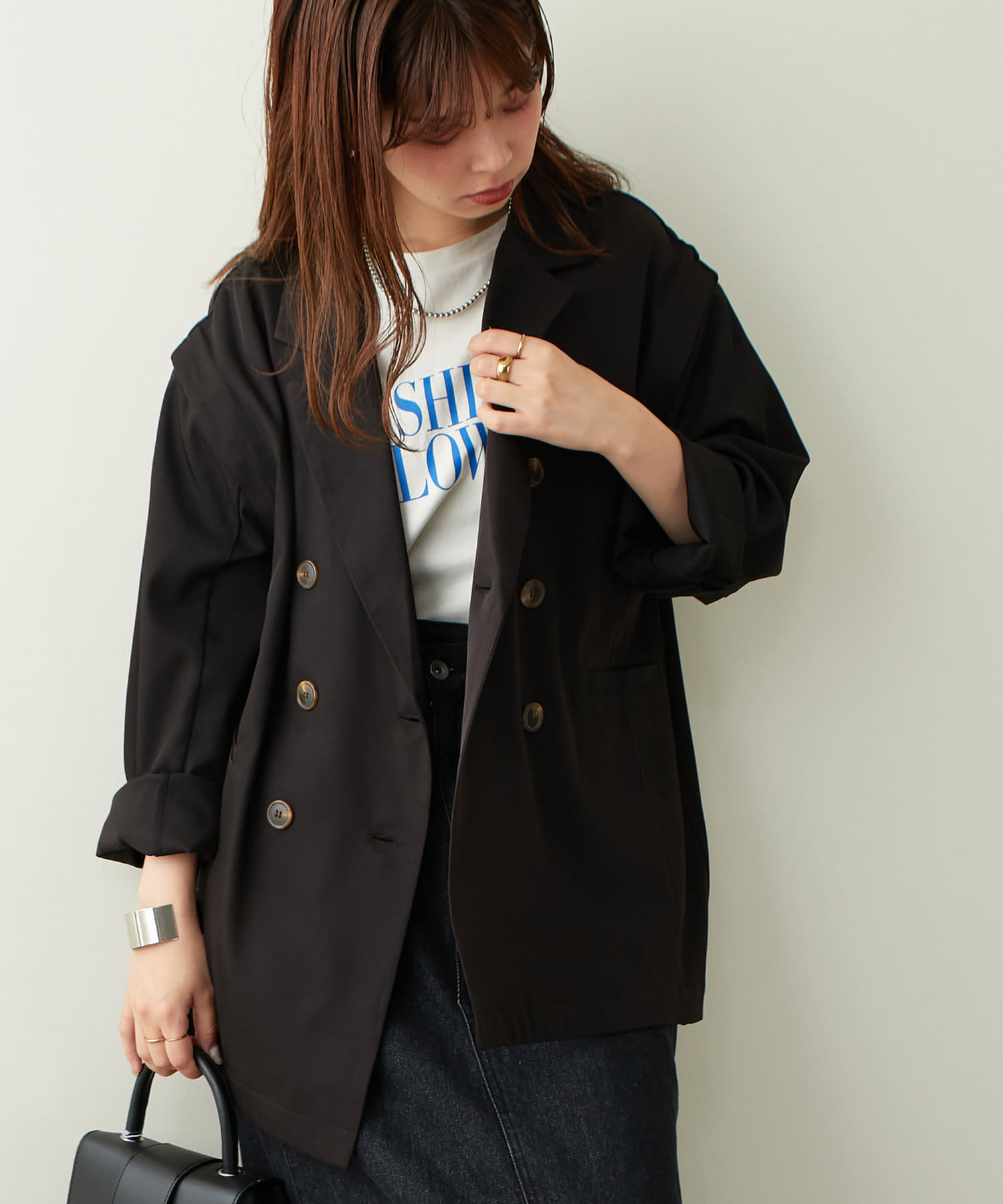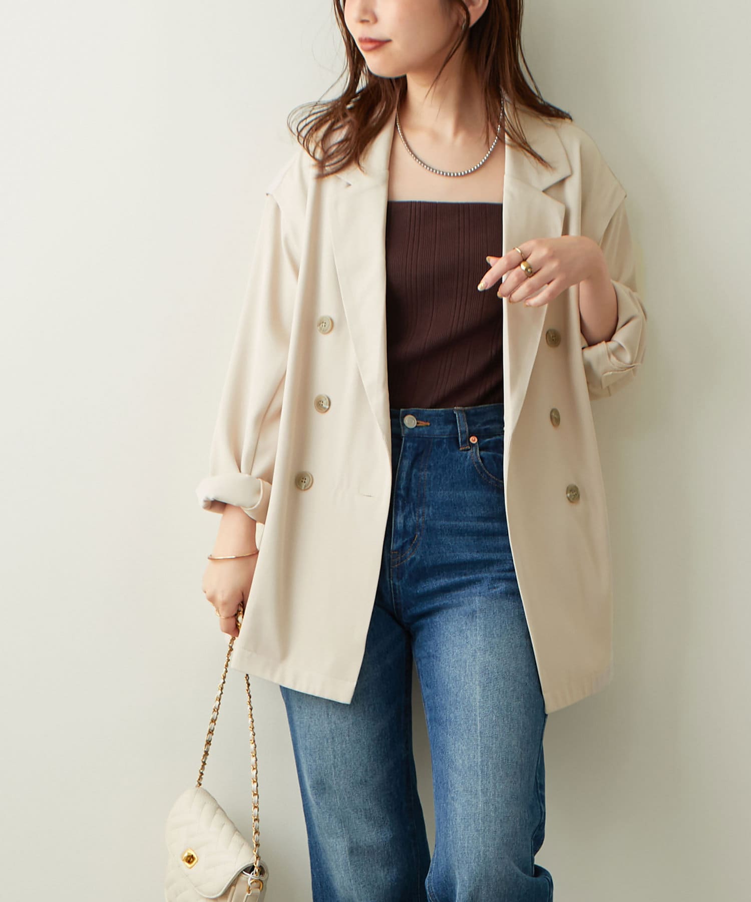 さらっとした着心地の、端境期の羽織りアイテムとしてお召し頂きやすい1着。