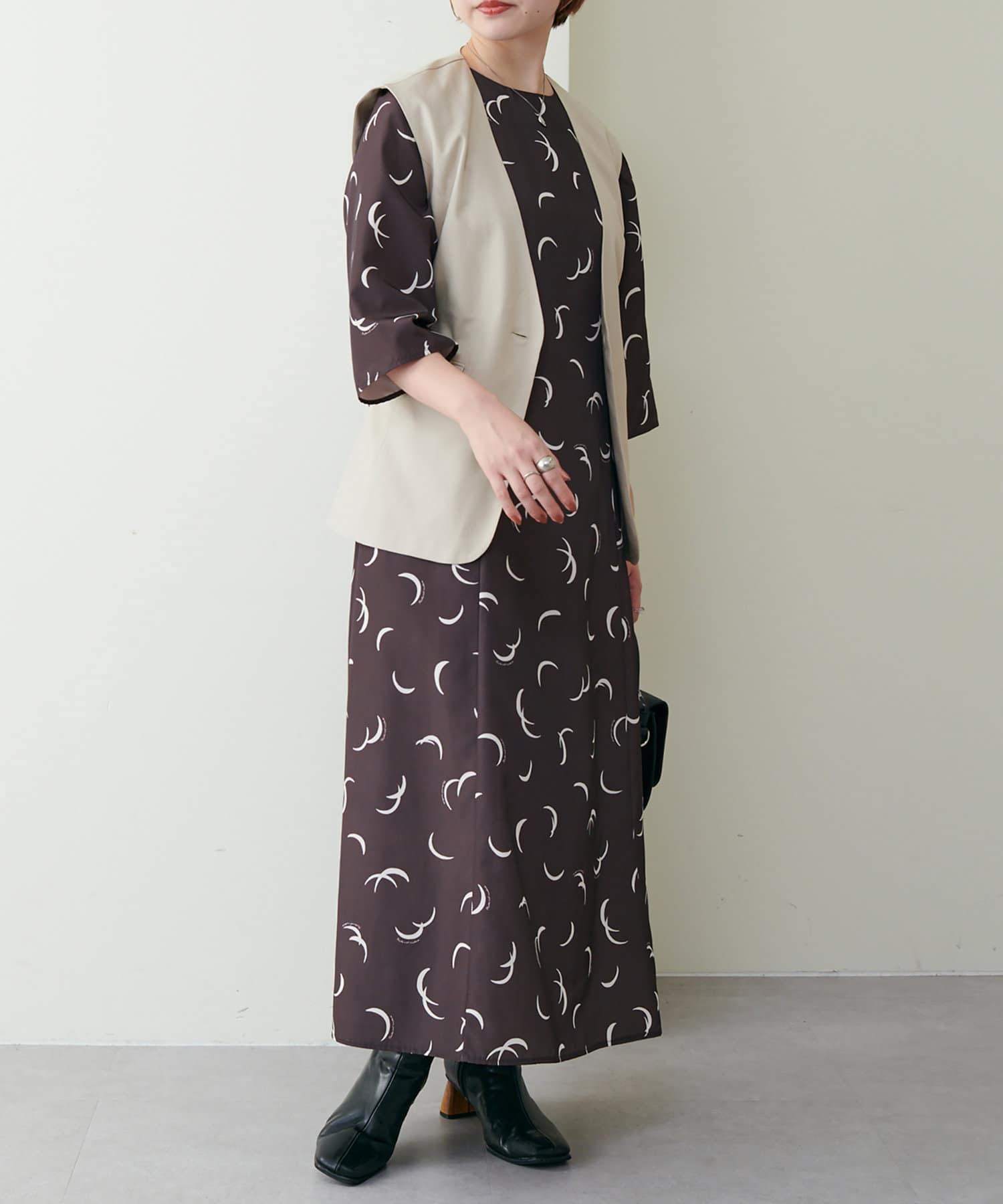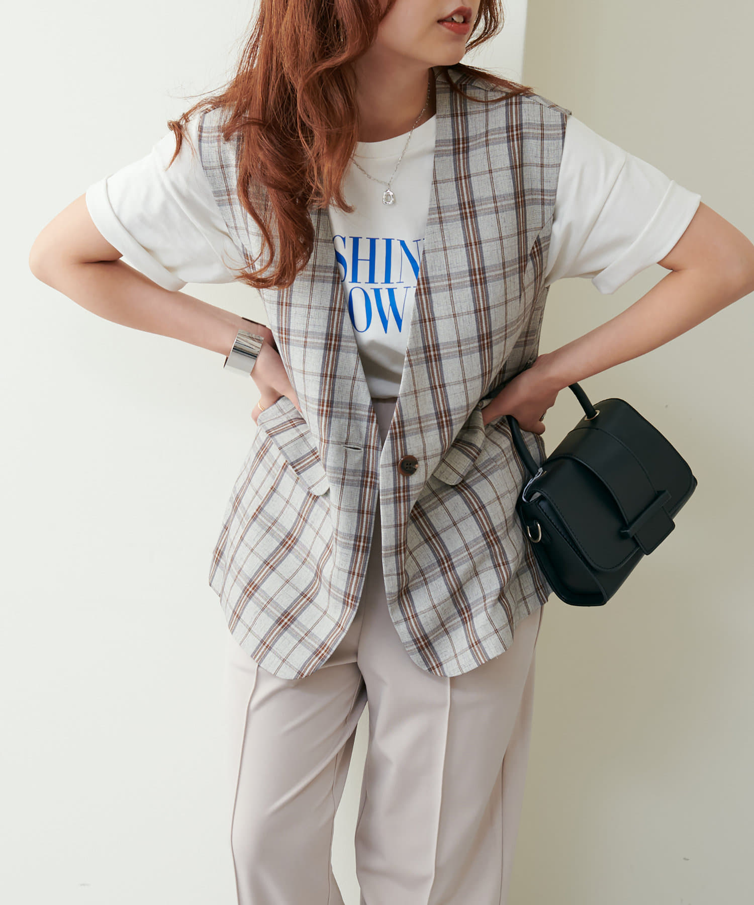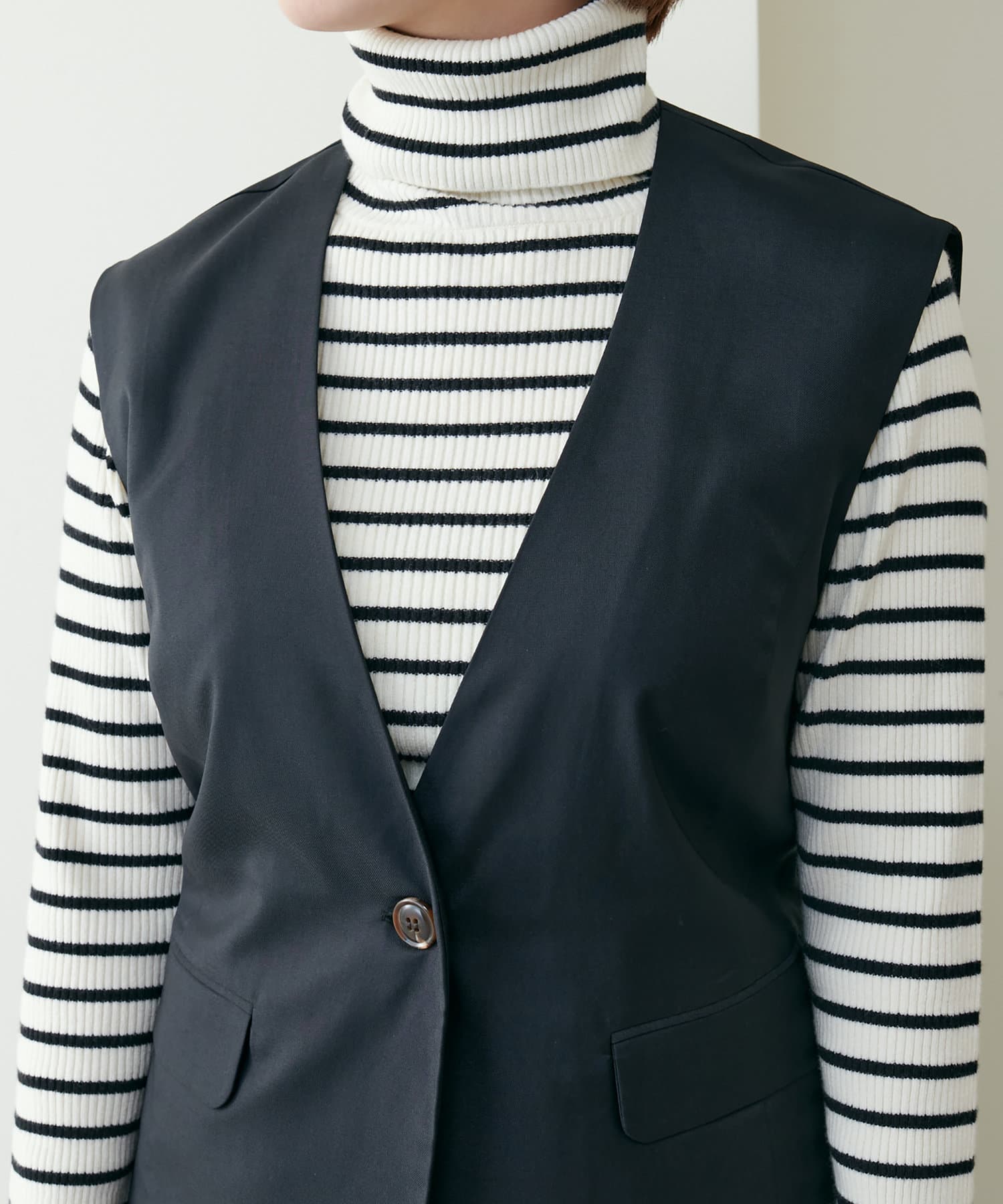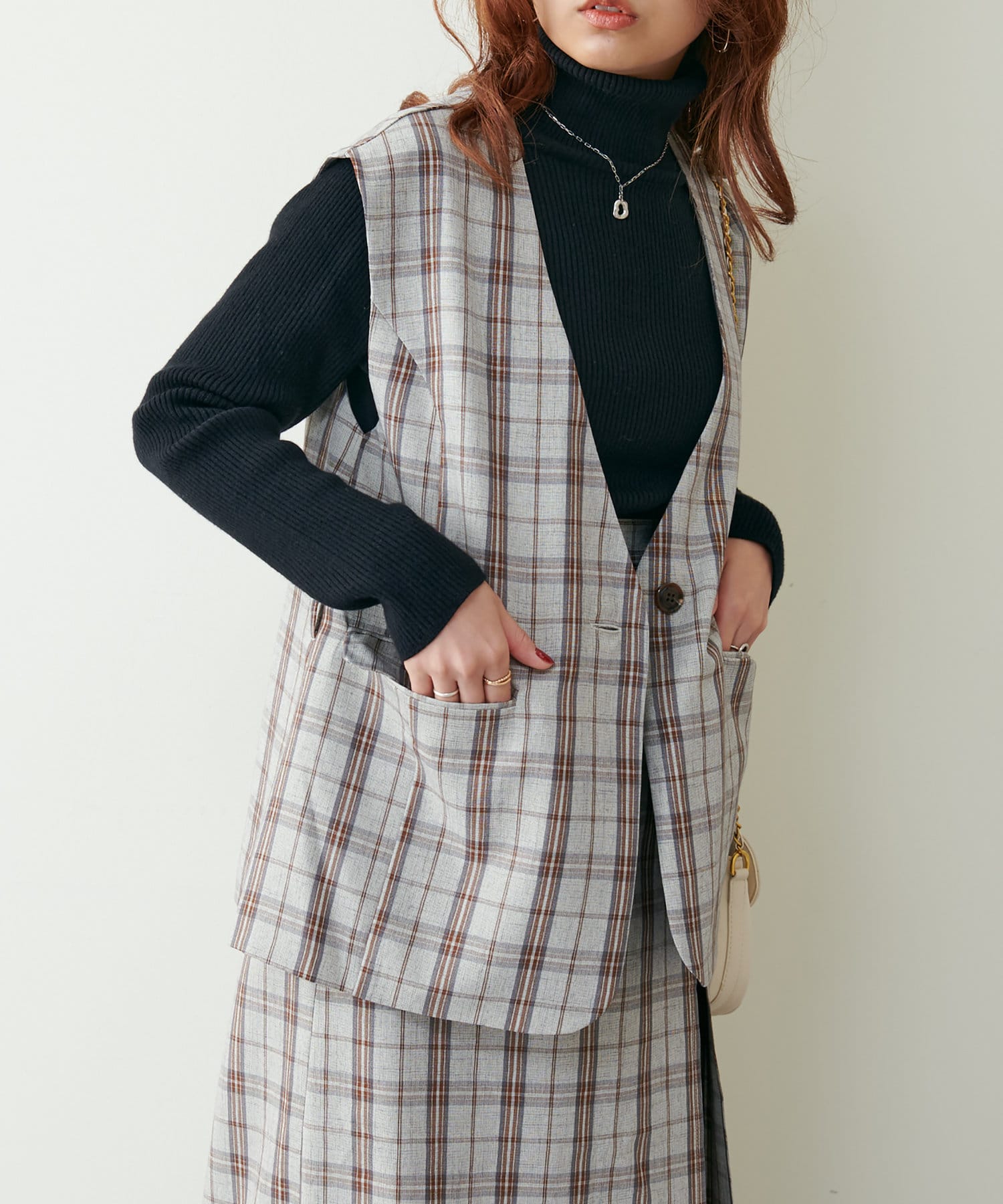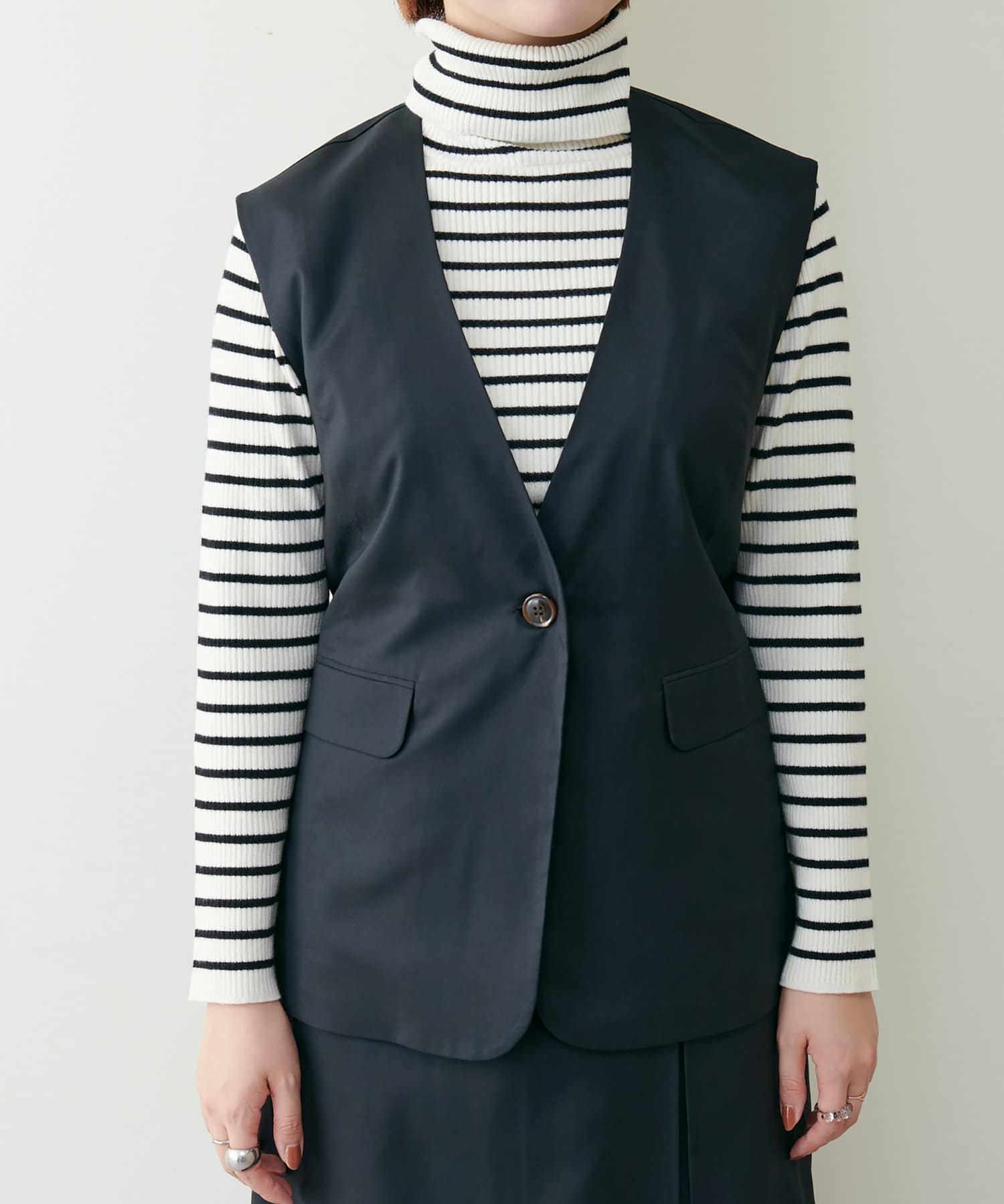 シンプルなシルエットで幅広いテイストに合わせやすいベスト。