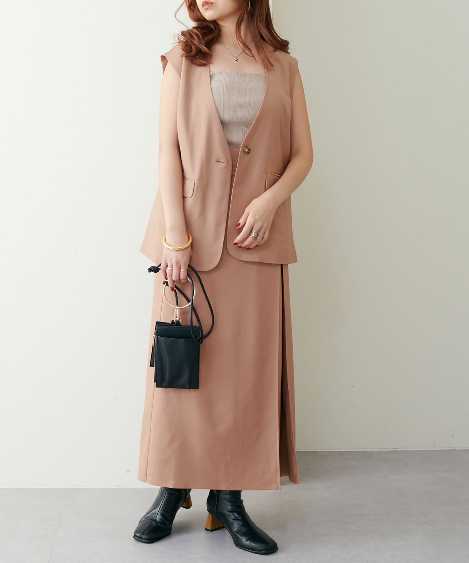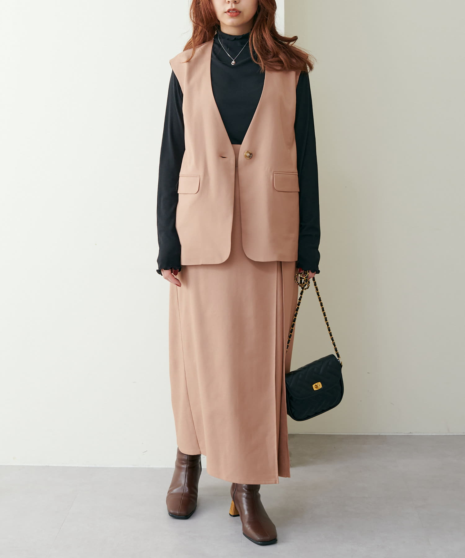 0322010140 スリット見えタックスカートとセットアップでもご着用頂けます。