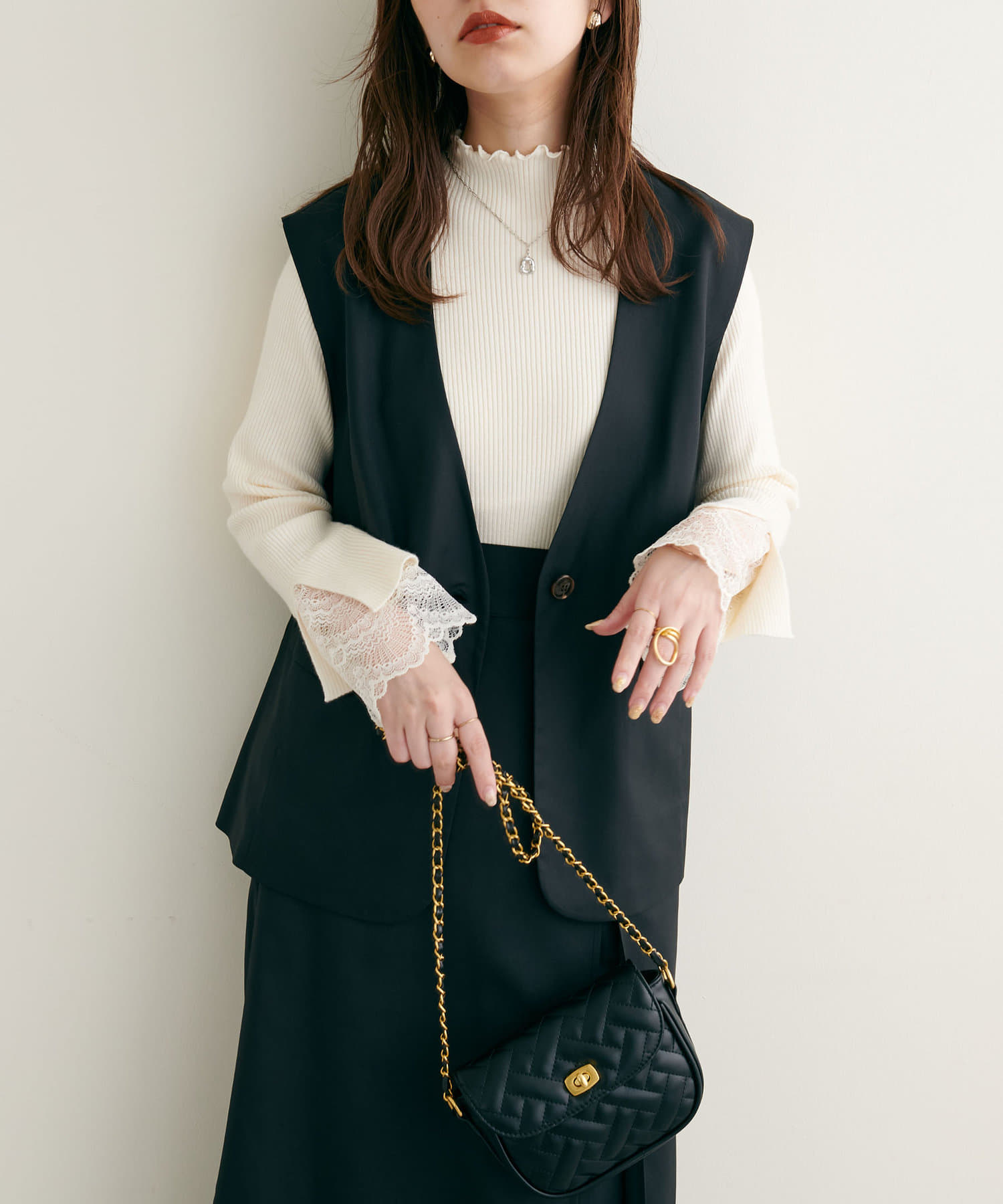 寒くなってきたら、シャツやハイネックのトップスなどに重ねるレイヤードコーデもお楽しみ頂けます。