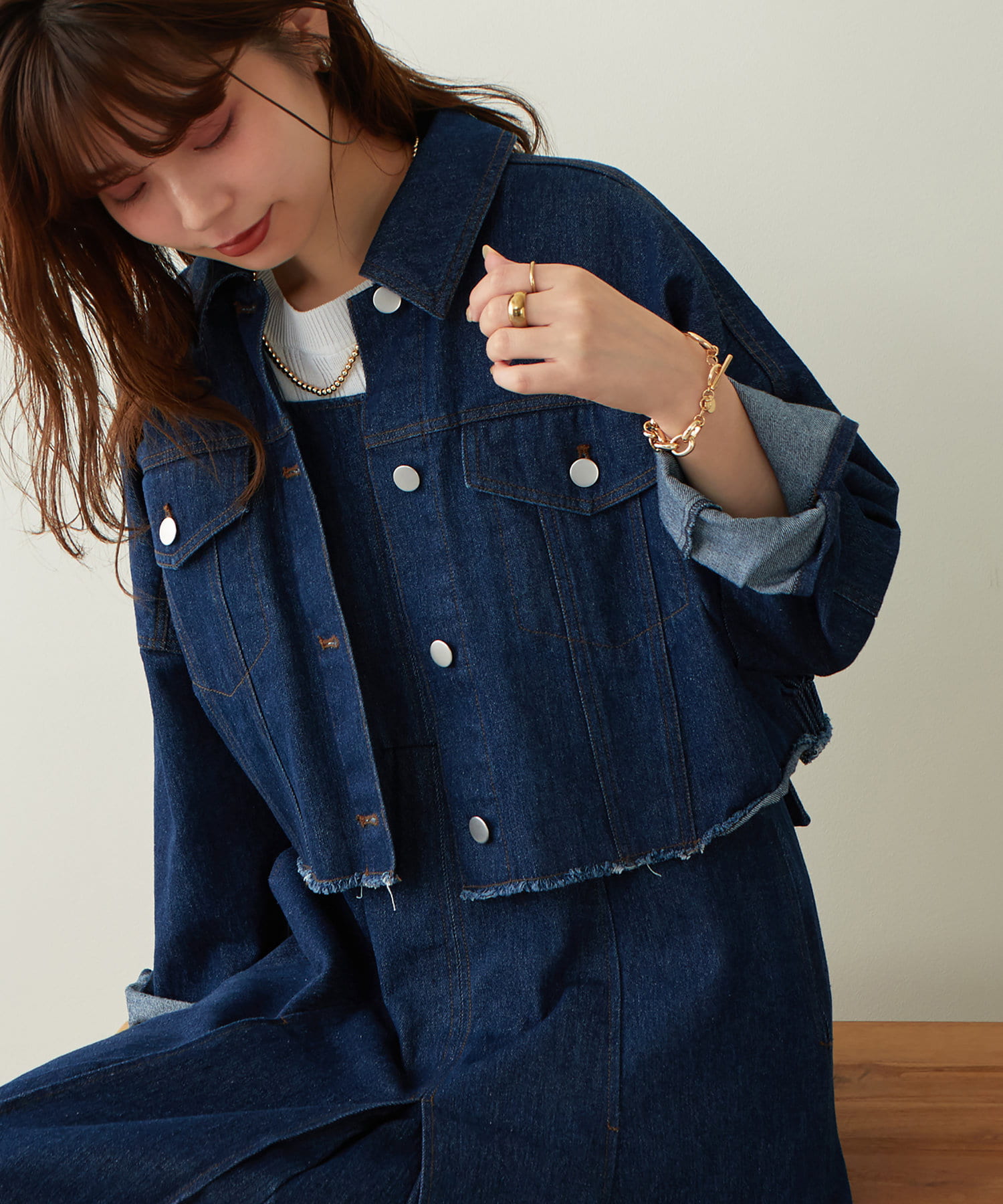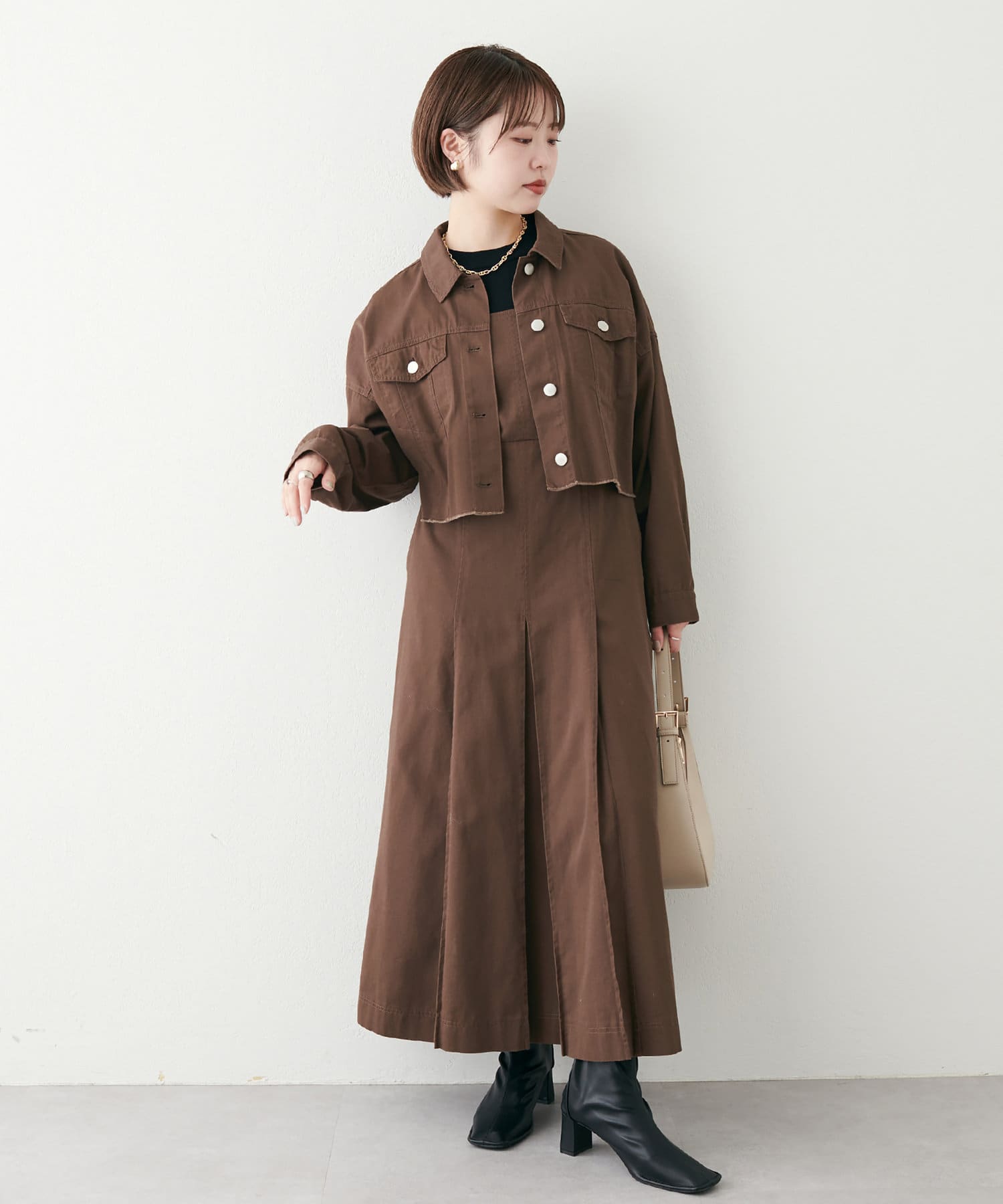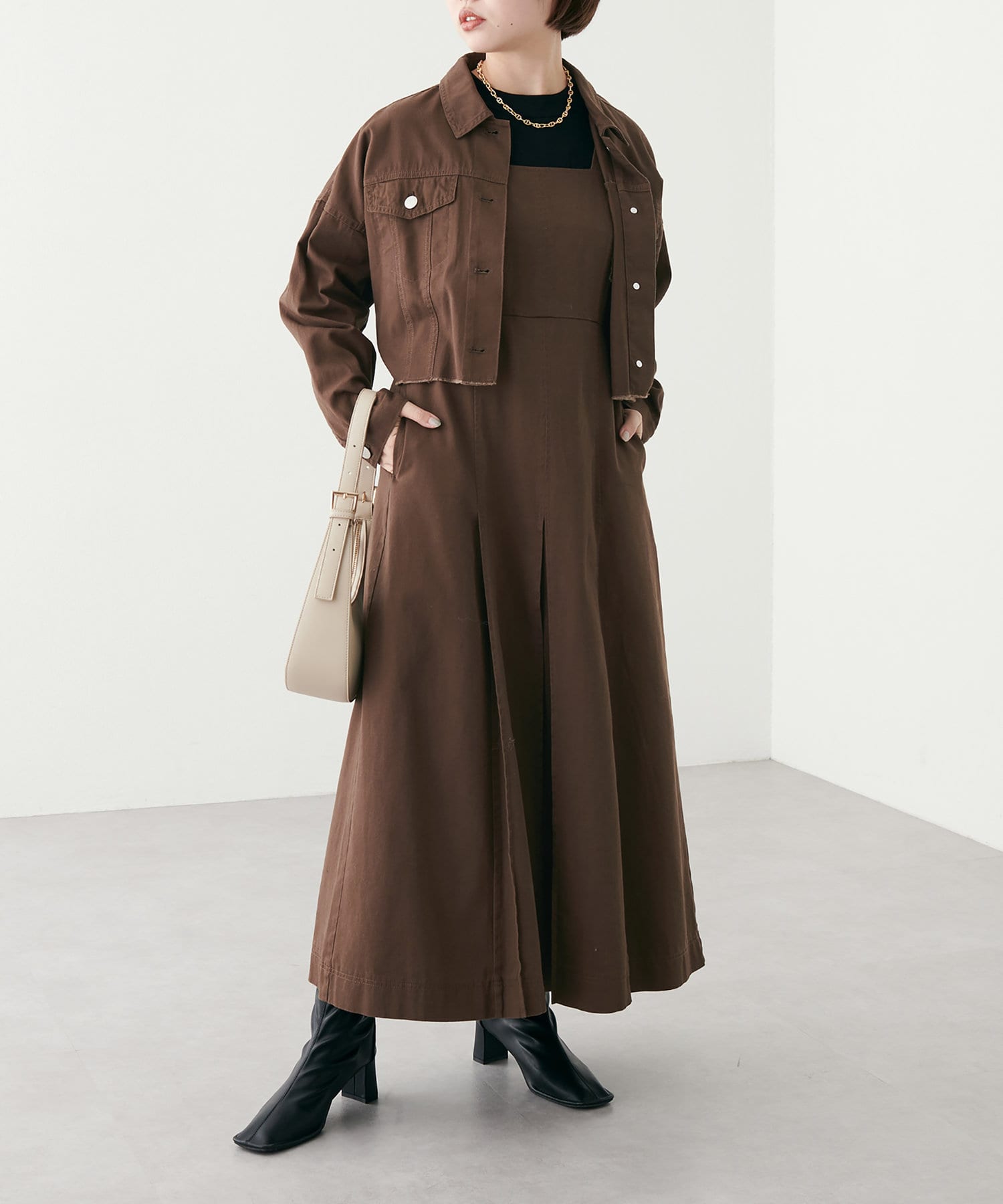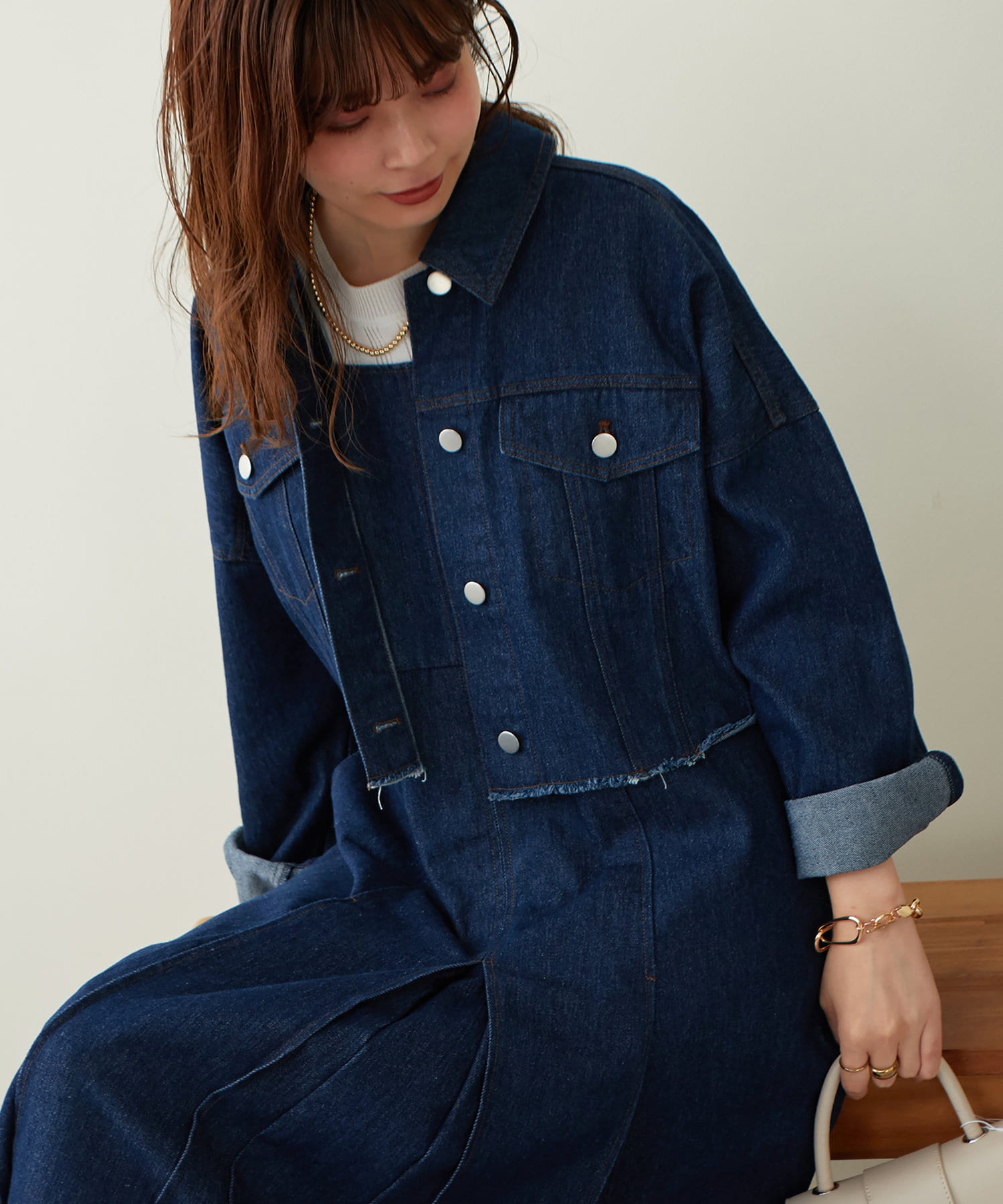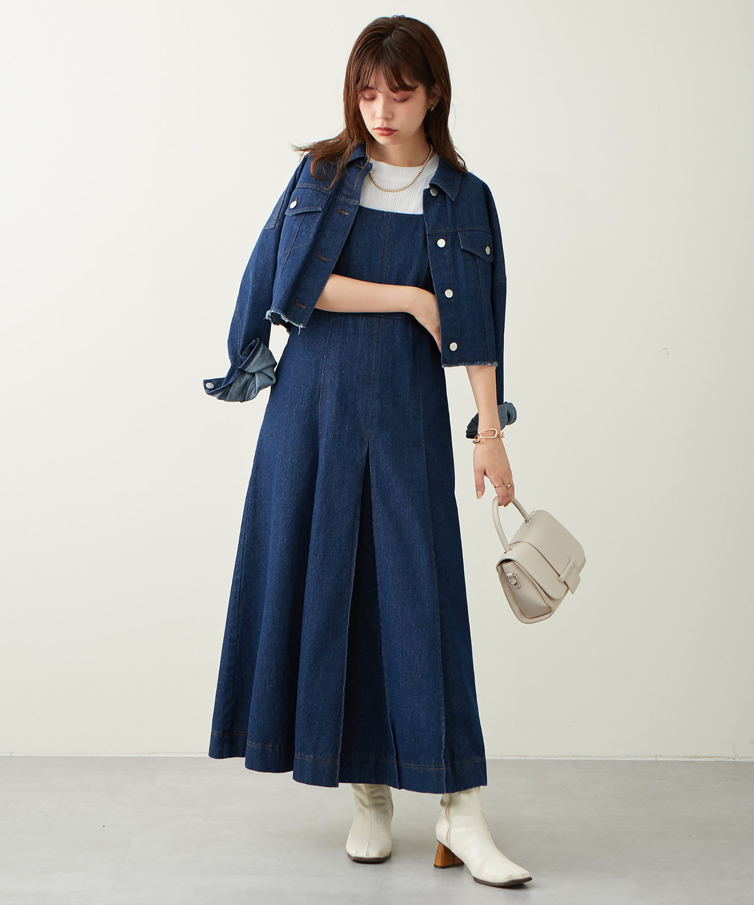 0322090360 タックプリーツデニムジャンバースカートとセットアップで着て頂くと