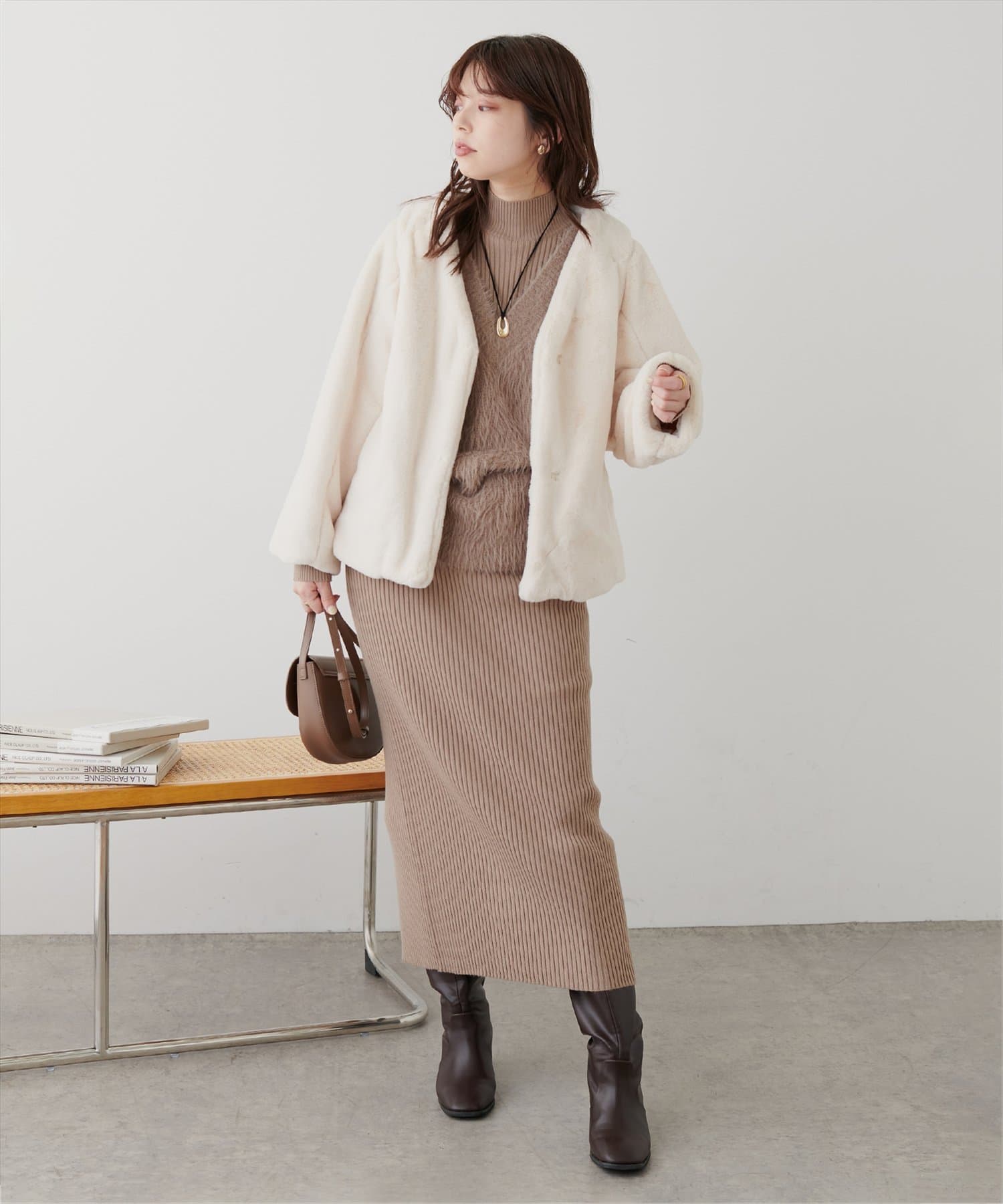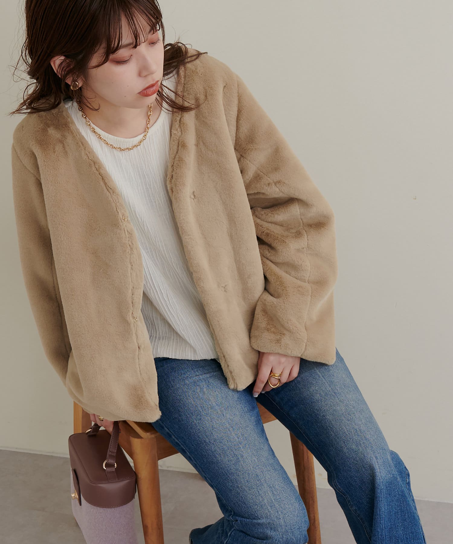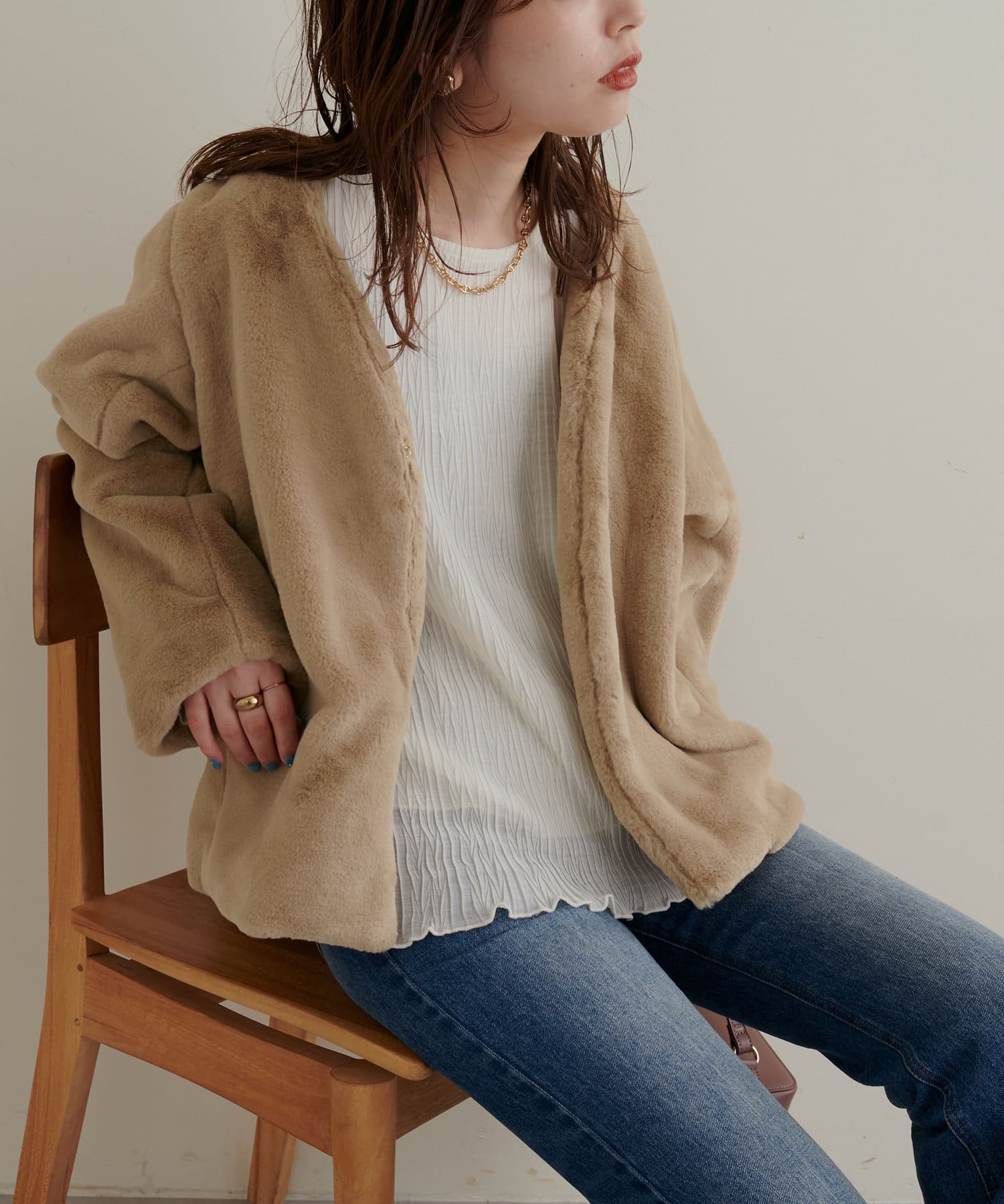 コーディネートにプラスするだけで、こなれ感の出るファーコート。