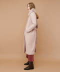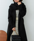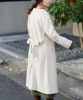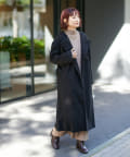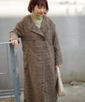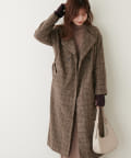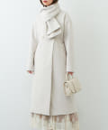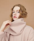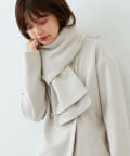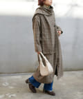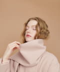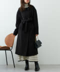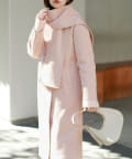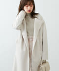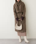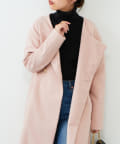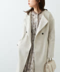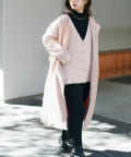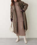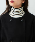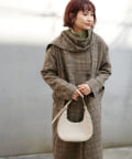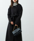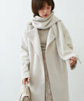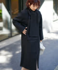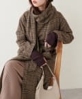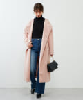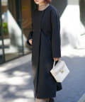 クルーネックのコートなので首元にデザインのあるハイネックのインナーを合わせてメリハリ付けても◎