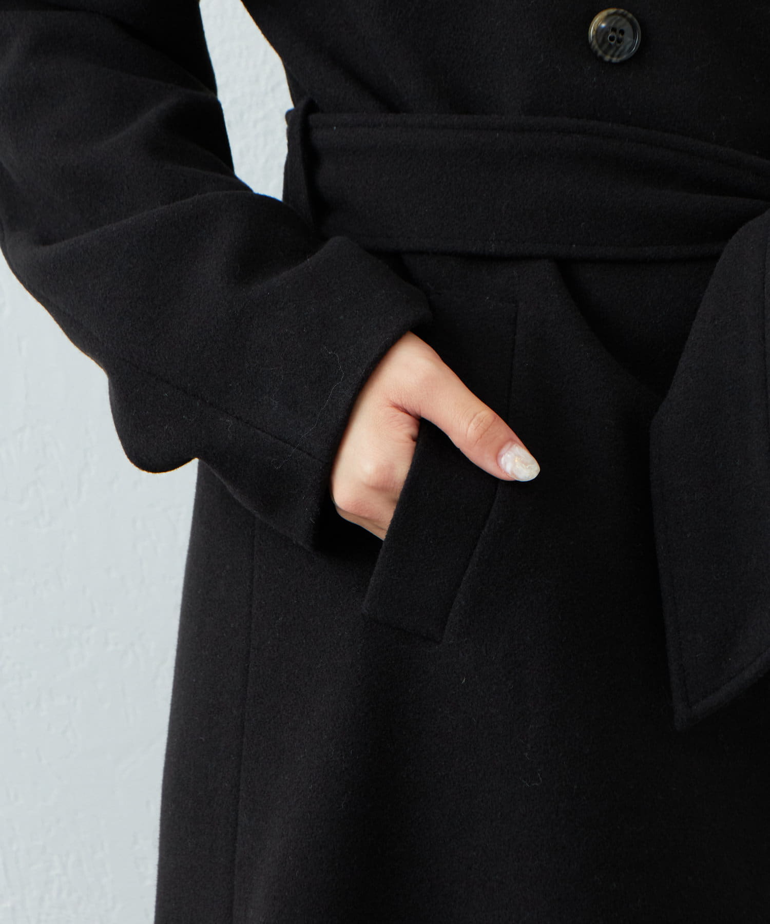 ベルトを使うとエレガントな女性らしい印象になり、通勤用でも活躍するデザインです。
