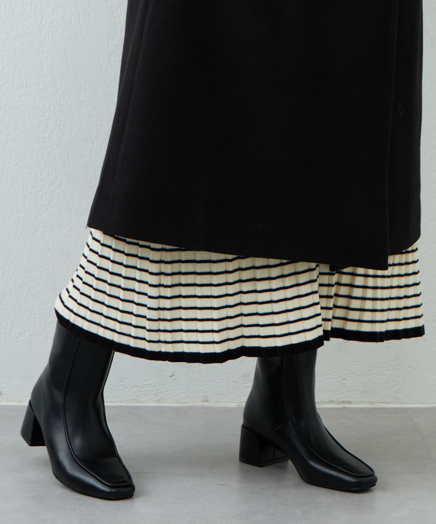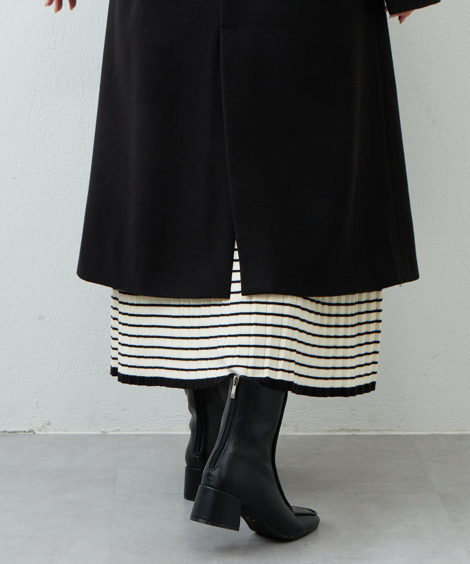 着丈は膝下くらいなのでパンツコーデやフレアスカート、などロング丈とも相性が良いです。