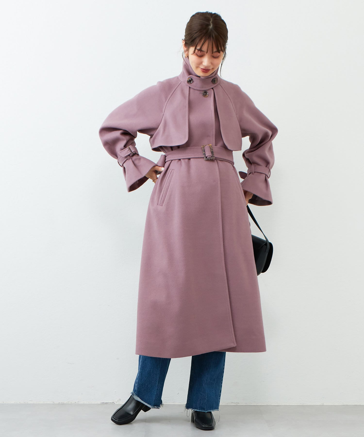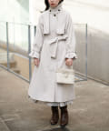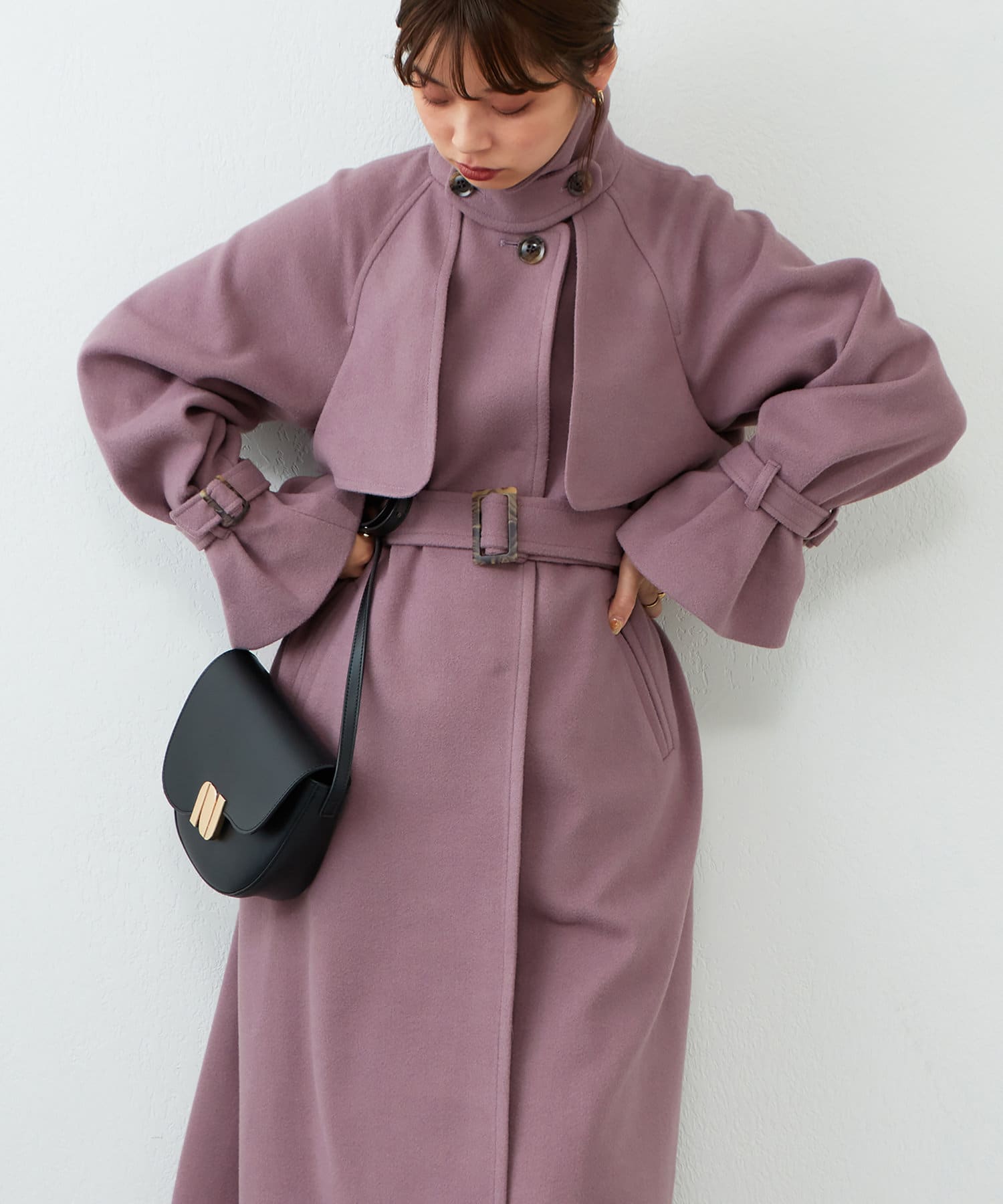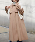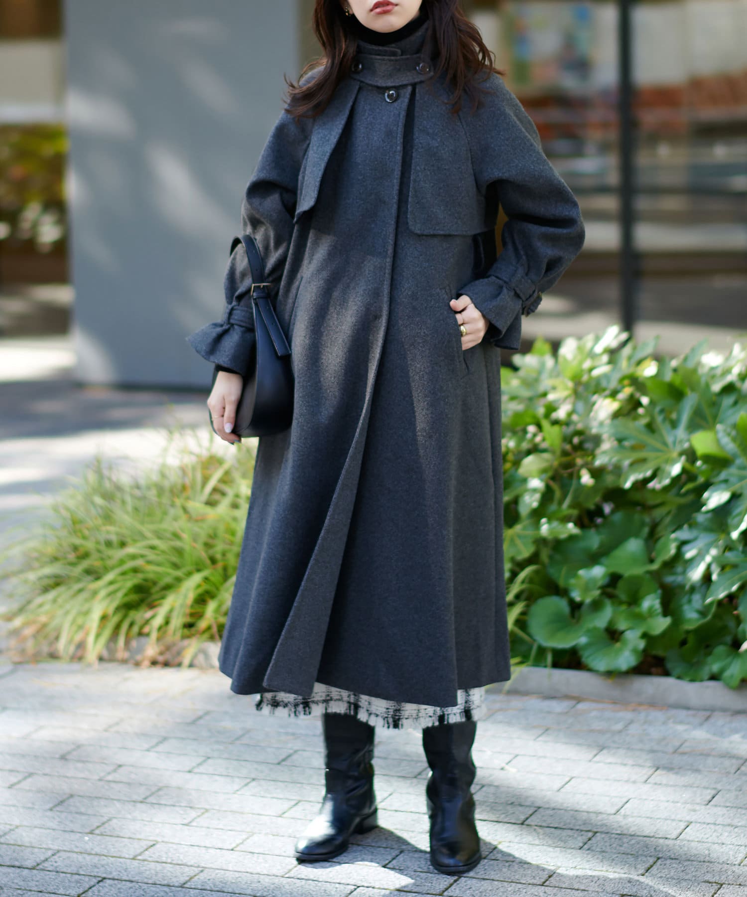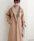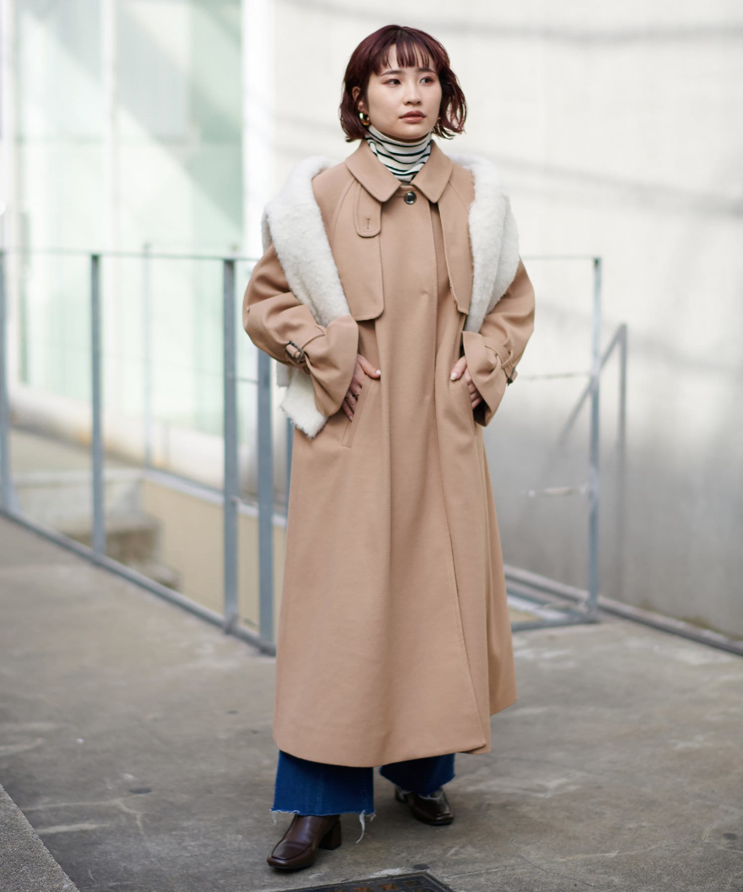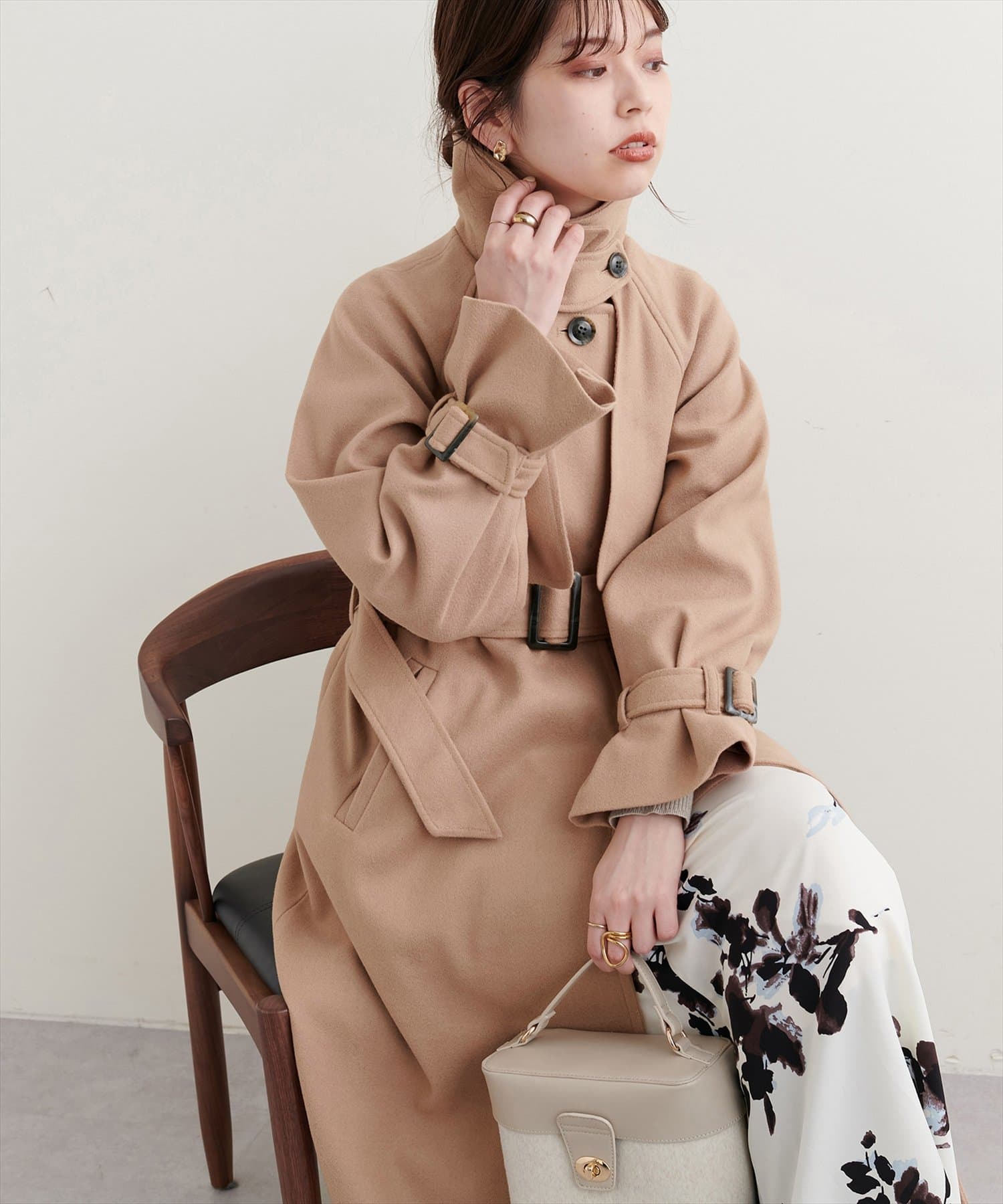 トレンド感のあるスタンドカラーがポイントのロングコートの登場。