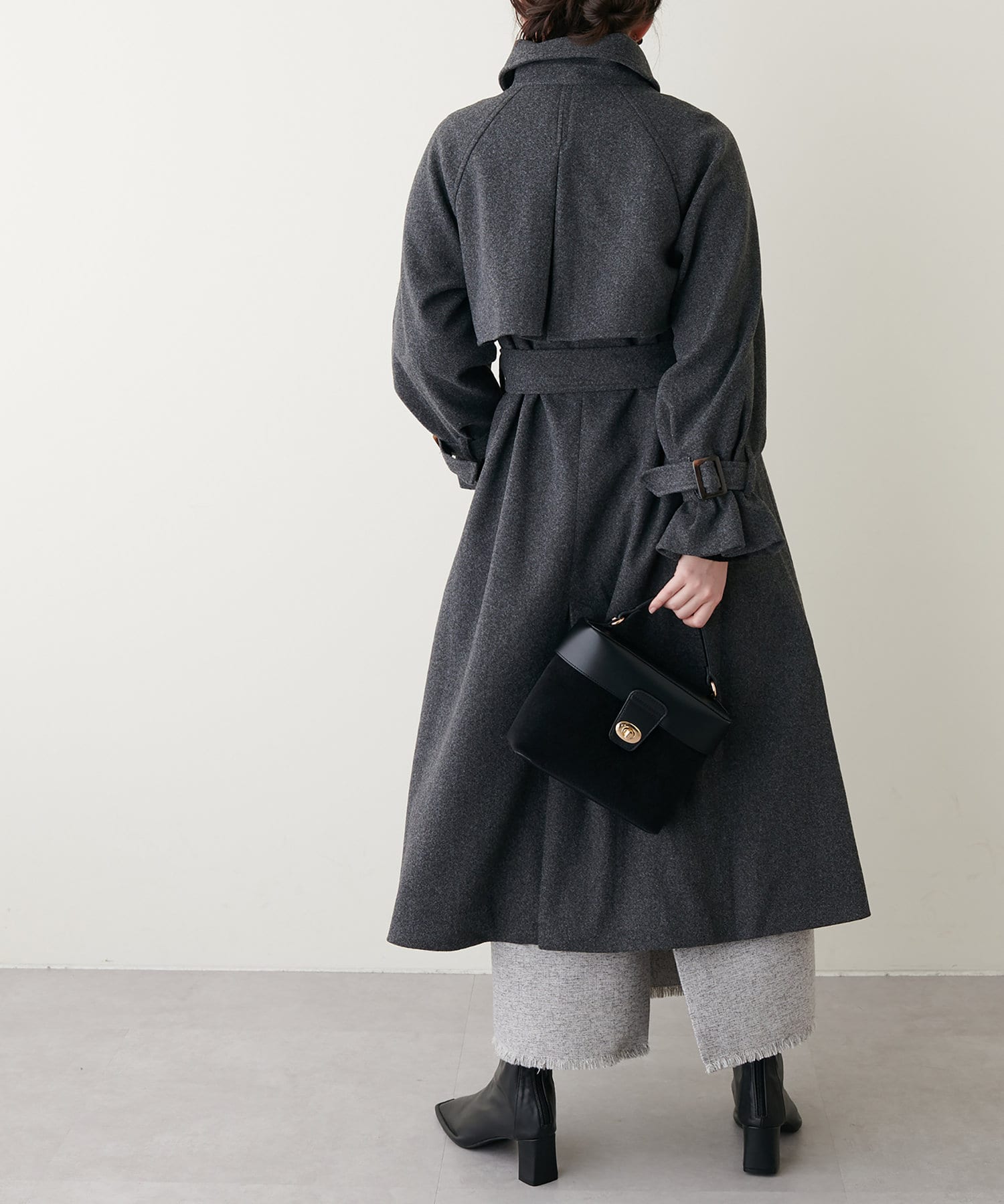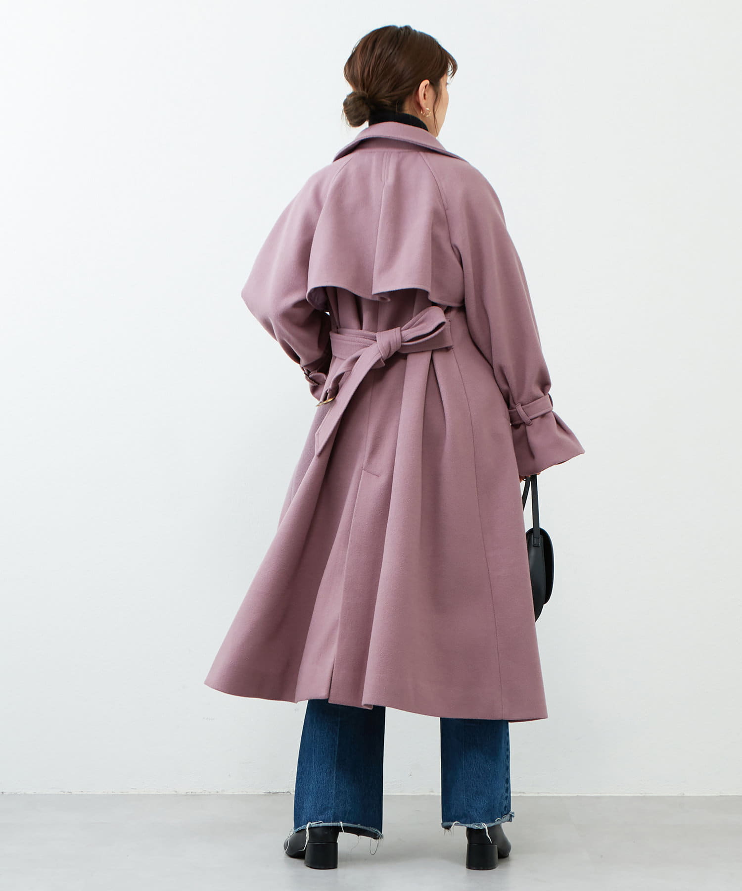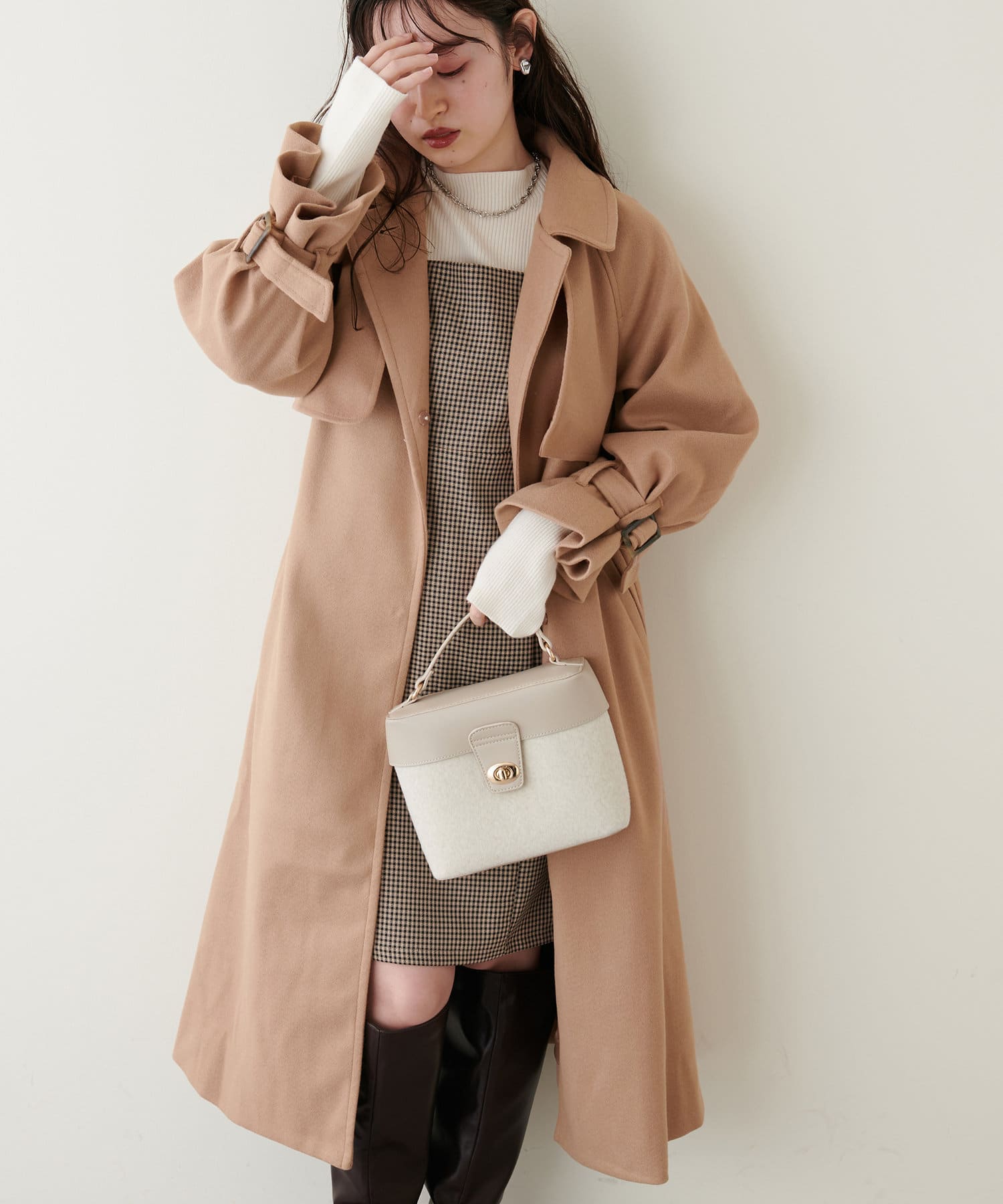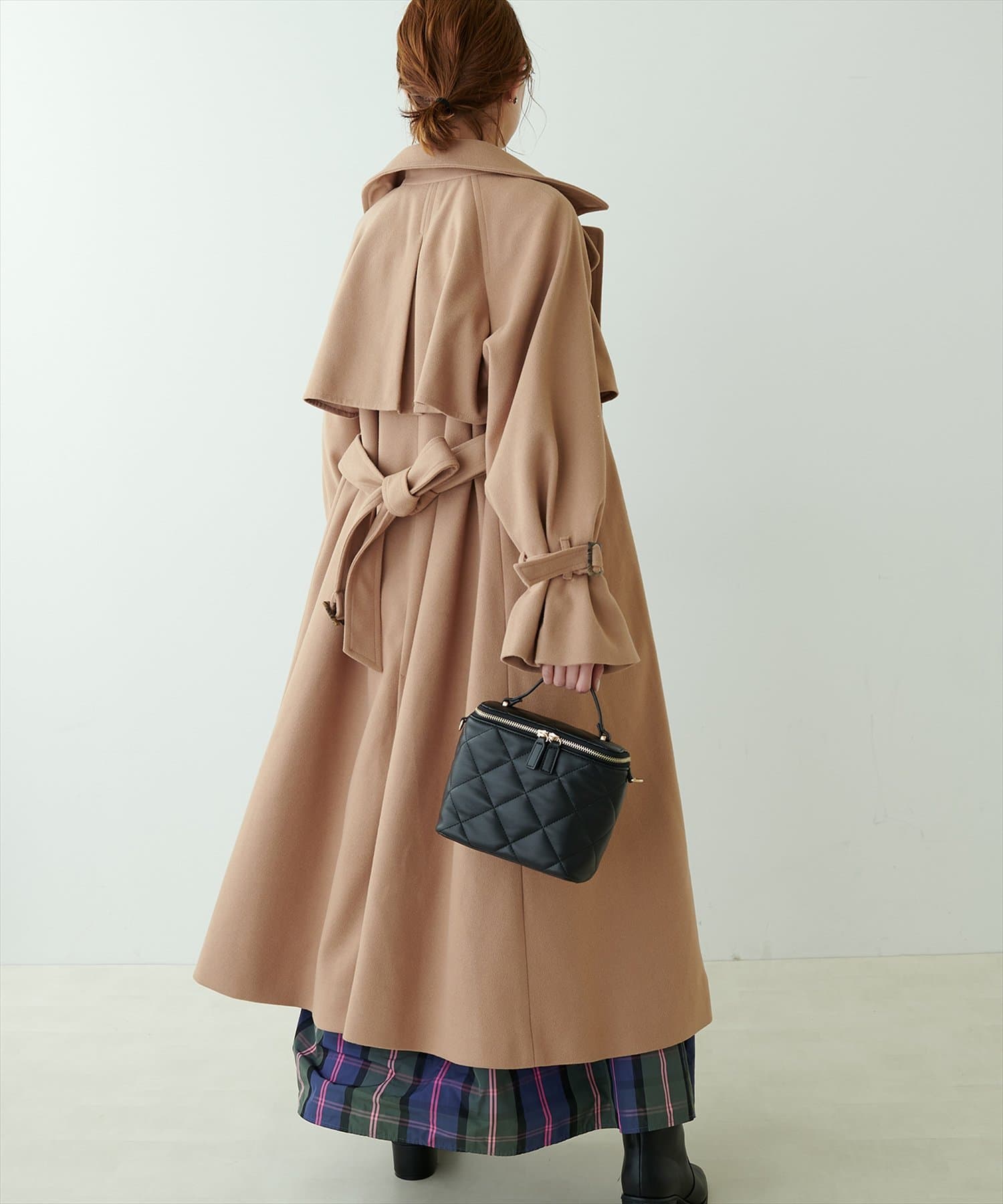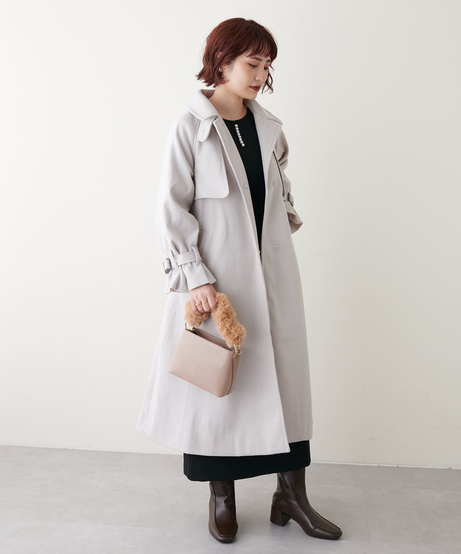 トレンド感のあるスタンドカラーがポイントのロングコートの登場。